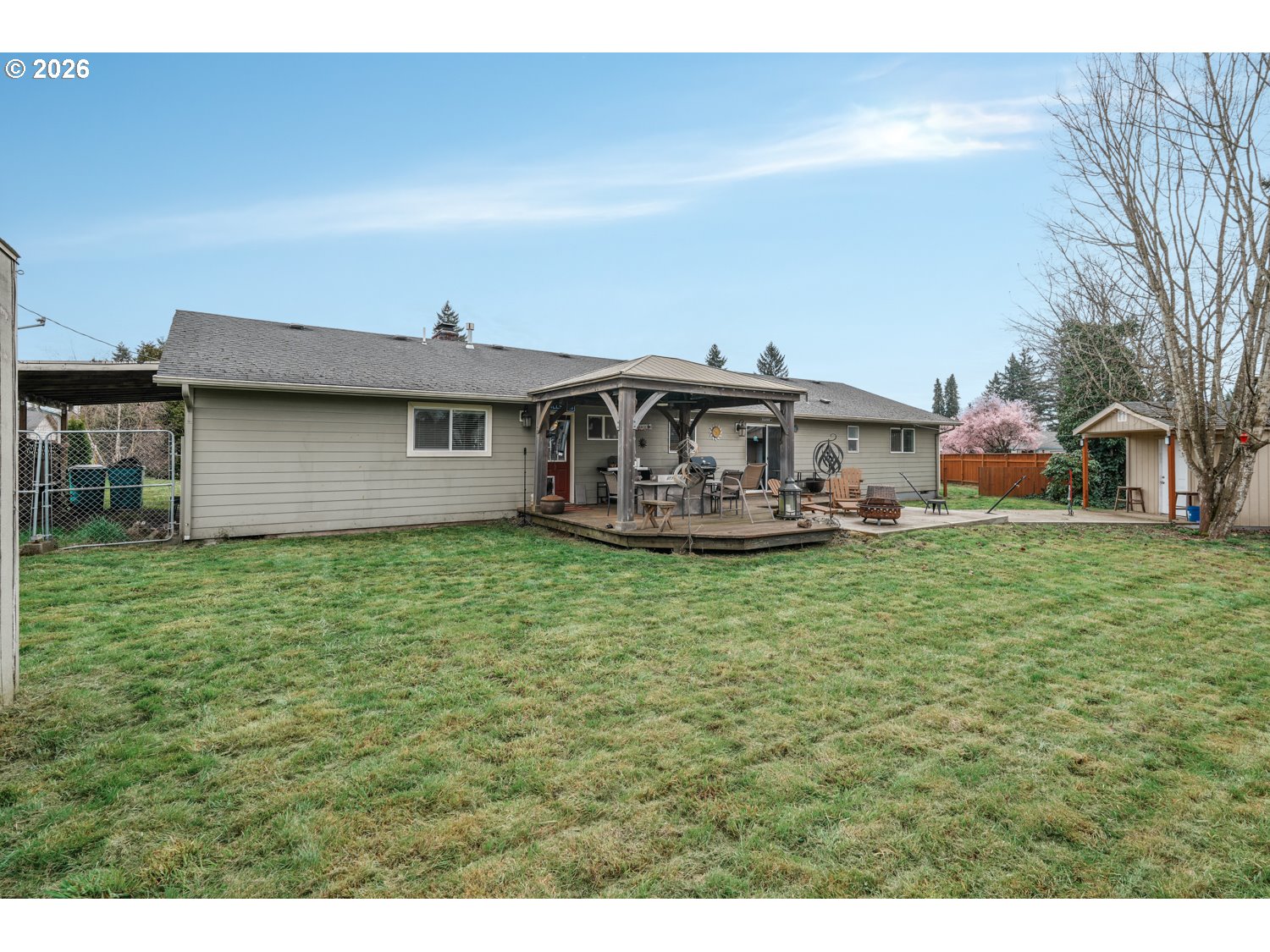 Beautifully maintained and move-in ready ranch-style home situated on a spacious .38-acre corner lot in a quiet cul-de-sac with a large front yard. This 4-bedroom, 2-bath home offers easy single-level living with thoughtful updates and inviting spaces throughout. Enjoy relaxing on the 20x7 covered front porch or gather in the bright, sun-filled living room featuring a cozy fireplace. The dining area includes sliding doors that open to the back patio, creating seamless indoor-outdoor living, perfect for entertaining. The kitchen is well-equipped with stainless steel appliances and lots of counter space and cabinetry for easy meal prep. The primary suite features double closets and private deck access, while two additional bedrooms provide flexibility for guests or hobbies.A versatile 4th bedroom is perfect for a home office, guest space, or creative studio. The laundry room includes a full bath and exterior access to a covered deck, functioning perfectly as a mudroom after time spent in the yard. Step outside to a fantastic fenced backyard with plenty of room for gardening, play, or entertaining. Additional features include a carport for extra parking. Conveniently located just minutes from shopping, dining, schools, neighborhood parks, and a golf course, this home offers comfort, space, and an unbeatable location.