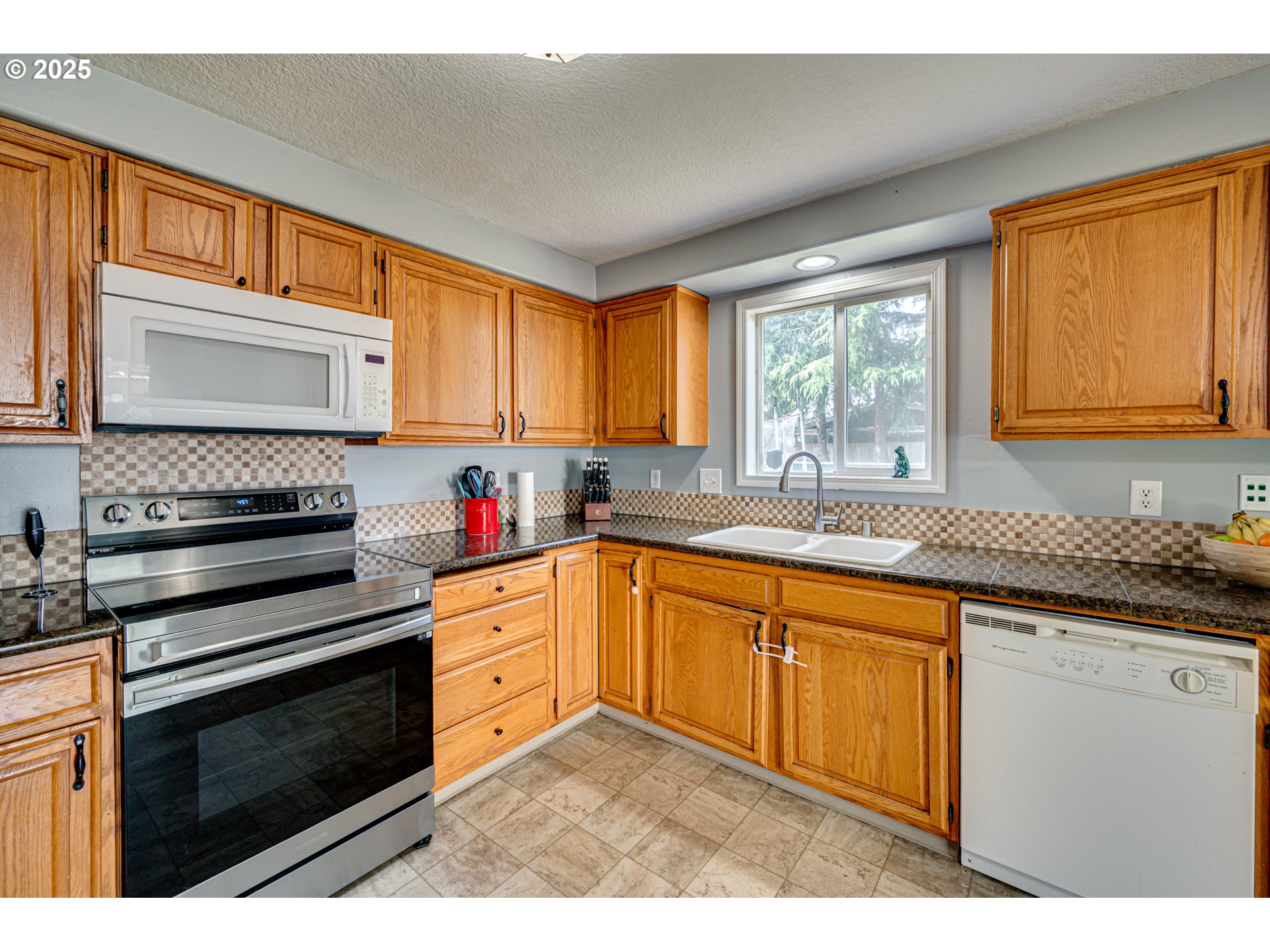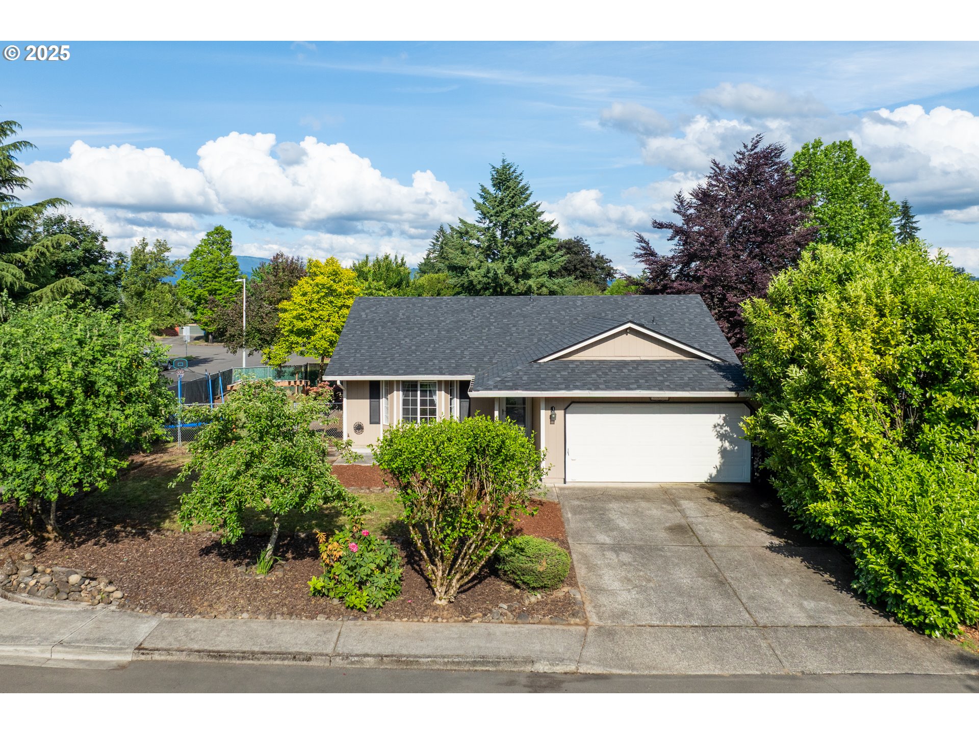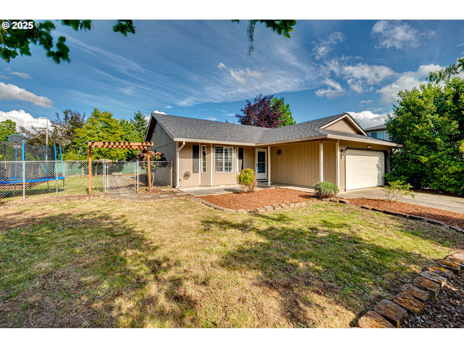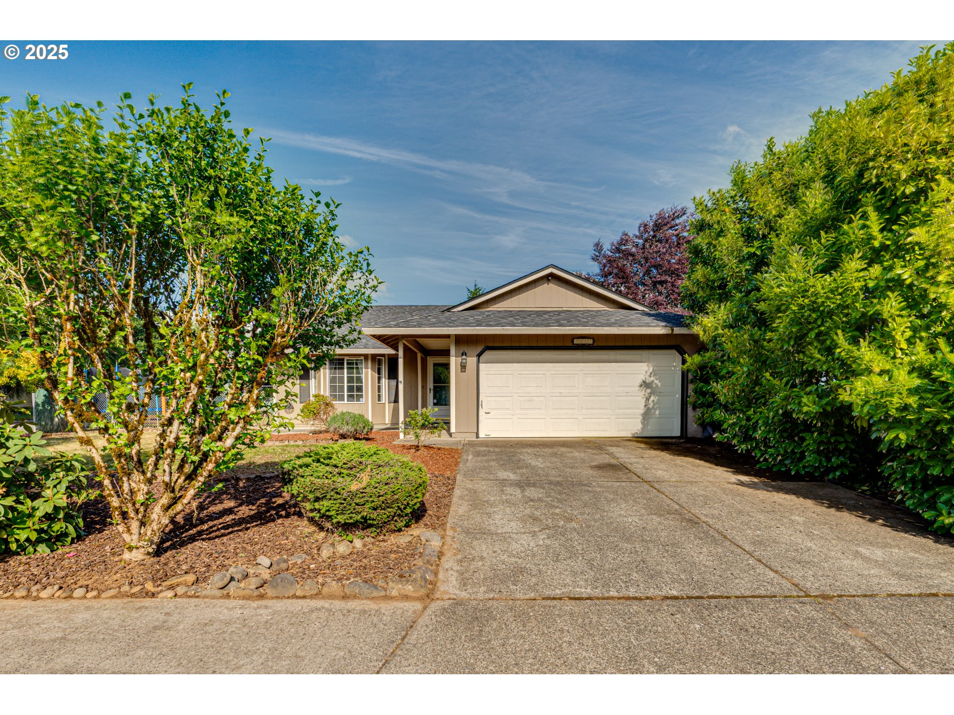 Located on a corner lot in the Mountain View Meadows neighborhood, this well-maintained single-level home offers privacy and a spacious, fully fenced yard featuring raised garden beds, flowering bushes, and a large covered patio—perfect for gardening and outdoor living. Inside, the ranch style home features three bedrooms and two full bathrooms. The primary suite includes vaulted ceilings, tile floors and counters in the bathroom, and a generous layout. The living room also boasts vaulted ceilings and a bayed window, creating an airy and inviting atmosphere. The open-concept kitchen is designed for both functionality and style, with granite counters, a tile backsplash, modern appliances, and plenty of counter and cabinet space. Additional highlights include tile plank flooring in the great room, a tiled entryway and hallway, a double garage finished with an opener, and energy-efficient vinyl windows throughout. OPEN HOUSES- SATURDAY 5/31 11:00AM - 1:00PM and SUNDAY 6/1 1:00-3:00PM Come see why 7517 NE 154th Ave is the perfect place to call home!