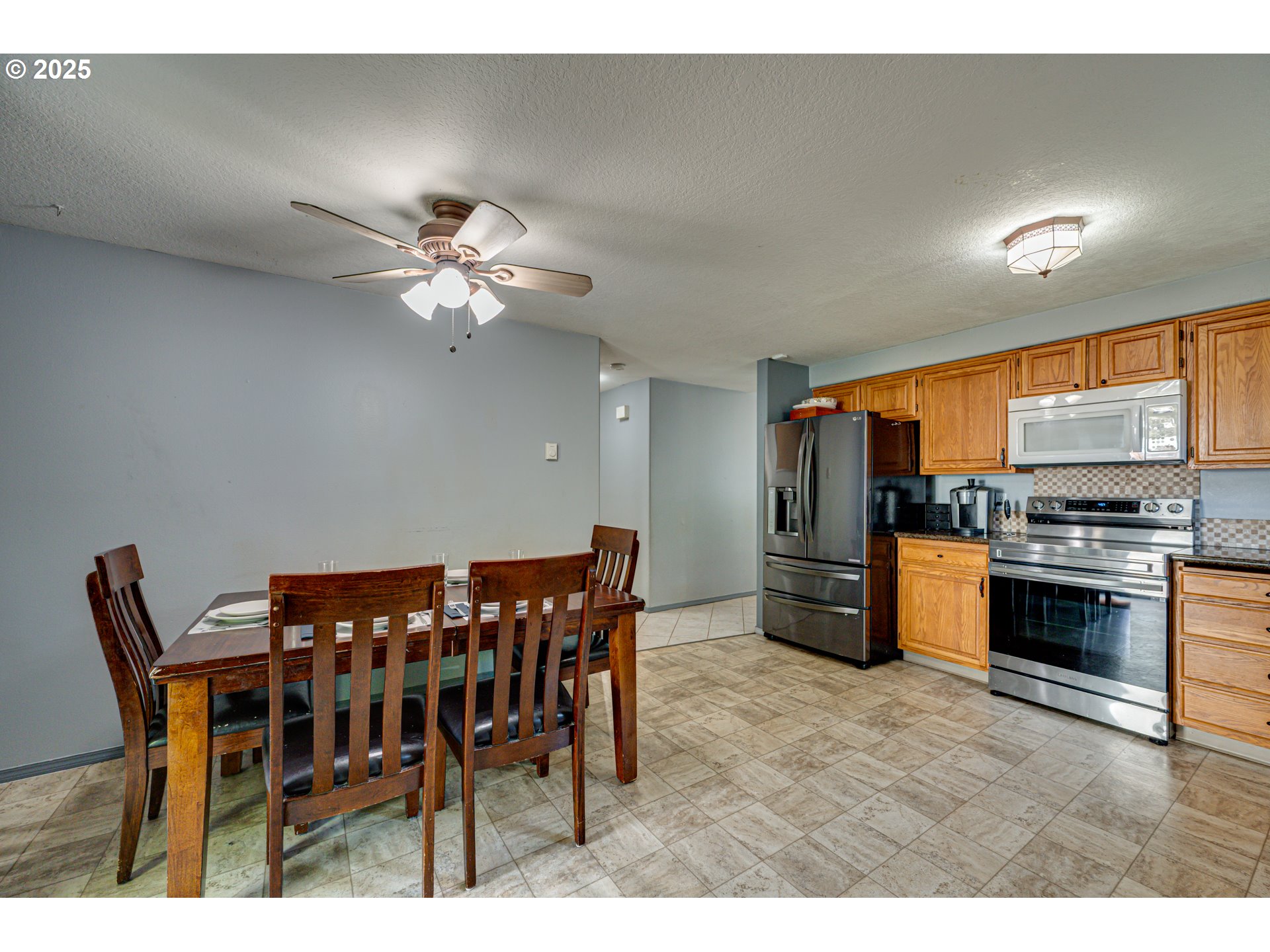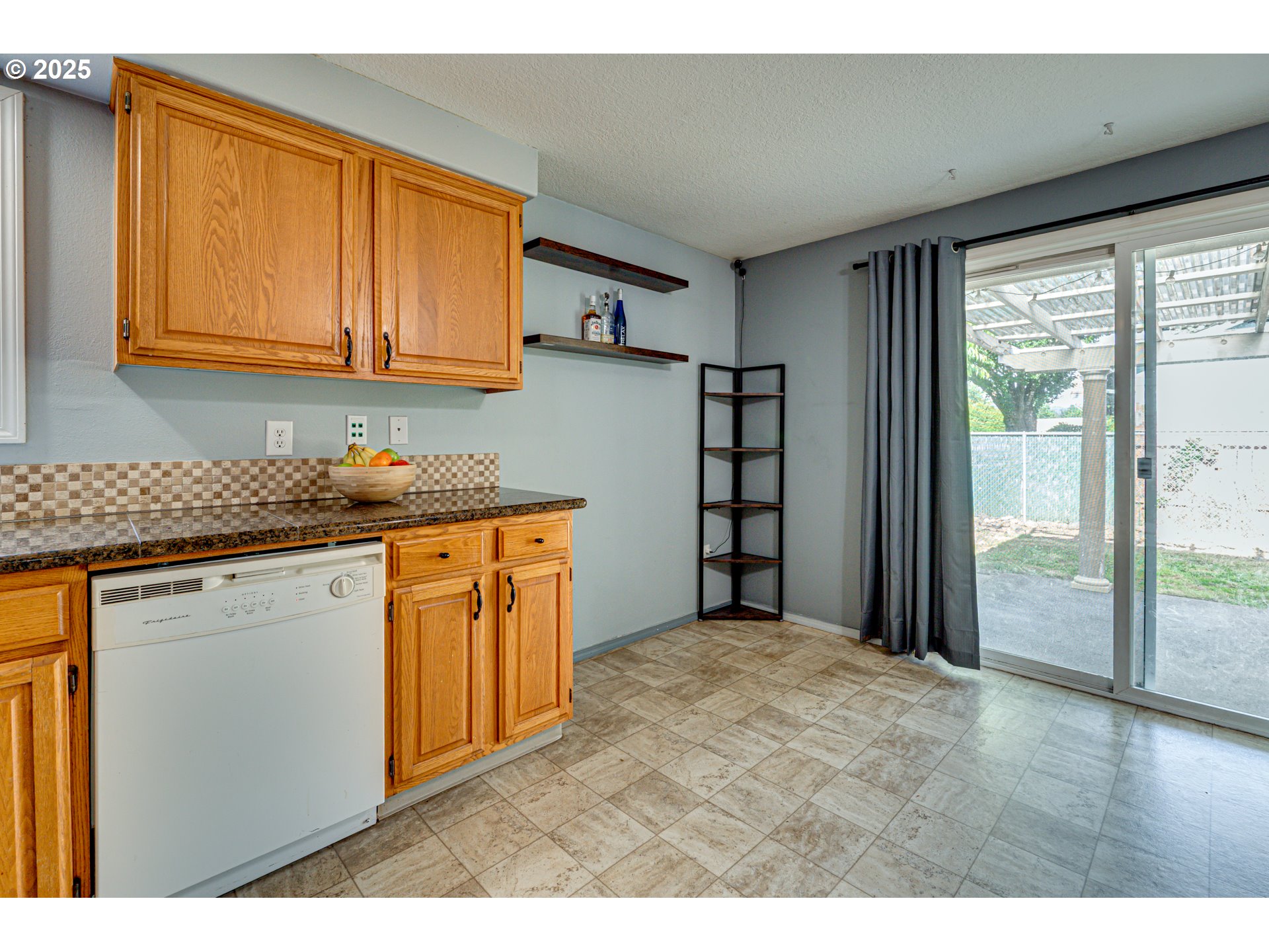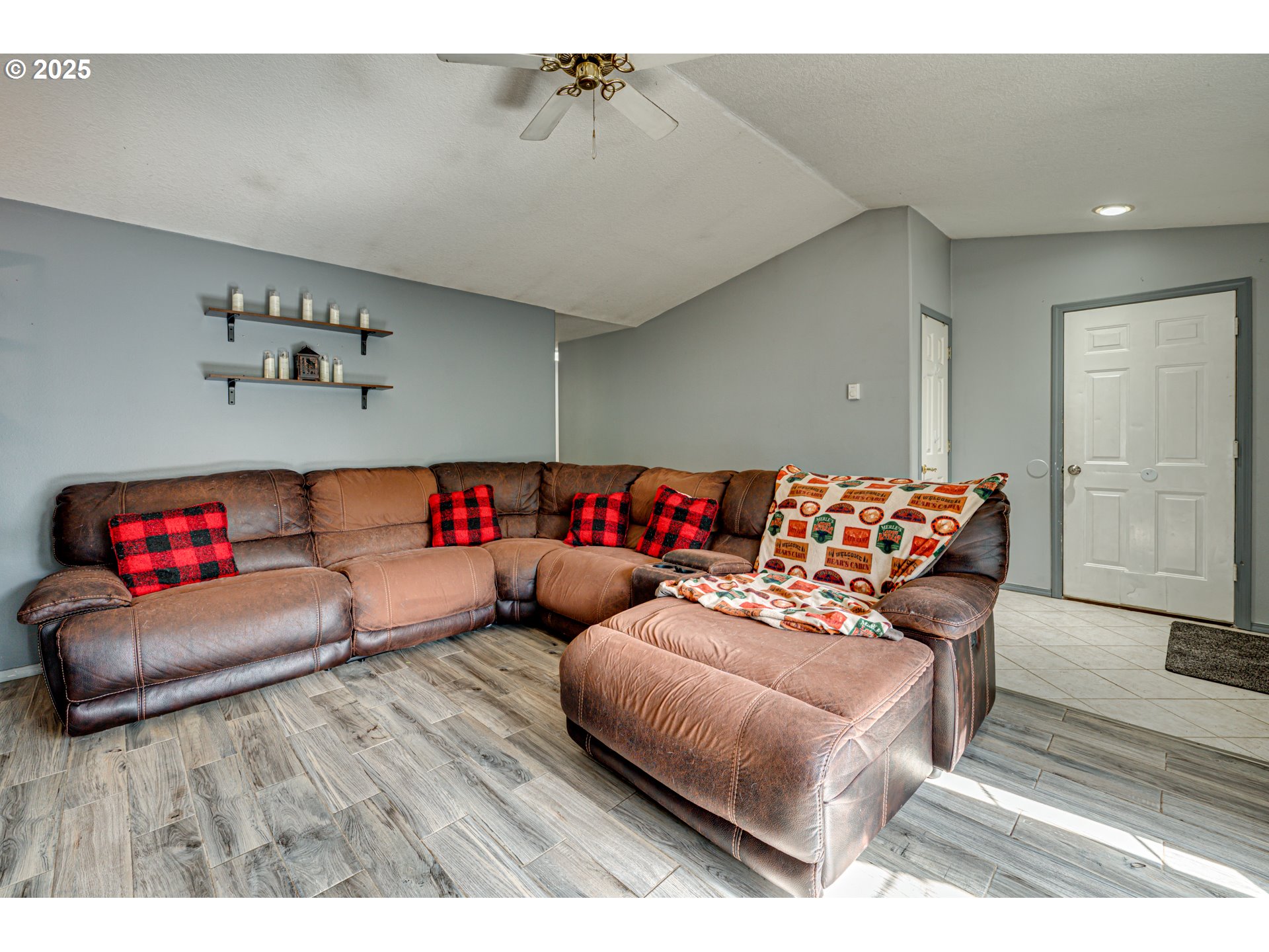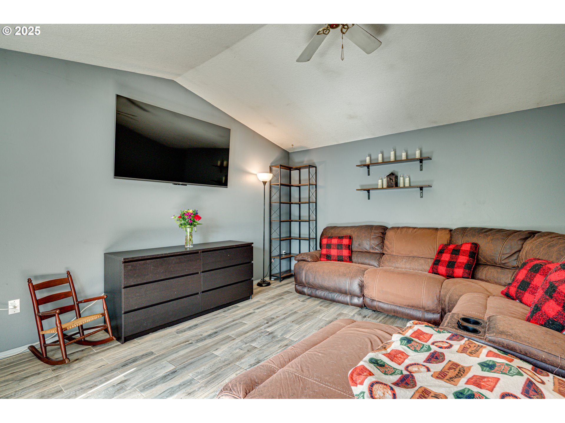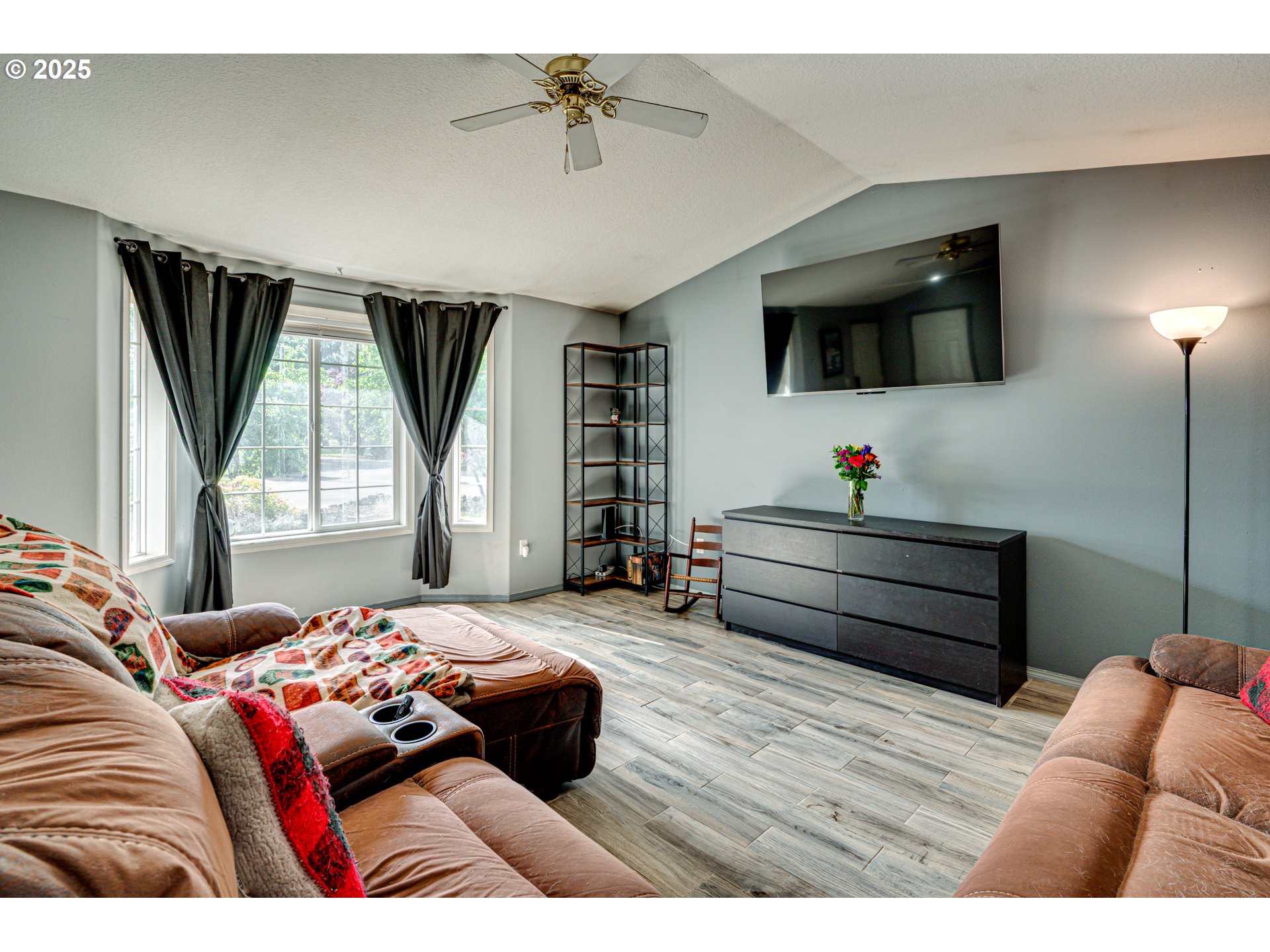 Located on a corner lot in the Mountain View Meadows neighborhood, this well-maintained single-level home offers privacy and a spacious, fully fenced yard featuring raised garden beds, flowering bushes, and a large covered patio—perfect for gardening and outdoor living. Inside, the ranch style home features three bedrooms and two full bathrooms. The primary suite includes vaulted ceilings, tile floors and counters in the bathroom, and a generous layout. The living room also boasts vaulted ceilings and a bayed window, creating an airy and inviting atmosphere. The open-concept kitchen is designed for both functionality and style, with granite counters, a tile backsplash, modern appliances, and plenty of counter and cabinet space. Additional highlights include tile plank flooring in the great room, a tiled entryway and hallway, a double garage finished with an opener, and energy-efficient vinyl windows throughout. OPEN HOUSES- SATURDAY 5/31 11:00AM - 1:00PM and SUNDAY 6/1 1:00-3:00PM Come see why 7517 NE 154th Ave is the perfect place to call home!