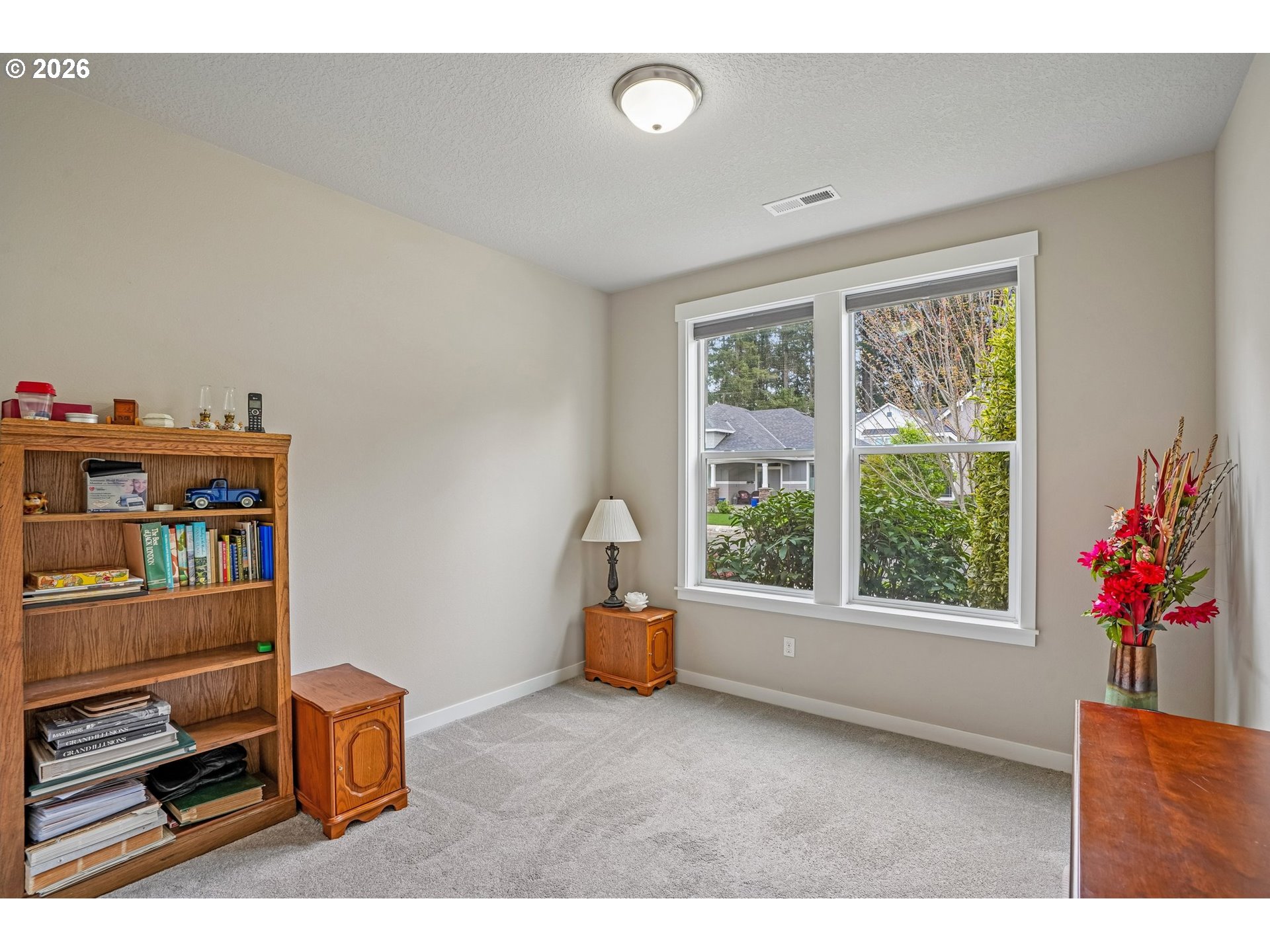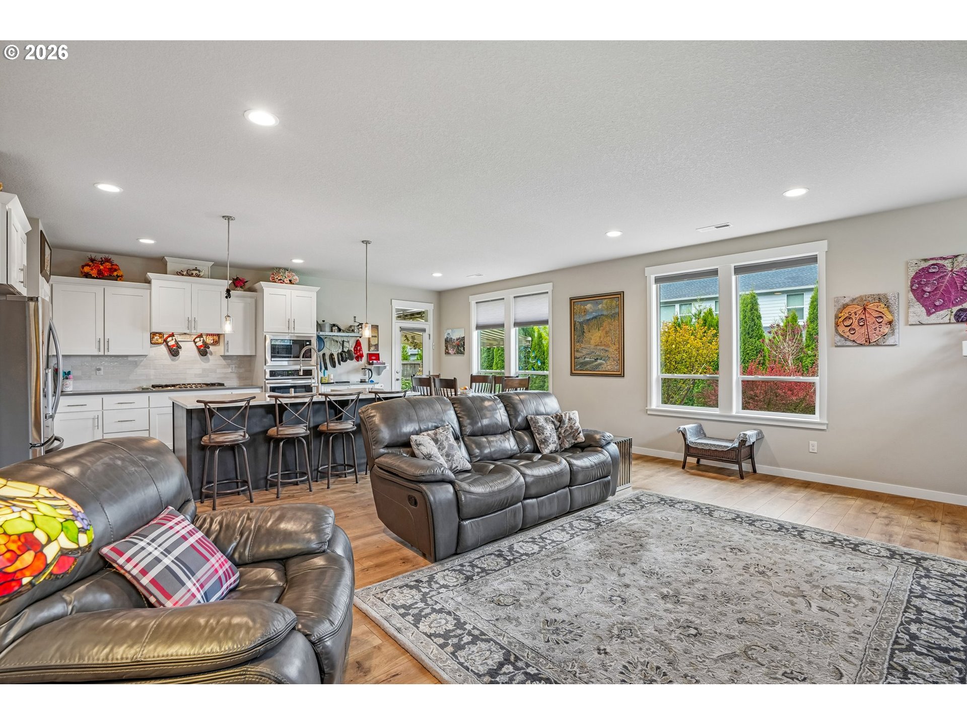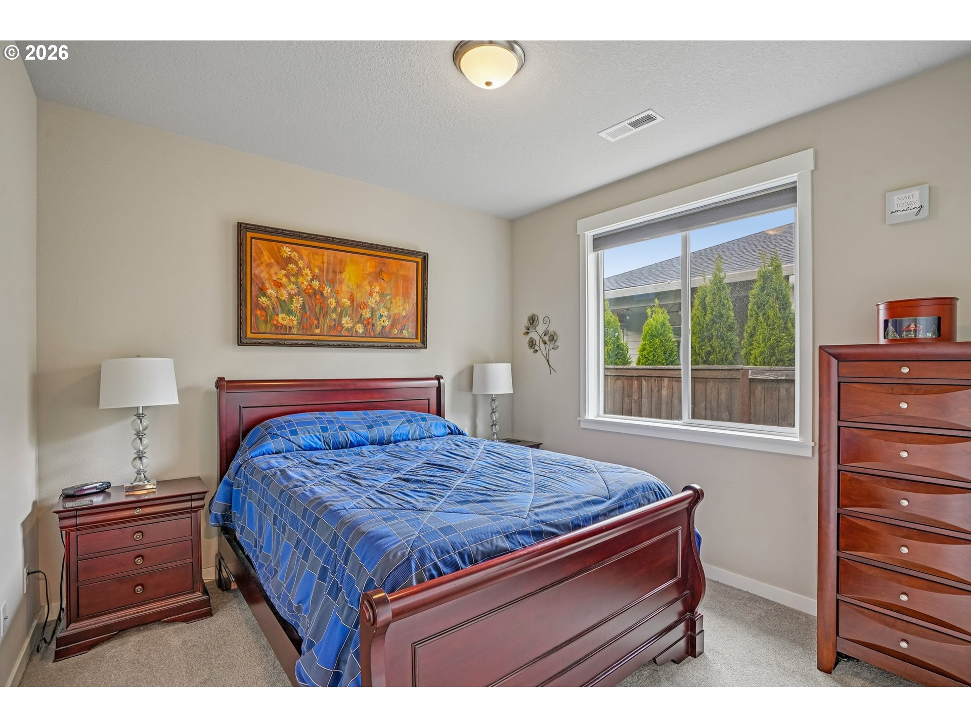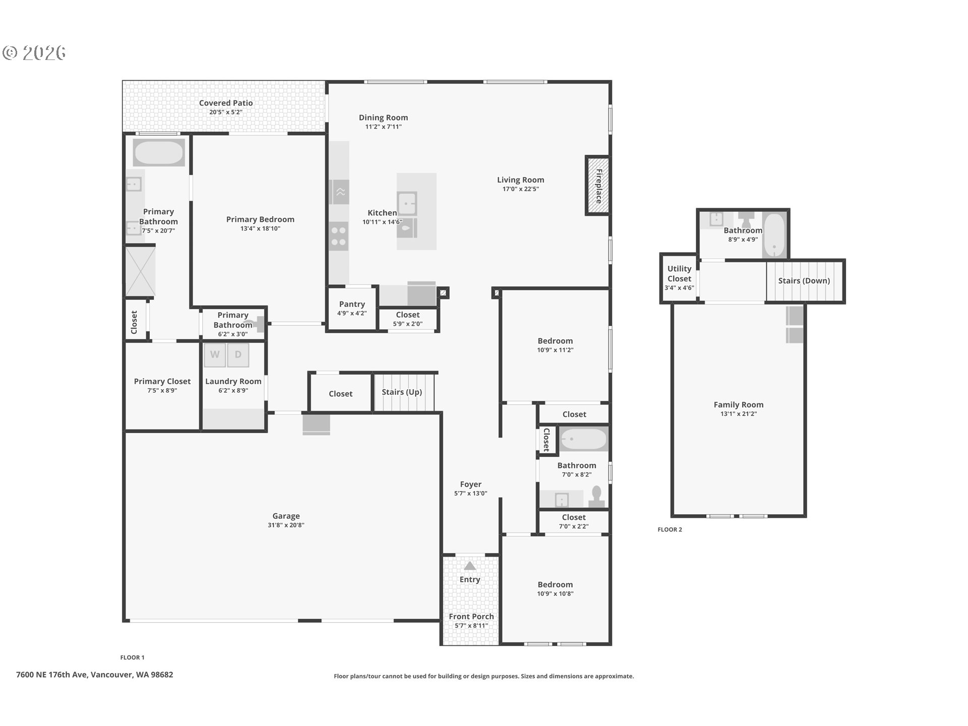 Well-maintained 2-story home in a quiet, dead-end street setting with sidewalks and nearby trails. This versatile floor plan features a primary suite on the main level with a walk-in closet, tiled walk-in shower, and soaking tub. A spacious bonus room with full bath upstairs — ideal for guests, multi-gen living, or working from home. The kitchen offers a walk-in pantry, quartz countertops with tiled backsplash, soft-close cabinetry, and large center island. This opens to comfortable living spaces with good natural lighting and a gas fireplace in the great room. Enjoy year-round comfort with high-efficiency gas heating and central A/C. Step outside to a fully fenced backyard with mature landscaping, raised garden beds, a shed, and a covered patio with automatic retractable awning. Additional upgrades include LeafFilter gutter guards and durable garage door springs. Garage doors have an added bonus of being 8 feet tall. Located in the Union High School district with neighborhood paths and a pedestrian bridge over Fifth Plain Creek nearby. Mortgage savings may be available for buyers of this listing.