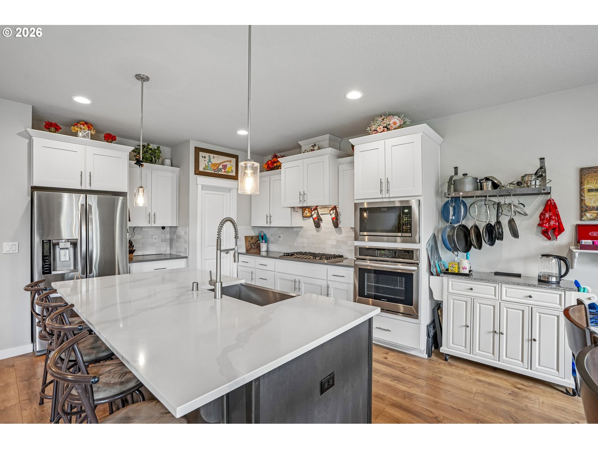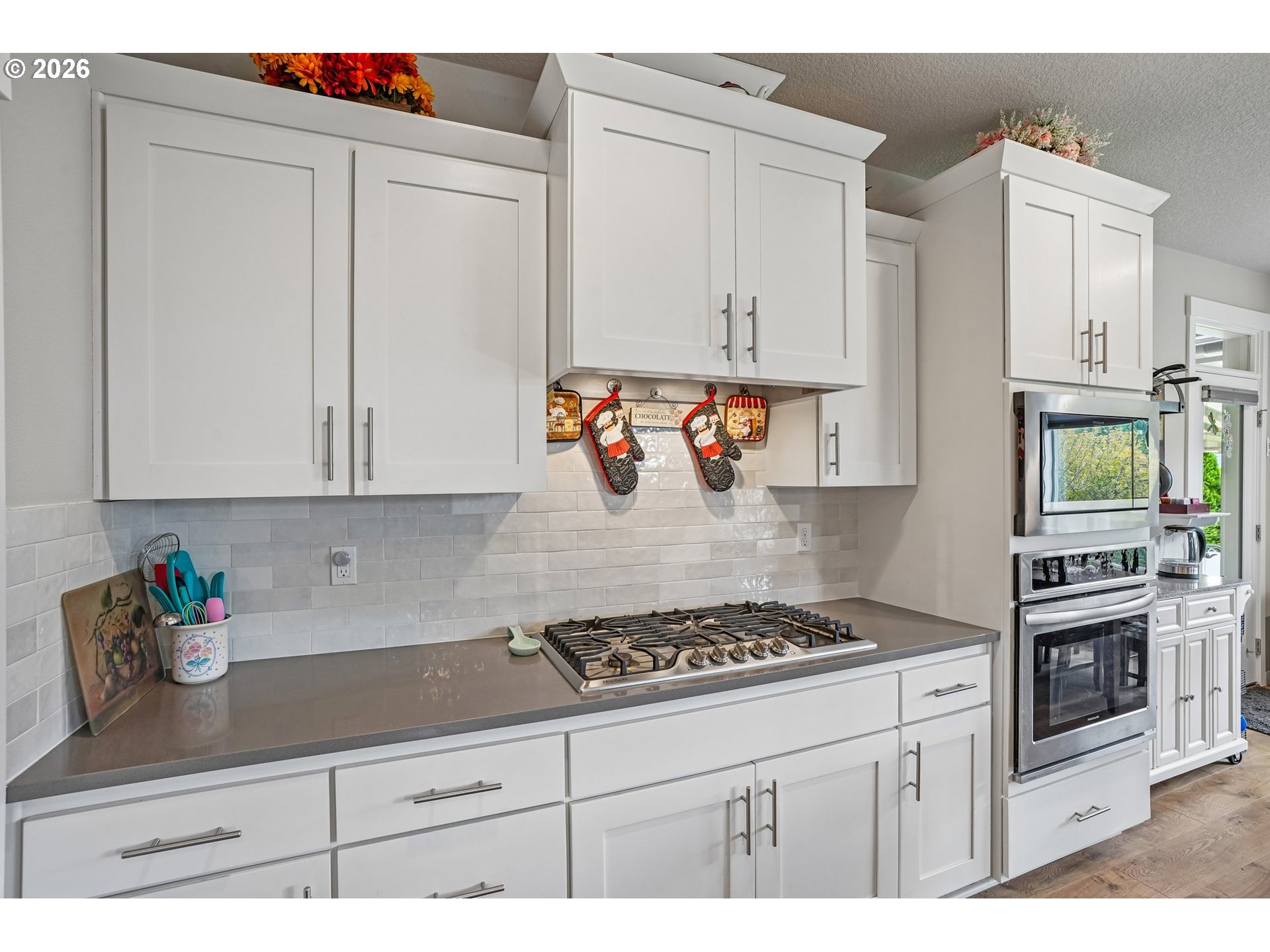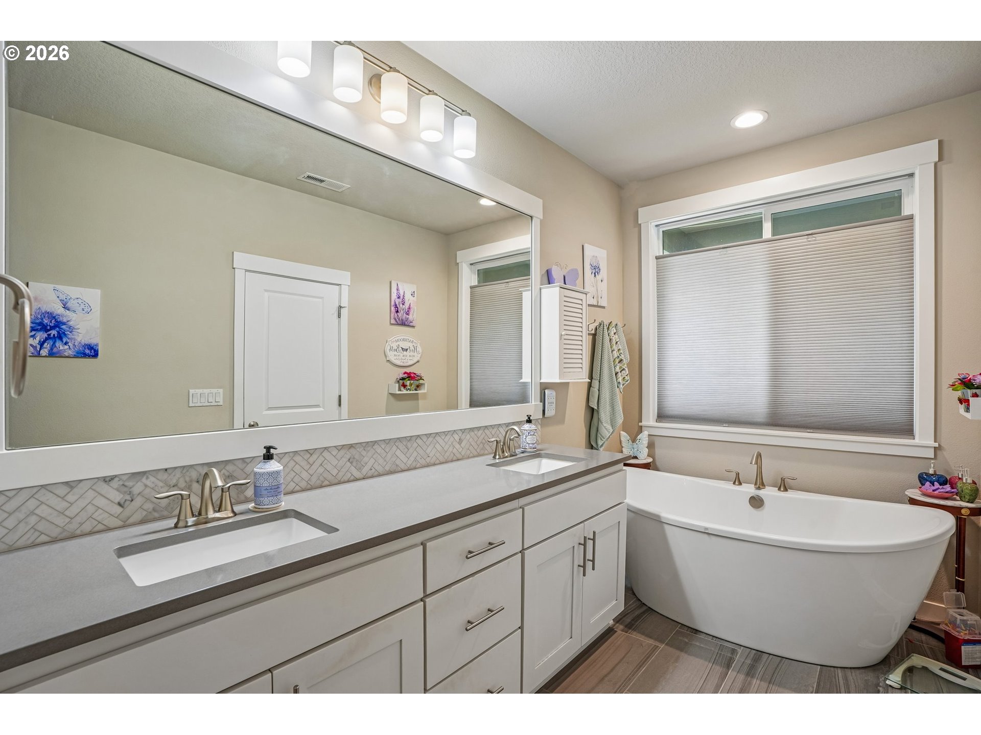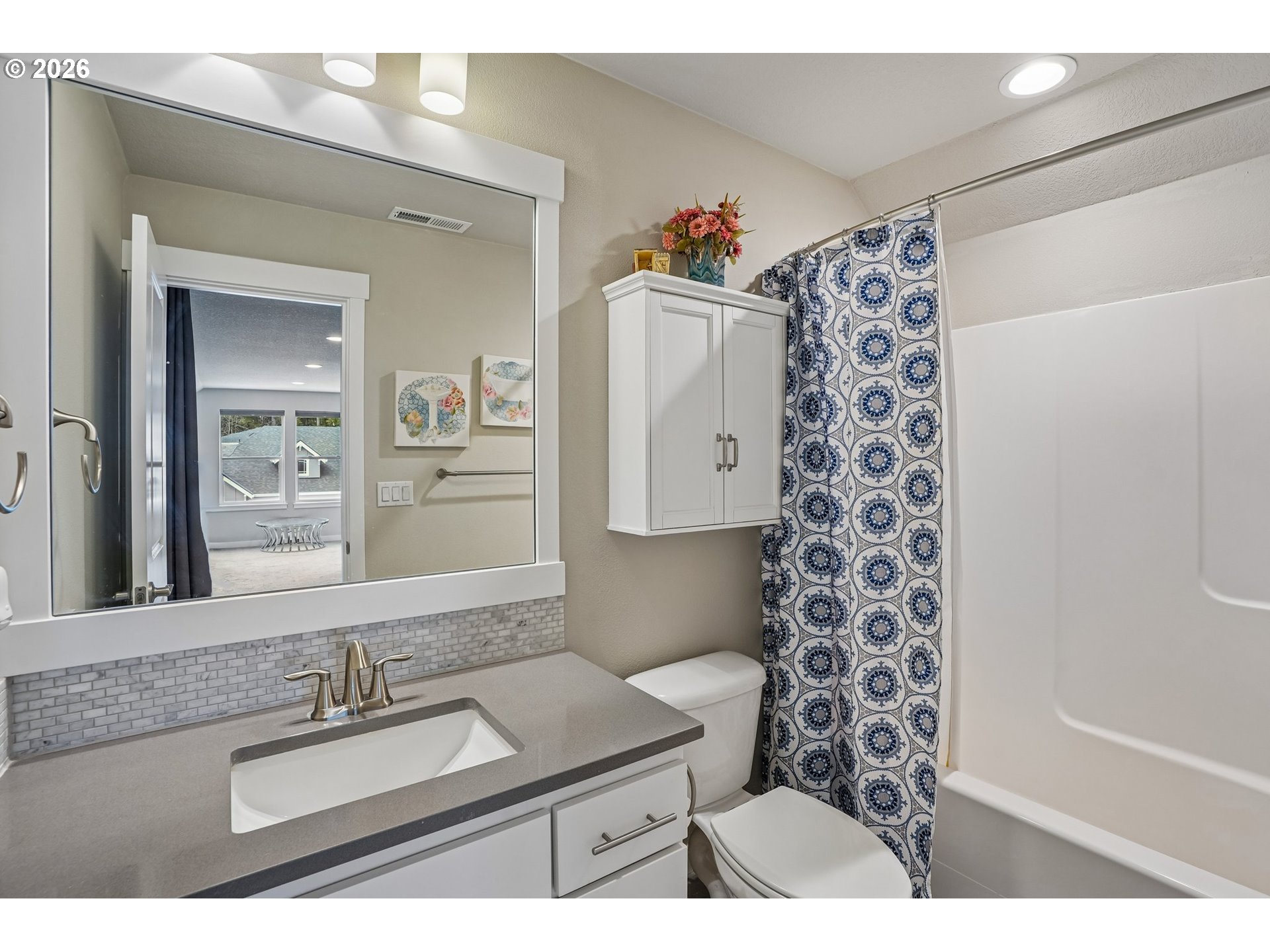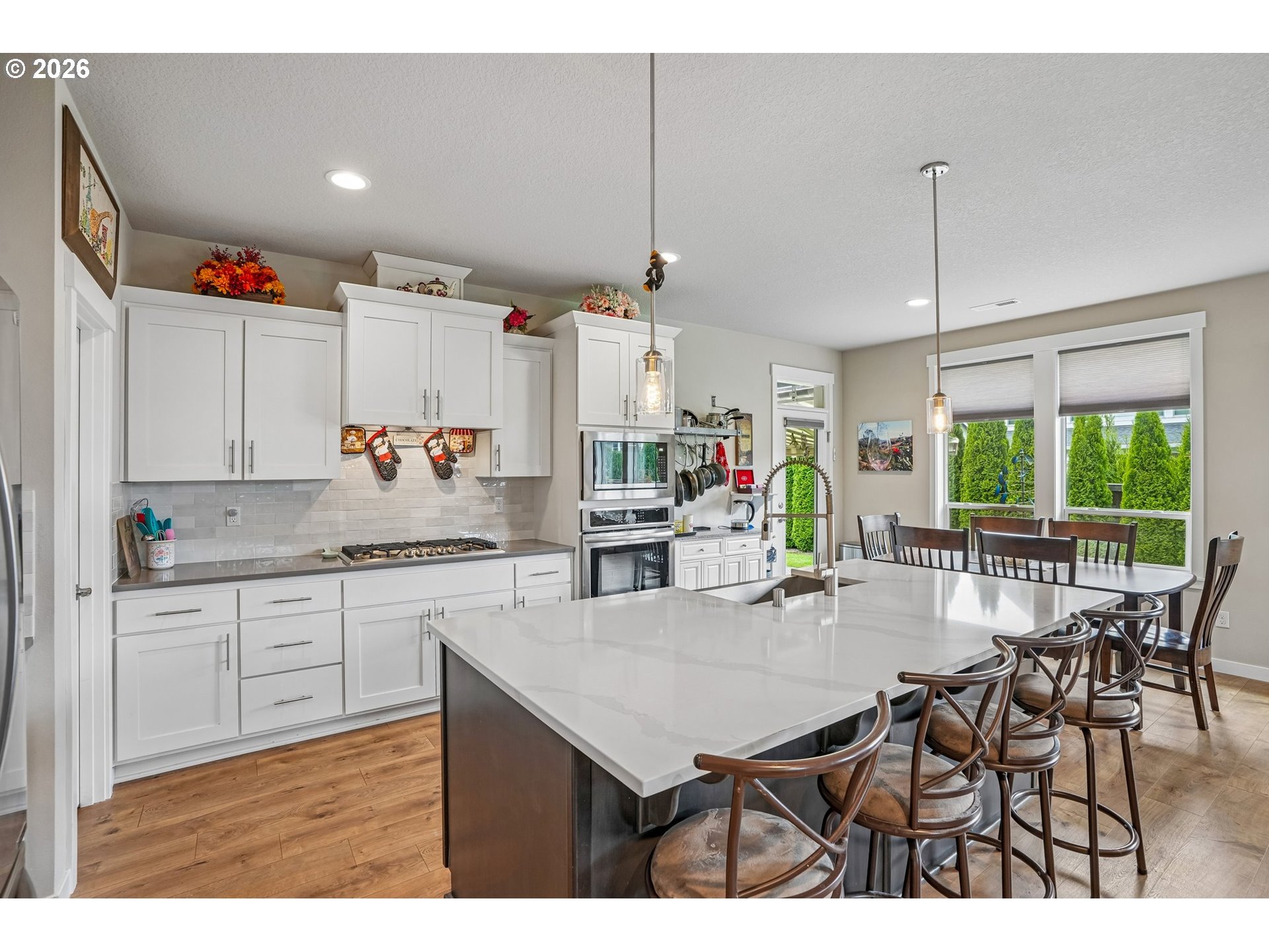 Well-maintained 2-story home in a quiet, dead-end street setting with sidewalks and nearby trails. This versatile floor plan features a primary suite on the main level with a walk-in closet, tiled walk-in shower, and soaking tub. A spacious bonus room with full bath upstairs — ideal for guests, multi-gen living, or working from home. The kitchen offers a walk-in pantry, quartz countertops with tiled backsplash, soft-close cabinetry, and large center island. This opens to comfortable living spaces with good natural lighting and a gas fireplace in the great room. Enjoy year-round comfort with high-efficiency gas heating and central A/C. Step outside to a fully fenced backyard with mature landscaping, raised garden beds, a shed, and a covered patio with automatic retractable awning. Additional upgrades include LeafFilter gutter guards and durable garage door springs. Garage doors have an added bonus of being 8 feet tall. Located in the Union High School district with neighborhood paths and a pedestrian bridge over Fifth Plain Creek nearby. Mortgage savings may be available for buyers of this listing.