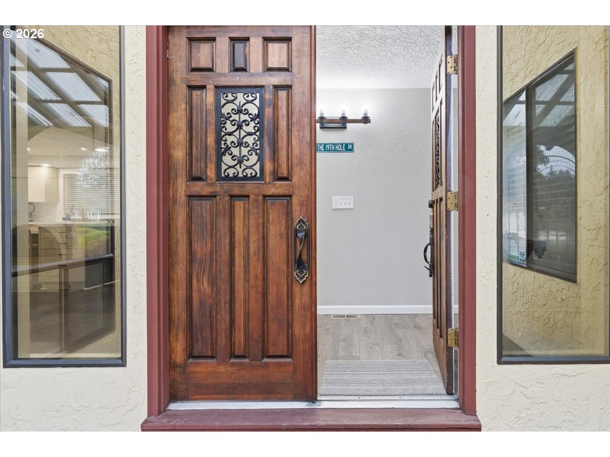 (503) 893-8874A beautifully remodeled, Mediterranean-inspired custom home offering true move-in readiness. Perfectly positioned along the 5th fairway of Club Green Meadows Golf Course, this one-level estate is a dream for golf and tennis lovers. Thoughtful updates throughout blend seamlessly with the home’s original character, creating bright, inviting spaces filled with natural light. The expansive kitchen—with its generous eating bar—opens to an impressive great room featuring vaulted ceilings, a cozy fireplace insert, and panoramic views of the course. The primary suite includes a fully updated spa-style bath with a soaking tub, a ceiling fan, and private access to the large wood deck. A formal living room with another fireplace insert and a serene atrium complete the warm, welcoming layout.