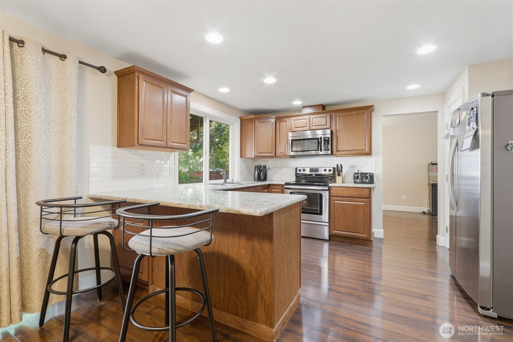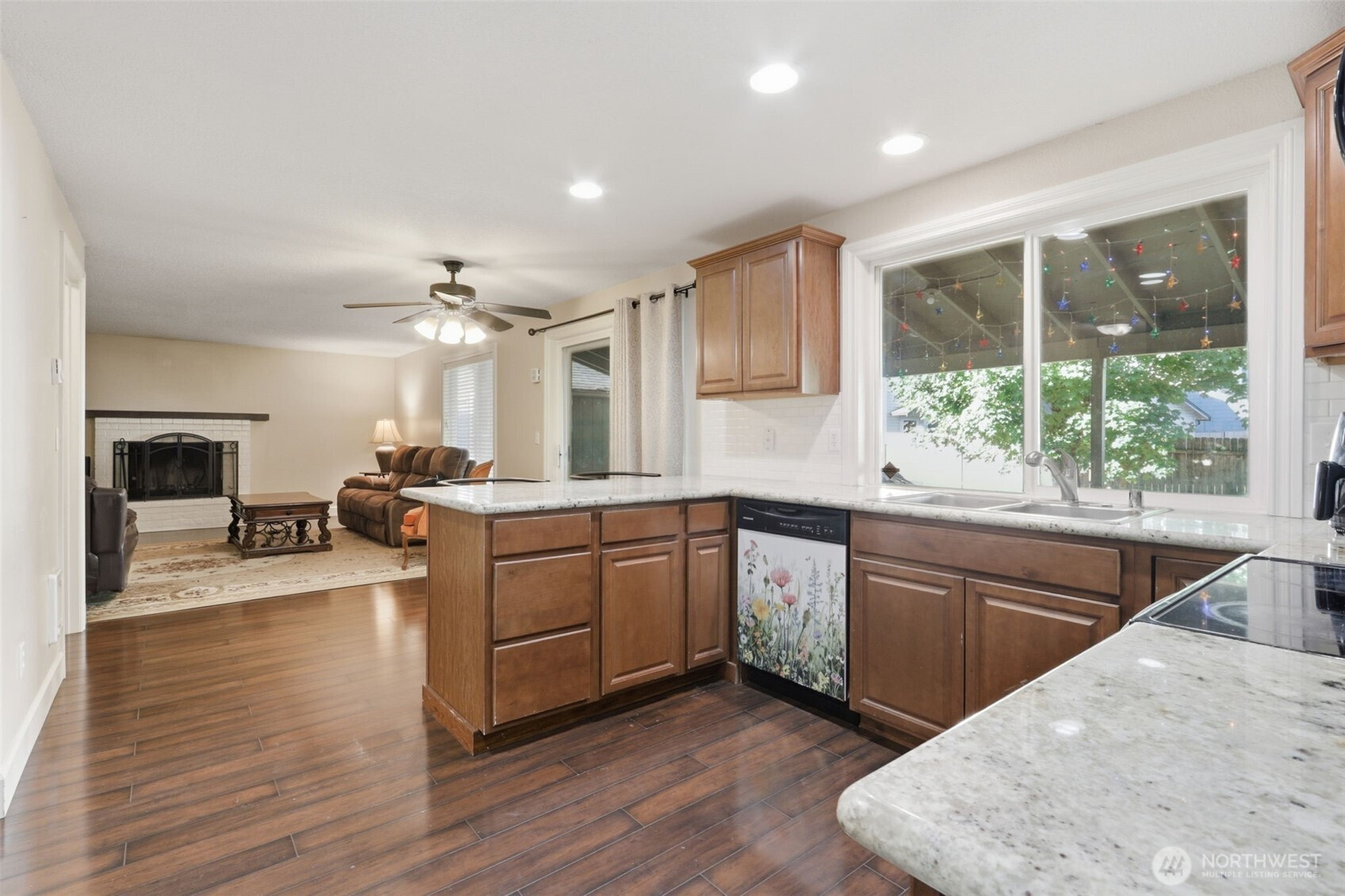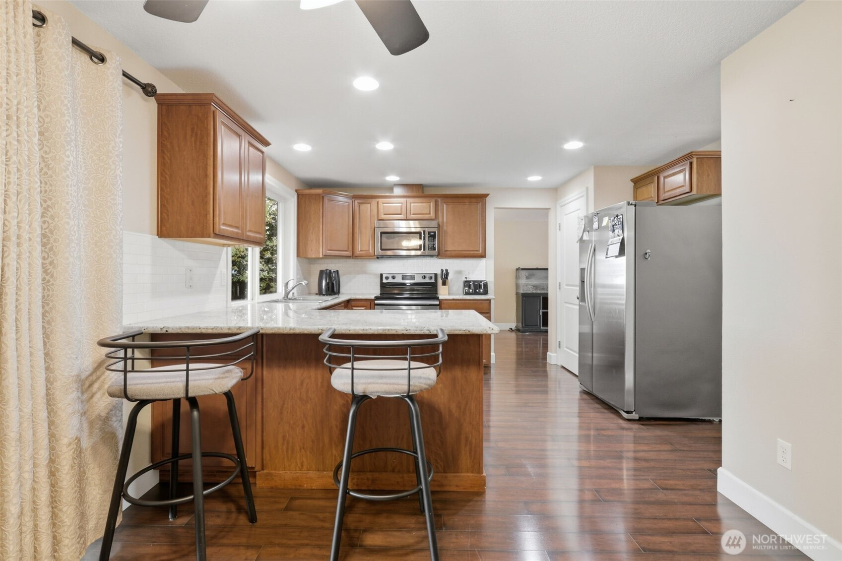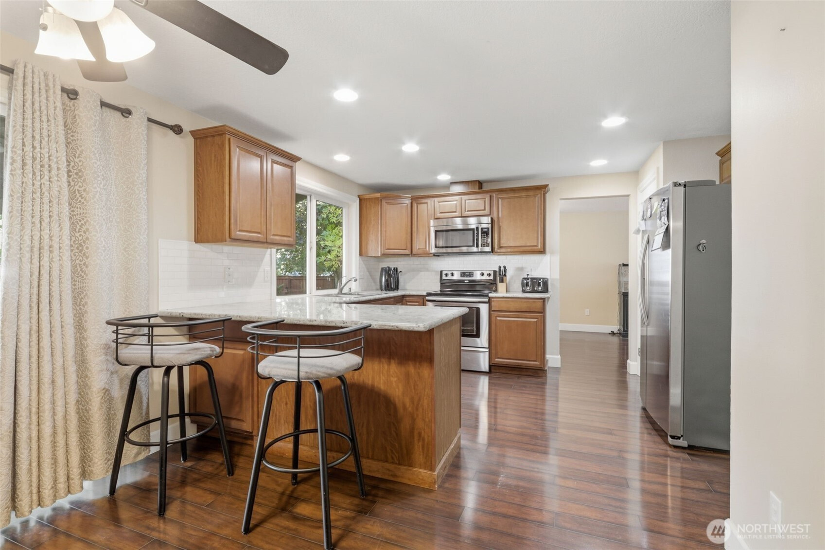 Wow, what a great deal! This spacious 5-bedroom home sits on a large corner lot, offering plenty of room for everyone. The main floor features laminate flooring throughout, both formal and casual living areas, a cozy wood-burning fireplace, and a bright kitchen with granite countertops and stainless steel appliances. Upstairs, the primary suite boasts a bay window and walk-in closet, while the fifth bedroom is large enough to serve as a bonus room, office, or play area. Step outside to a big covered patio and a private backyard with mature trees and a tool shed—perfect for gardening, BBQs, or relaxing outdoors. With so much space and a great location near parks, schools, and shopping, this home truly has it all!