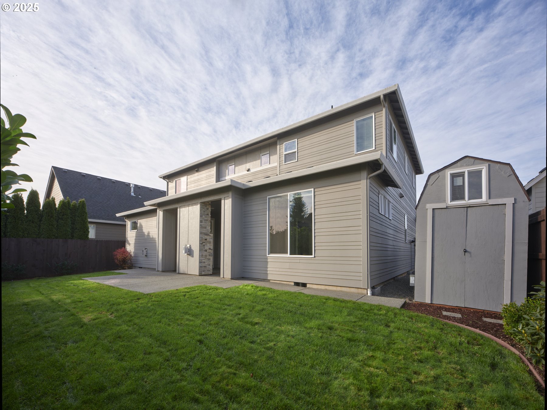 **Open House Saturday 12/6 from Noon-2pm** Welcome to this 2018 two-story home located in the highly rated Hockinson School District. With 5 bedrooms and 3.5 bathrooms across 3,438 sq ft, the home offers an efficiently designed floor plan providing flexible and livable spaces. The kitchen includes a large island, double wall ovens, gas cooktop, walk-in pantry, and quality finishes. The adjacent great room features a gas fireplace and built-ins, opening to the dining area for easy flow. The main level includes a dedicated office, plus a guest bedroom with a full en suite bathroom. Upstairs, the fifth bedroom can serve as a bonus room to offer versatility. The primary suite includes a tiled shower, soaking tub, double sinks and a walk-in closet. Outside, the private, landscaped yard with covered patio and outdoor fireplace provides space for relaxation or gatherings. Additional features include a detached storage shed, an extended driveway suitable for RV or boat parking, and an oversized 3-car garage with built-in cabinetry and space for your projects or hobbies. Situated in a quiet, well-maintained neighborhood, you don't want to miss this one.