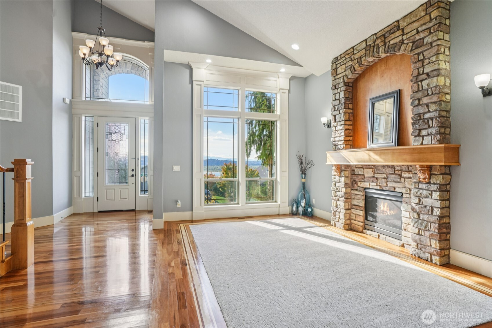 Elegant custom home! Formal living rm, gas FP w/stone surround, window wall view of Columbia River. Formal dining rm, chair rail, crown molding, access to kitchen. GR FR, gas FP, built-ins. Gourmet island/eat bar kitchen, granite, lots of cabinetry, pantry. Primary en-suite w/balcony, Columbia River views, WI closet, dual-sink granite vanity, jet tub, shower, heated travertine floors. Main-level bdrm/ofc w/built-ins, 3 addtl upper-level bdrms, 1 possible bonus/media rm. Baths designed w/pedestal sink, dual vanities, 1 w/heated tile floor. Laundry&mud rms w/built-ins. Brazilian hardwood, heated travertine, carpet. Porch, patio, gas hookups, landscaped, sprinklers. 3-car garage. Mortgage savings may be available for buyers of this listing.