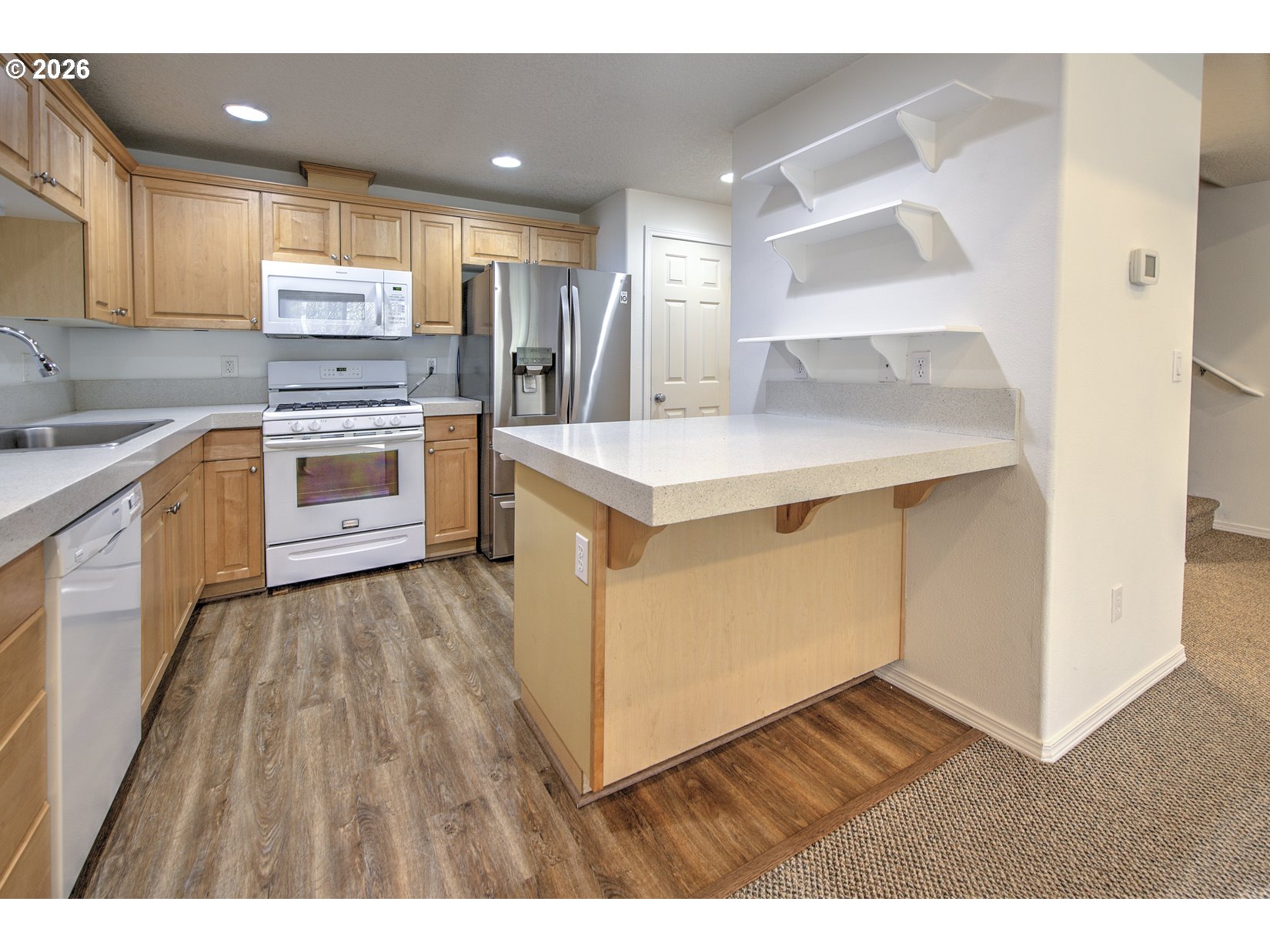 (503) 893-8874Spacious and well designed 3 bedroom, 2.1 bath Townhouse offering comfort and privacy, backing to a peaceful green space. The vaulted ceiling living room features a sliding glass door that opens to a private deck. The kitchen includes an eating bar, pantry, gas stove, and a brand new stainless steel refrigerator. The primary bedroom boasts vaulted ceilings, two walk-in California closets, and an en-suite bathroom with double sinks and a walk-in shower. Just off the primary, you’ll find a versatile loft space, perfect for an office, reading area, or private retreat and a laundry room with a new washer & dryer. Downstairs offers a family room and a full bathroom along with two additional bedrooms, each with sliding glass doors providing direct access to the 2nd outdoor deck. All appliances are included, new interior paint, new flooring and Adjustable LED lightbulbs. A fenced side/back yard adds extra privacy and usability. HOA covers common area maintenance, exterior siding, gutter, and roof cleaning.