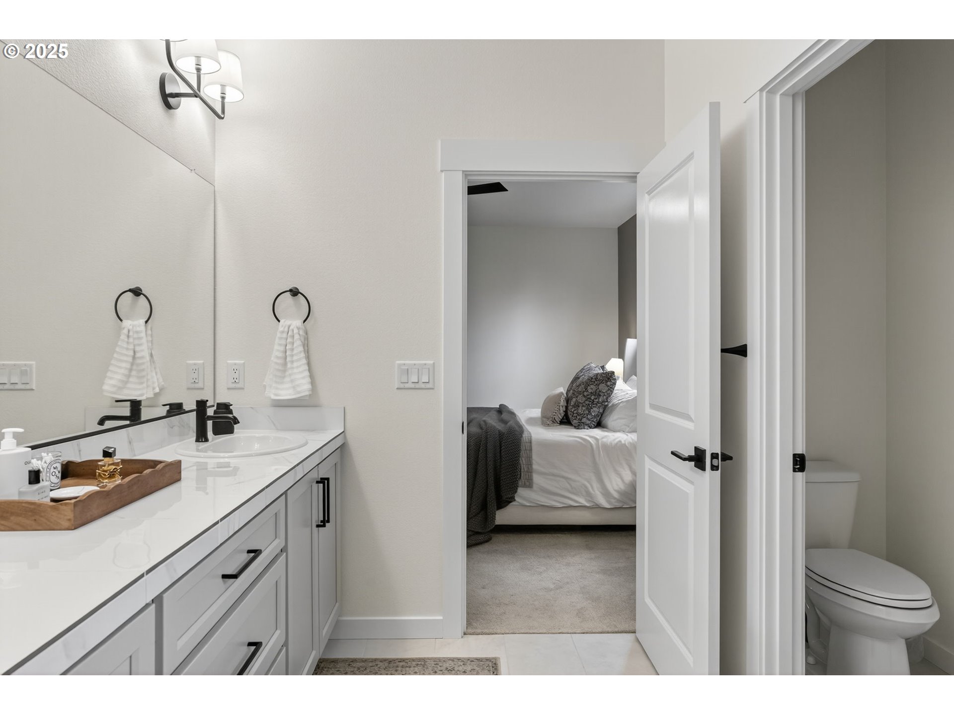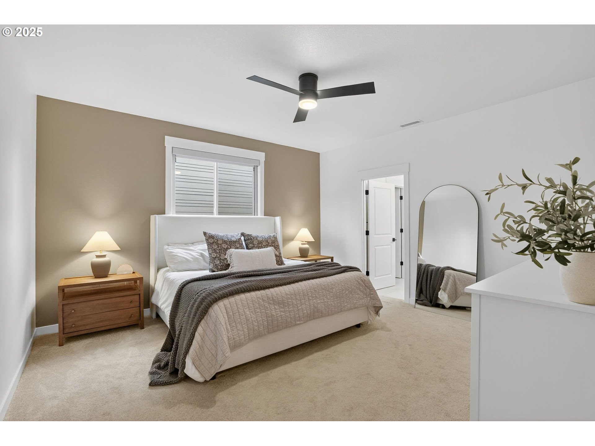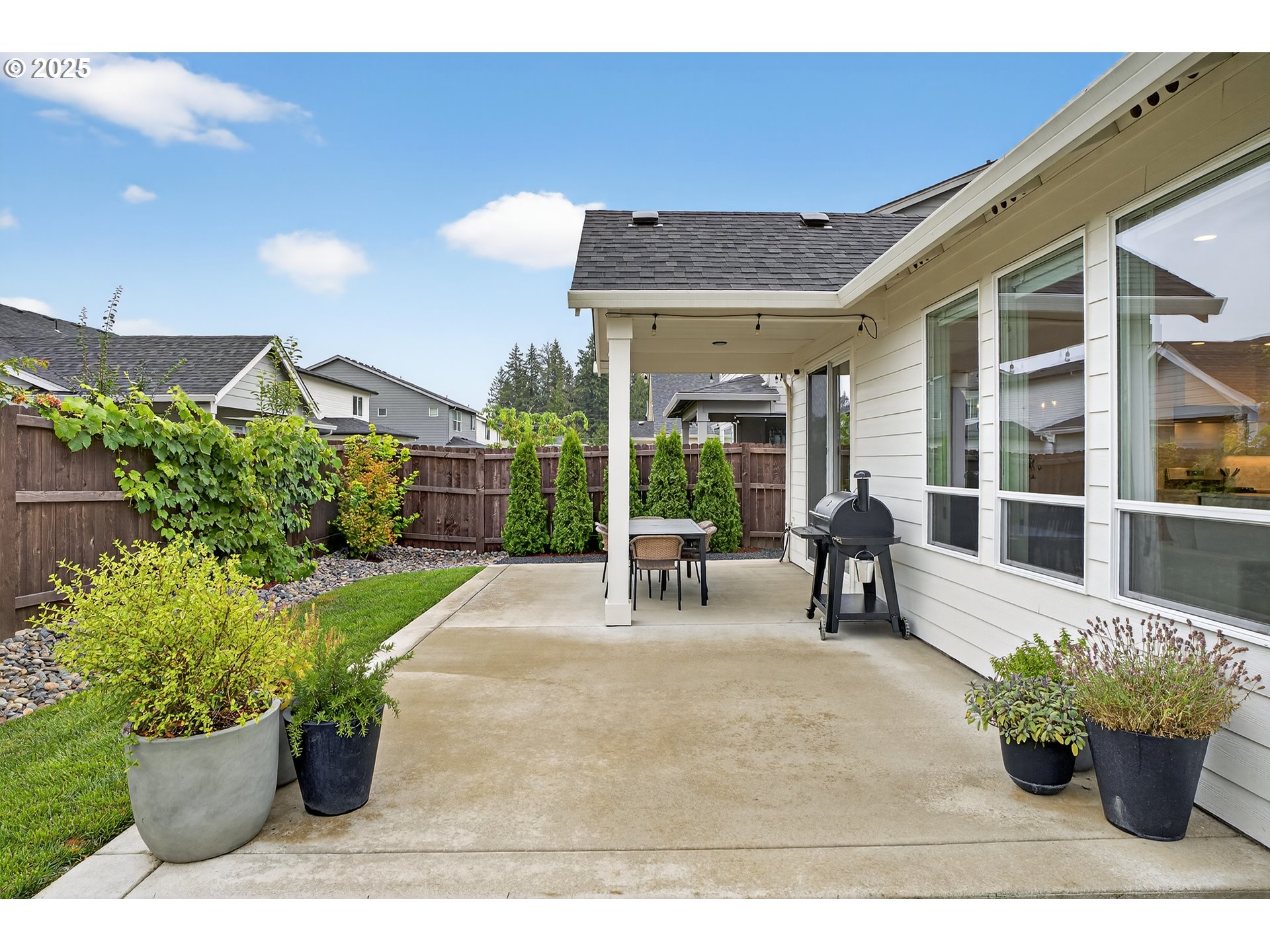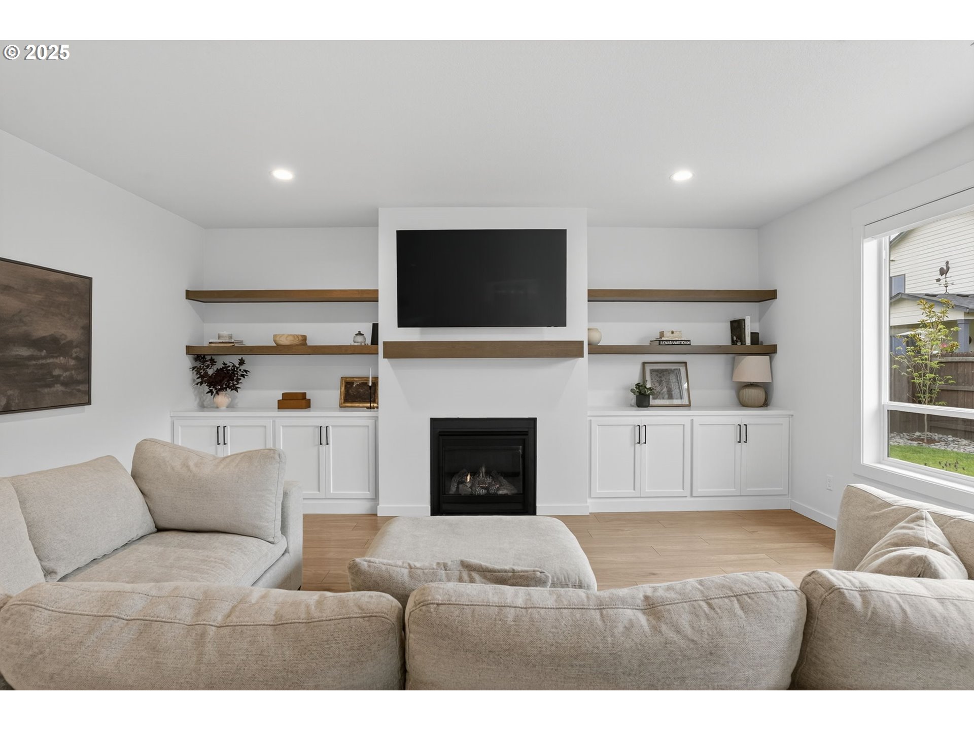 This house is pure perfection! Don't miss it! The pictures are great but it's even better in person! Custom built by award-winning Generations NW, it's a one level beauty loaded with upgrades. All you have to do is unpack and enjoy! The heart of the home is the great room, and this one delivers: the kitchen has a huge island with eating bar, quartz counters, stainless steel appliances, pantry big enough to stock up, plus pendant and under-cabinet lighting. The living room is modern, with a custom plaster fireplace, built-in cabinets, and floating shelves that look straight out of a designer magazine. Wide-plank floors flow, tying it all together with style. The primary suite is set apart from the other bedrooms for privacy, and comes with a motorized blackout shade for ultimate comfort and convenience. Step outside to your oversized covered patio and private backyard oasis, designed for maximum peace and quiet. Added Bonus: miles of walking trails just outside your door!