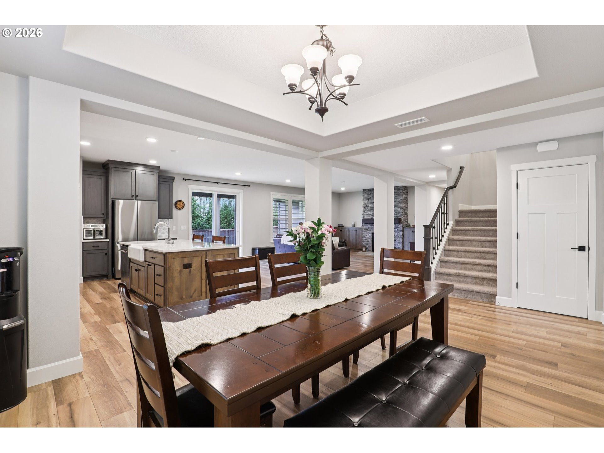 Step into your new home that truly has it all! This beautifully maintained & like-new home offers 5 bdrms + a dedicated office, including a highly desirable main-level bdrm, living space, & full bath—multi-generational living or a private workspace. The moment you enter, you’ll feel the soaring ceilings & expansive layout that creates an inviting & open feel. The heart of the home is the stunning kitchen, w/ dbl ovens, gas appl, generous pantry, & oversized island w/ ample seating. Thoughtfully designed w/ functionality in mind, the home includes the following pre-wired options, pendant lighting above the island, SS in bonus room, ceiling fan in great room & patio, hot tub, & security system. Upstairs, retreat to your luxurious prim ste w/ dual WI closets, a spa-like soaker tub, & a large tile shower. The additional bdrms are spacious & well-appointed + the convenient upstairs laundry that’s pre-plumbed for a utility sink. Enjoy upgraded window shutters that provide both style & privacy, complementing over 50k in builder upgrades that elevate the overall quality & finish.This home is as practical as it is beautiful, featuring 400-amp electrical service, finished & insulated garage, & whole-house water softener installed. Your private, fully fenced backyard w/ peaceful tree views—perfect for all. Located in a welcoming community w/ wide streets, playground, & pickleball courts, this home blends comfort, thoughtful upgrades, & modern convenience into 1 exceptional opportunity.