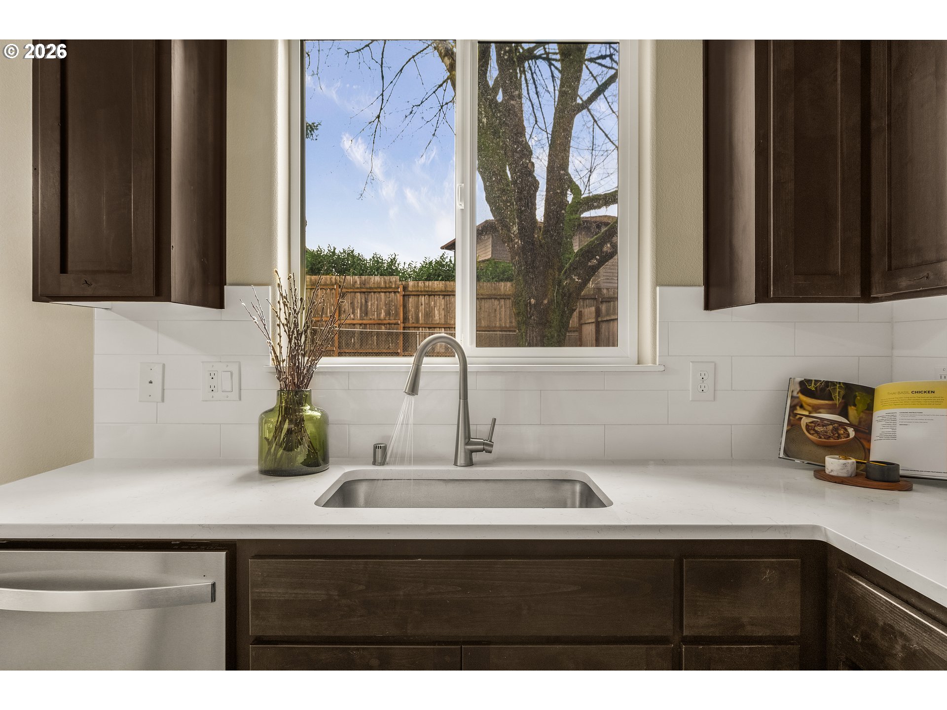 This gorgeous home features 4 bedrooms, 2.5 bathrooms and is close to a golf course, shopping, schools, and freeways. Entertaining family and friends is a delight with an open kitchen, dining, and living room that flows beautifully into your own backyard oasis. Imagine the memories you will make hosting summer barbecues and roasting marshmallows around the fire pit. You will love the 9 foot ceilings, knotty alder cabinets with raised panel doors, stainless gas range, quartz countertops, luxury vinyl plank flooring, brushed nickel hardware, and primary bedroom with walk in closet and en suite bath. This lovely home has been professionally cleaned and is move in ready. All this home needs is you!