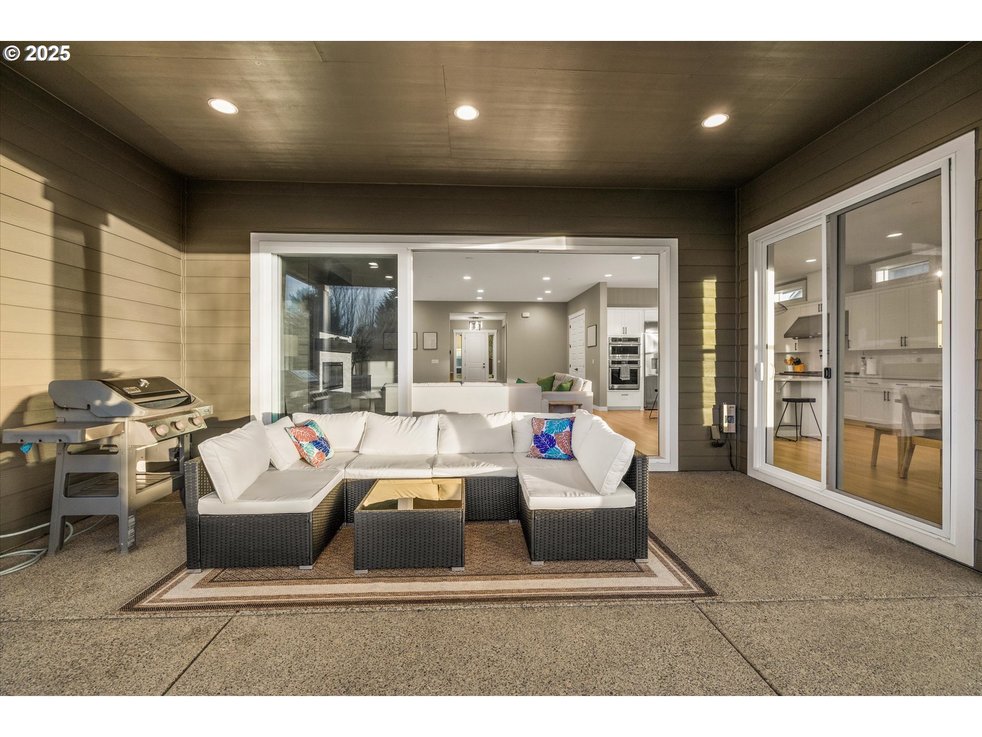 Enjoy effortless one-level living in this beautifully designed home located within a desirable gated community at Cooper Grove Estates, featuring an open, airy floorplan with soaring 10’ ceilings and elegant 8’ doors throughout. The heart of the home is an upgraded professional kitchen with an oversized island, perfect for gathering and entertaining, complemented by a butler’s pantry for added storage and prep space. A private den with built-in bookcase offers the ideal home office or reading retreat. The spacious primary suite showcases a spa-like bathroom with a large walk-in shower and a generously sized walk-in closet. Seamless indoor-outdoor living is made easy with multi-sliding patio doors that open to a newly landscaped backyard featuring turf, pavers, landscape lighting, and an oversized covered patio with extended concrete—ideal for entertaining. Additional highlights include a BBQ gas line, EV-charger readiness, and thoughtful upgrades throughout that blend style, function, and modern convenience.