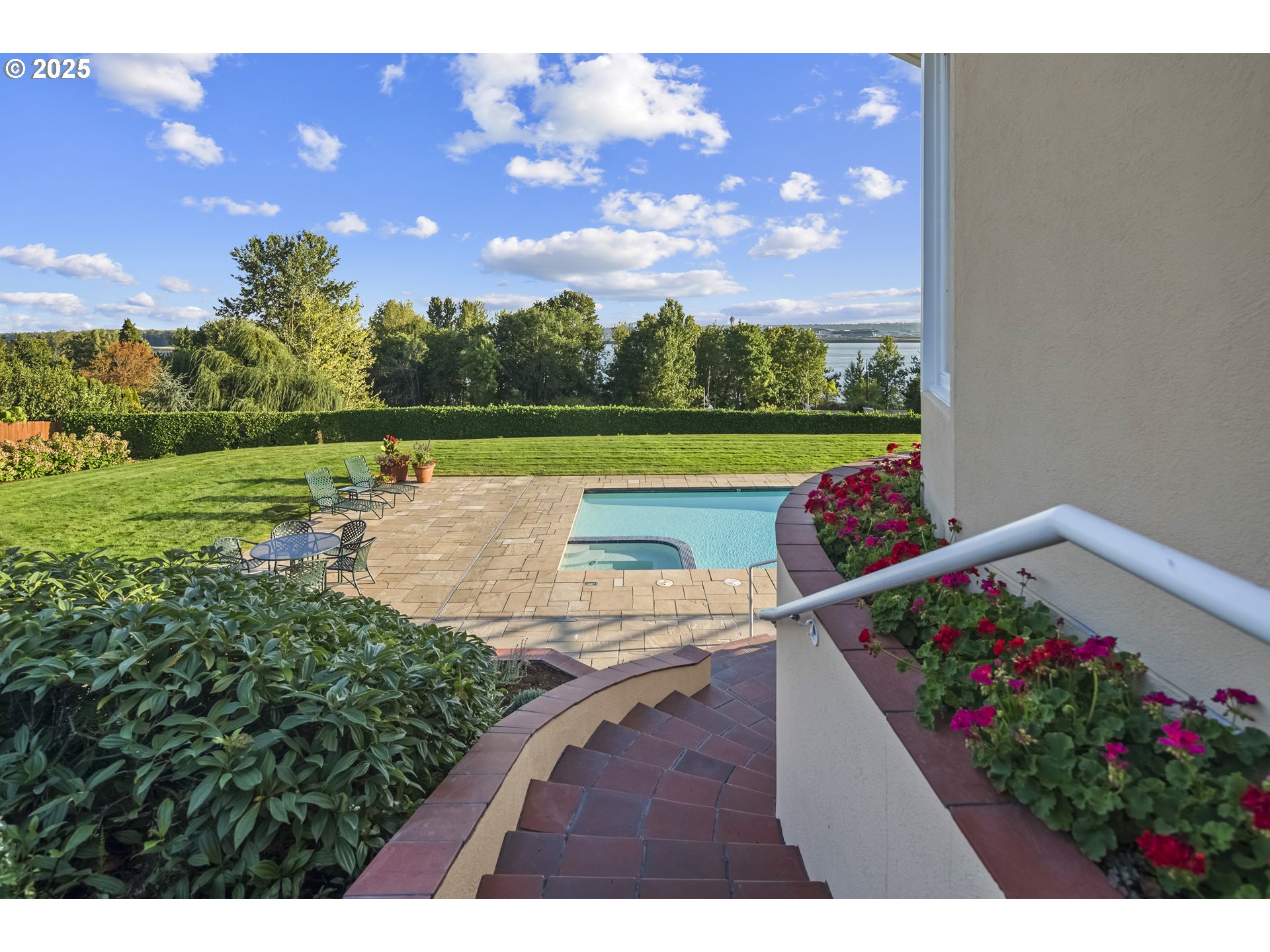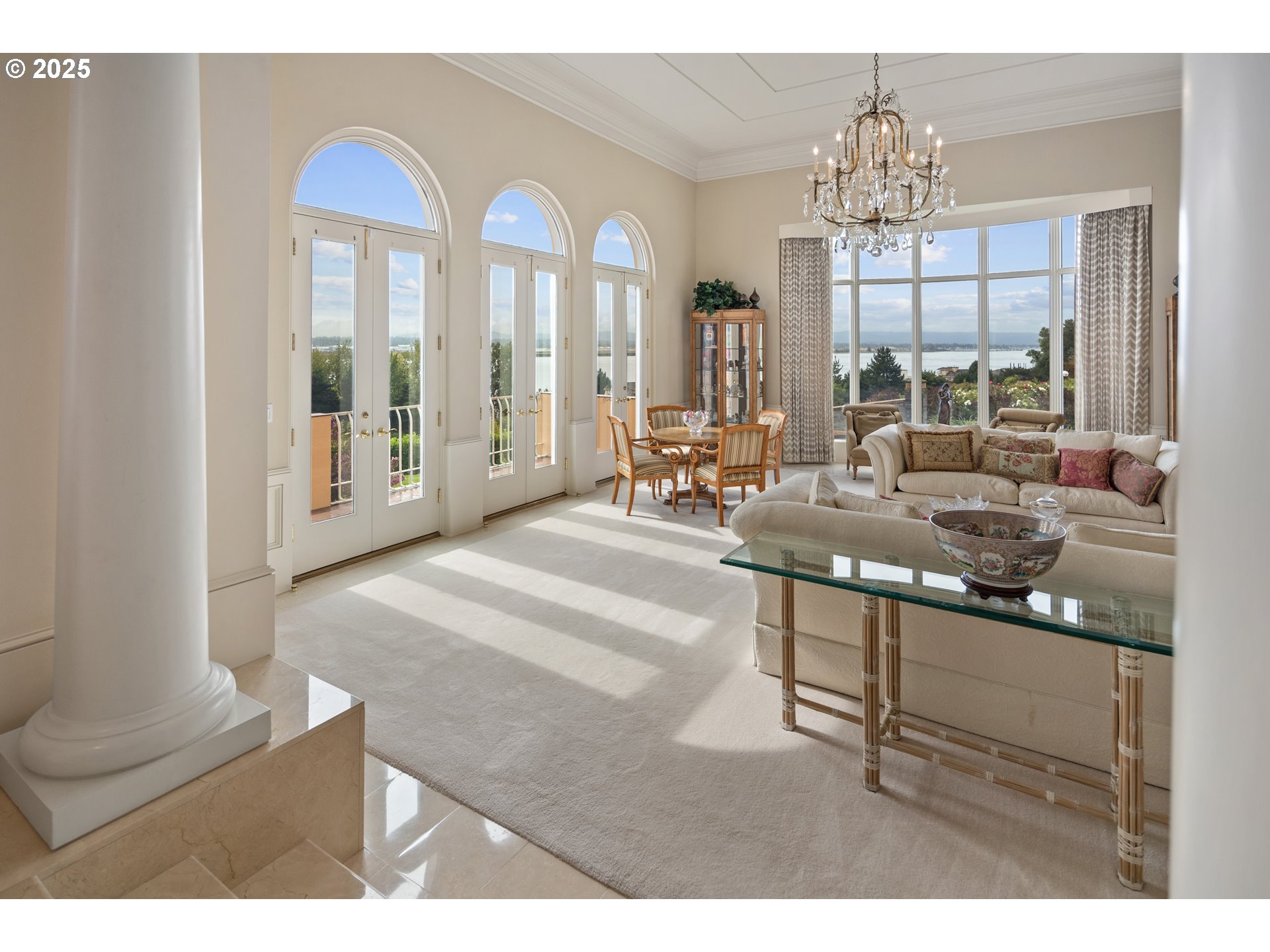 (503) 893-8874For the first time ever, this remarkable gated estate along the Columbia River is available to the market. It is a rare opportunity to own a residence that blends timeless architecture with grand scale living. Set on 1.58 acres and spanning 6,740 plus square feet, the home captures sweeping river views through walls of glass and stately arched French doors. Soaring ceilings, marble floors, and column lined galleries create a sense of quiet grandeur throughout the main level. Formal living and dining rooms open to terraces overlooking manicured grounds and the river beyond, while multiple fireplaces add warmth and elegance. The chef’s kitchen and breakfast nook are perfectly positioned to enjoy panoramic vistas, complemented by a generous butler’s pantry for effortless entertaining. Five bedrooms and six full, plus two half baths, offer refined comfort, highlighted by a primary suite with a spa-inspired bath, dual dressing areas, and a private fitness room. Two offices allow for multiple work-from-home spaces for the remote work. French doors open to secluded patios ideal for morning coffee or evening sunsets. A separate guest quarters with its own kitchen, fireplace, and balcony provides flexible living for extended stays or multigenerational needs. On the lower level, a spacious bonus room, wine cellar, and direct access to the pool create the perfect setting for relaxation and entertainment. Outdoors, resort-style living unfolds with an inviting pool, expansive terraces, and manicured gardens, all designed to embrace the serenity of riverfront living just minutes from downtown Vancouver and Portland International Airport.