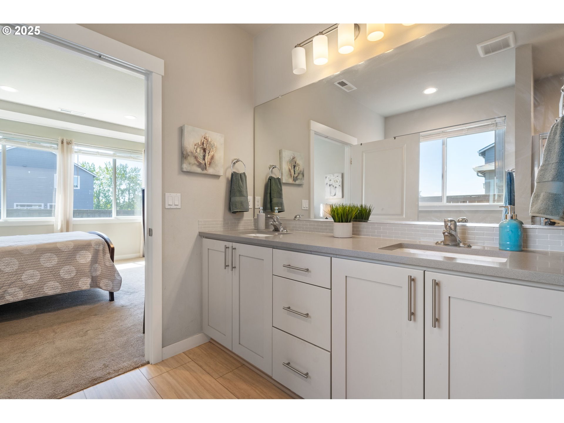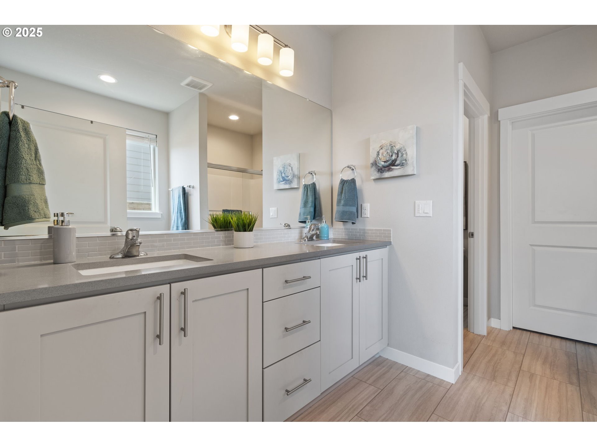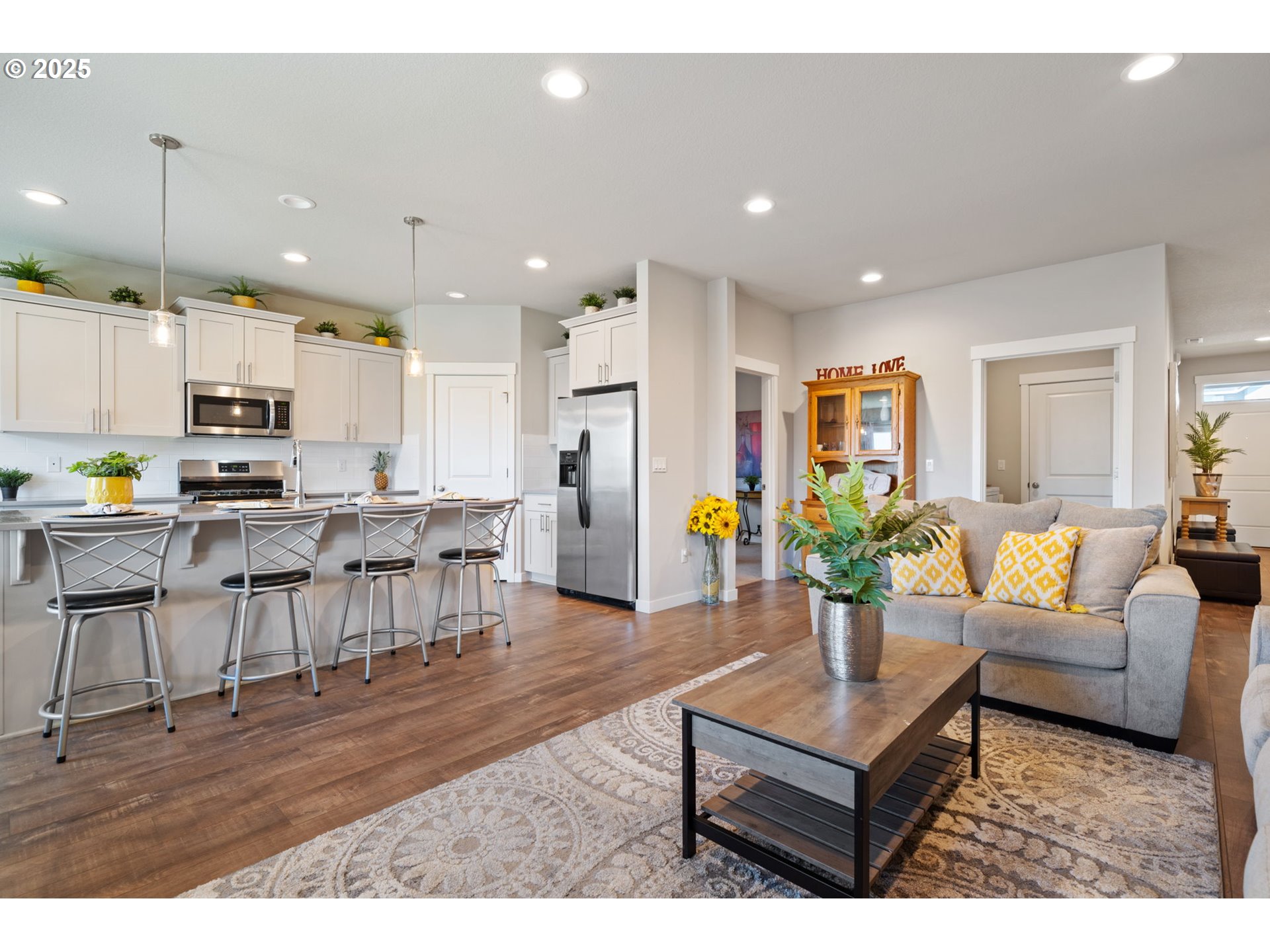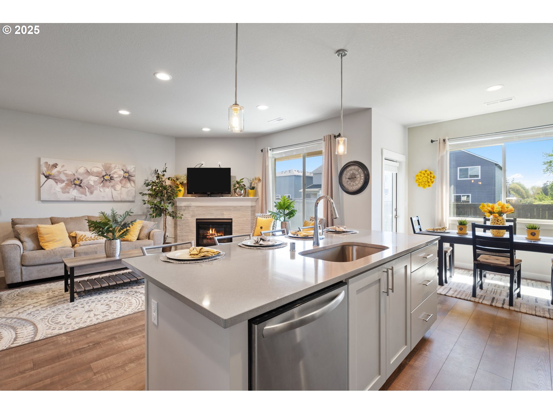 Enjoy the simplicity and ease of single-level living in this beautifully designed home, created with comfort, function, and timeless style in mind. The spacious, well-appointed kitchen features elegant quartz countertops, a large island for gathering, a gas range for precision cooking, and a striking full-height tile backsplash. The open layout transitions smoothly into the great room, featuring extended laminate flooring that brings warmth and cohesion, while a cozy gas fireplace with an elegant tile surround serves as a charming centerpiece. The primary suite is a peaceful retreat offering a spa-like bathroom with luxury vinyl tile, a beautiful soaking tub, and modern finishes that strike the perfect balance between classic comfort and contemporary style. Step outside from either the primary or the dining area to a generously sized, extended concrete patio is perfect for morning coffee, outdoor meals, and tending to easy-care gardening. The seller has recently planted arborvitae, which will continue to grow and create added privacy in the backyard. Skip the delays and hassle of new construction, this home is move-in ready with carefully selected upgrades throughout. Every detail has been considered so you can settle in and start enjoying life right away. Tucked in a vibrant community with walking trails, parks, and quick access to the Ridgefield Wildlife Refuge, I-5, and shopping, this location offers the best of both convenience and nature. Come experience the comfort, quality, and convenience for yourself! Schedule a tour today!