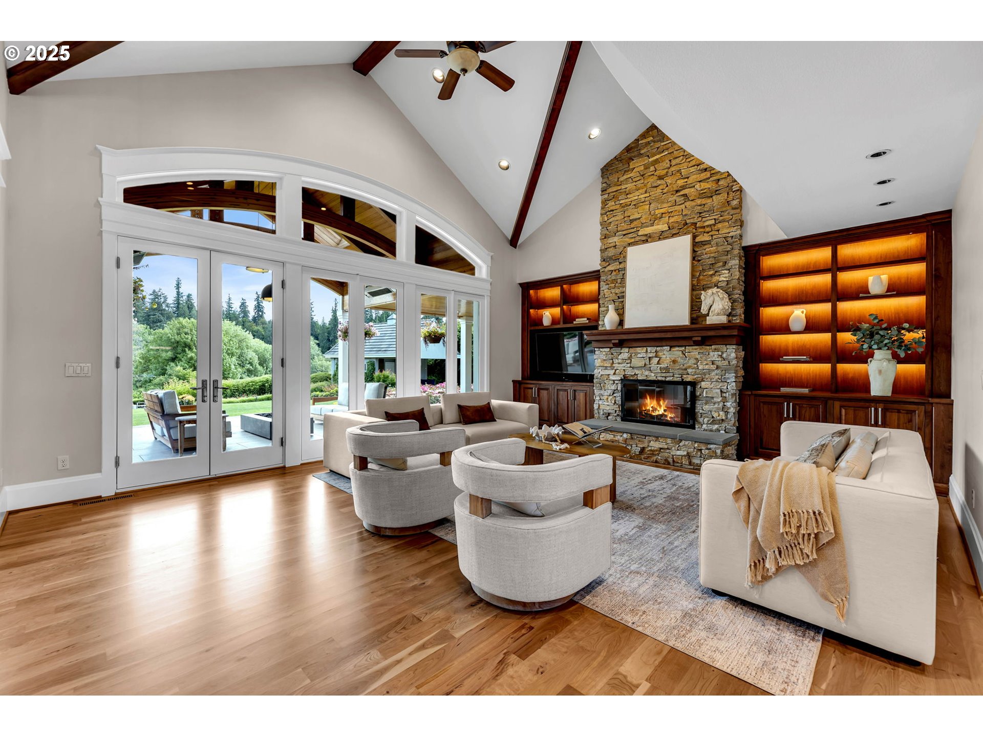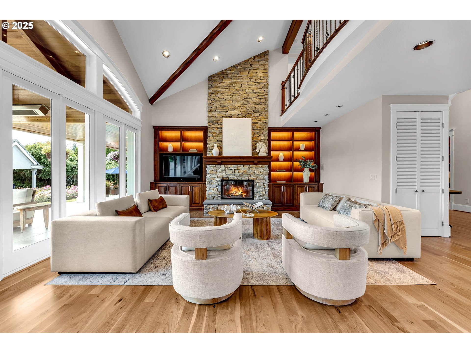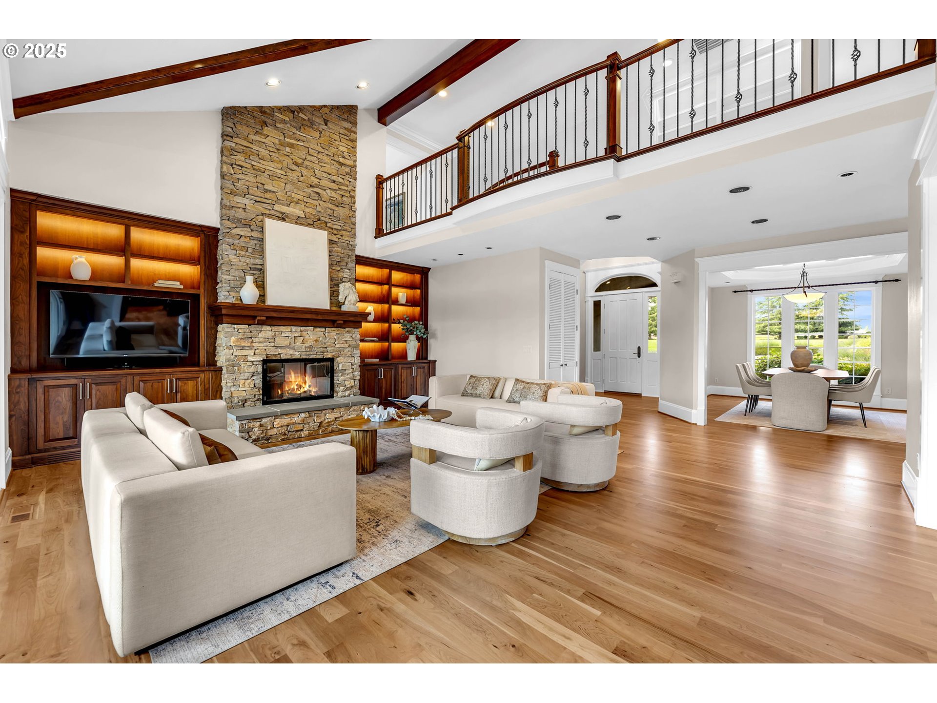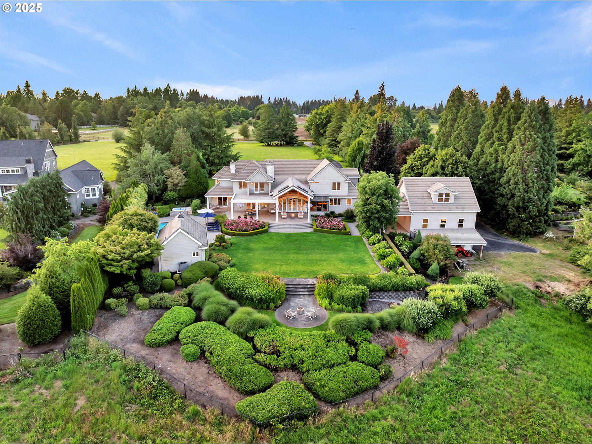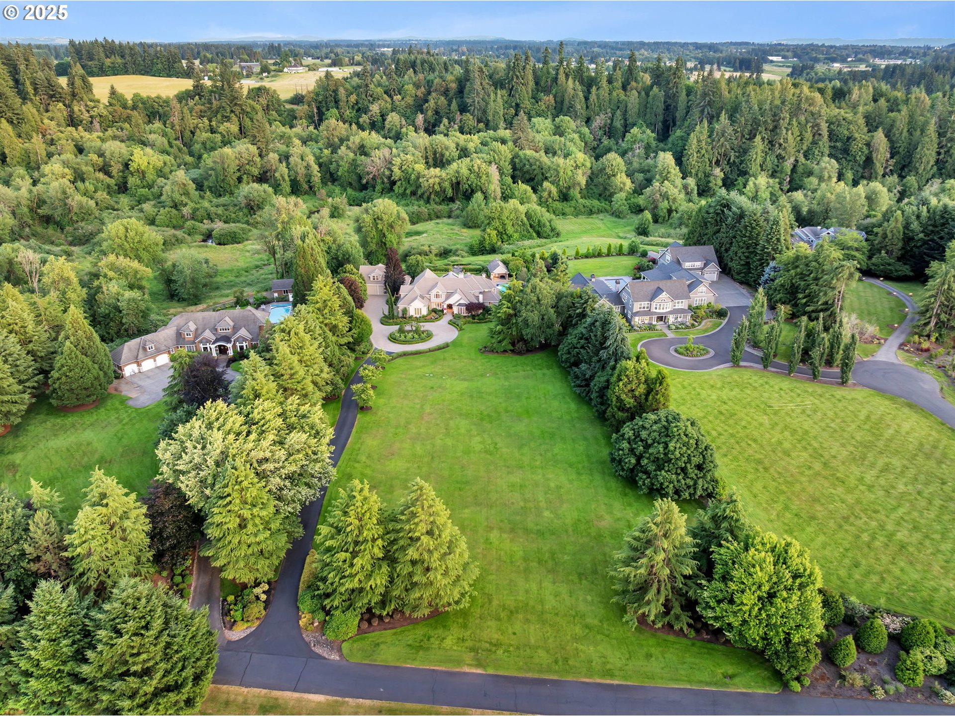 (503) 893-8874Welcome to the best of Northwest living in this exceptional 5-acre estate, custom-built and lovingly maintained by its original owner in the gated Salmon Creek Woods community. Surrounded by lush landscaping and breathtaking territorial views, this home combines timeless design with modern updates throughout. A grand entry with curved staircase and hardwood floors leads to a vaulted great room with beamed ceilings, stone fireplace, lighted built-ins, and expansive windows. The gourmet kitchen features high-end appliances, slab granite and quartz counters, custom cabinetry, and a hidden walk-in pantry.The main-level suite with private entrance, living area, full bath, fireplace, and patio access is ideal for multigenerational living or ADU potential, with space plumbed for a kitchenette. Upstairs, the primary suite includes a gas fireplace, two walk-in closets, a spa-like bath, and private balcony with views of the pool and greenway. All bedrooms are spacious with built-ins and ample closet space. Two full bathrooms serve the three guest bedrooms upstairs. Enjoy exceptional outdoor living with a timber-frame covered patio, multiple open patios, fire-pit area, in-ground pool with automatic cover, pool house with bathroom and sauna, and a hot tub. A 3-car attached garage plus a 3-story detached garage/shop with upper bonus room provide extensive storage and workspace. This one-of-a-kind retreat offers elegance, functionality, and resort-style amenities in a stunning landscaped setting.