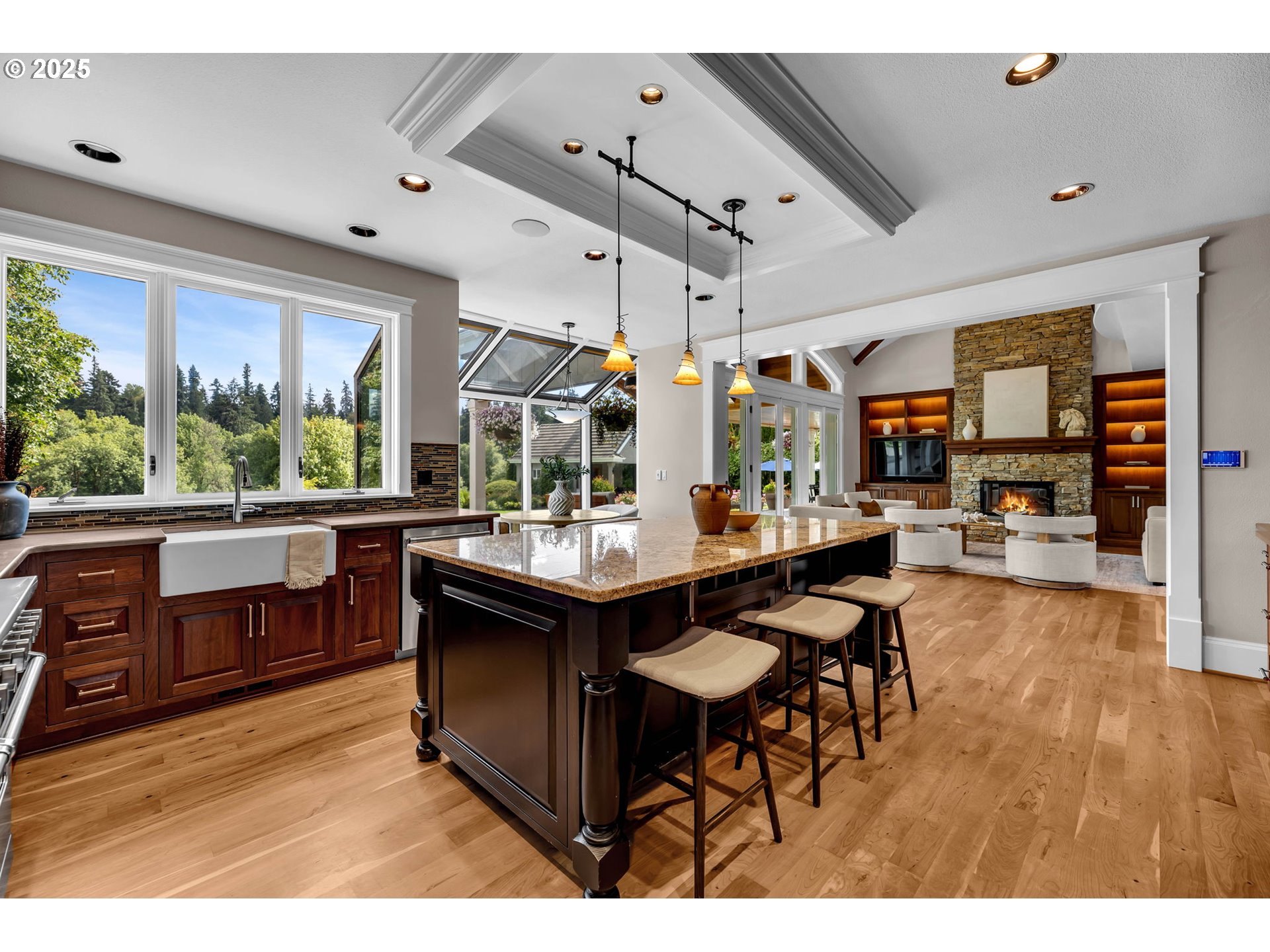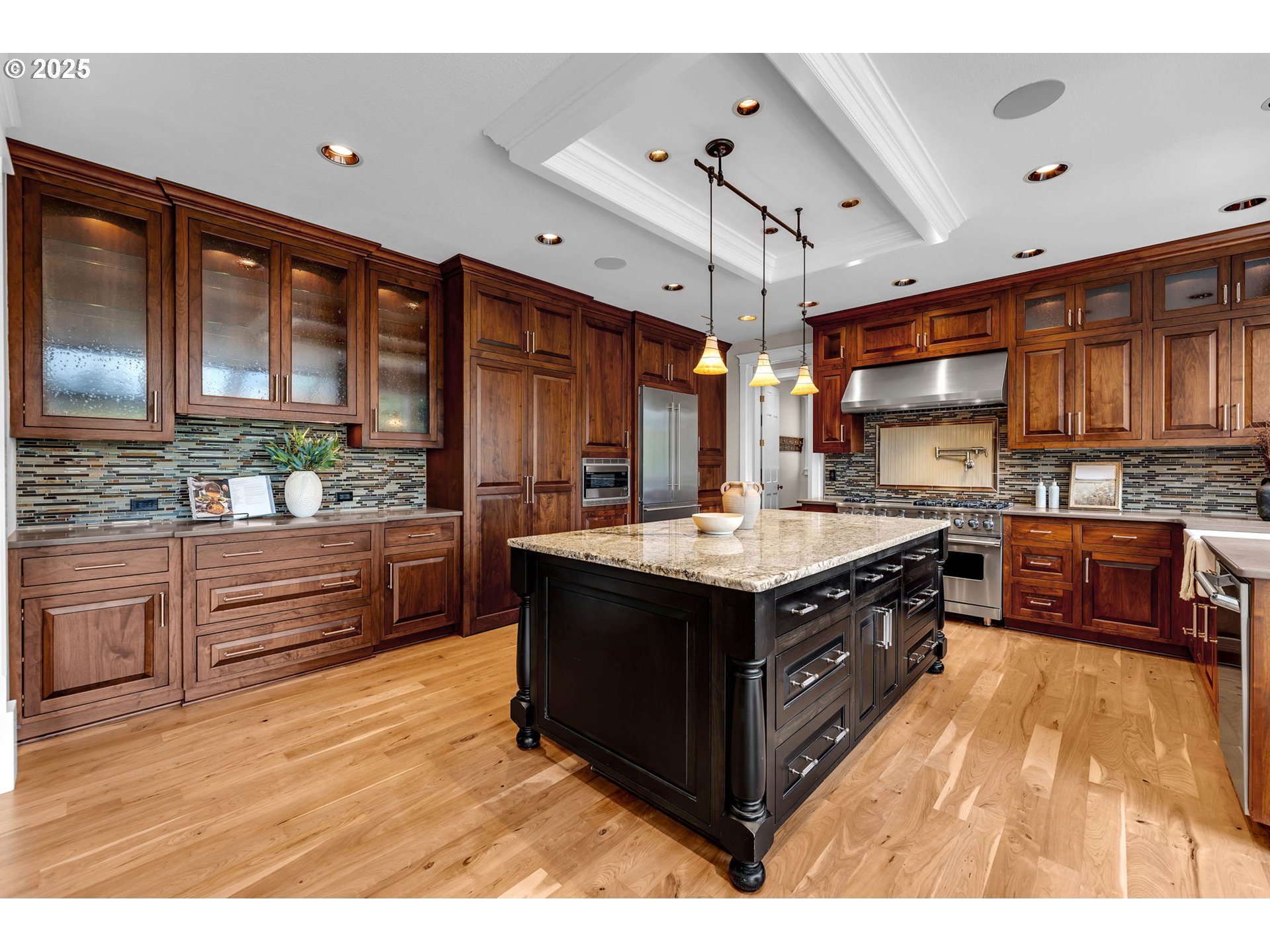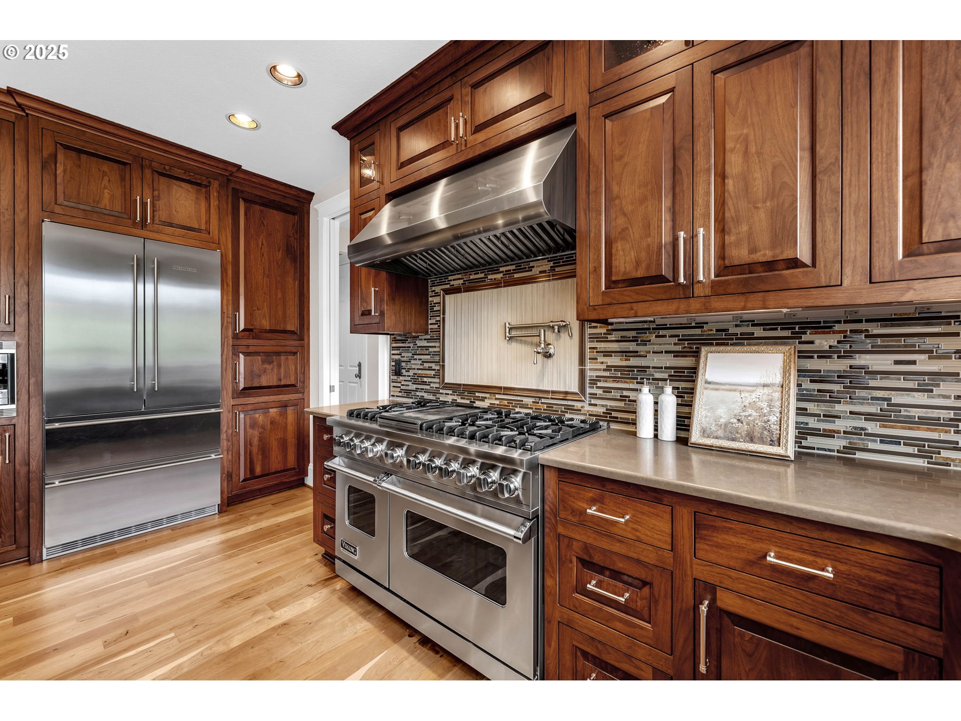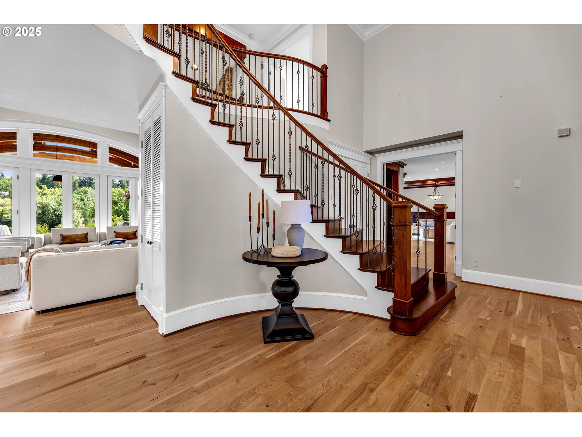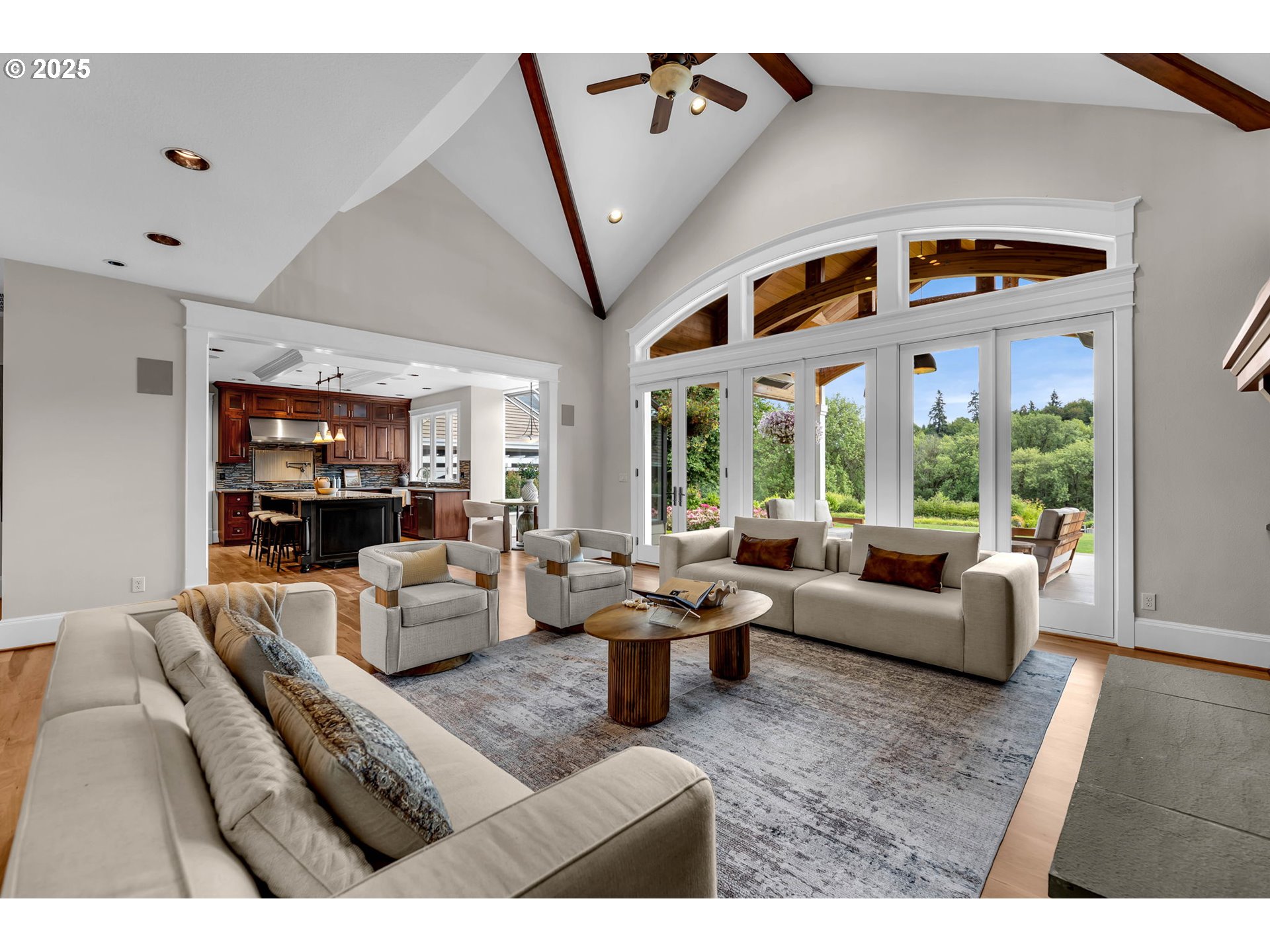 (503) 893-8874Welcome to the best of Northwest living in this exceptional 5-acre estate, custom-built and lovingly maintained by its original owner in the gated Salmon Creek Woods community. Surrounded by lush landscaping and breathtaking territorial views, this home combines timeless design with modern updates throughout. A grand entry with curved staircase and hardwood floors leads to a vaulted great room with beamed ceilings, stone fireplace, lighted built-ins, and expansive windows. The gourmet kitchen features high-end appliances, slab granite and quartz counters, custom cabinetry, and a hidden walk-in pantry.The main-level suite with private entrance, living area, full bath, fireplace, and patio access is ideal for multigenerational living or ADU potential, with space plumbed for a kitchenette. Upstairs, the primary suite includes a gas fireplace, two walk-in closets, a spa-like bath, and private balcony with views of the pool and greenway. All bedrooms are spacious with built-ins and ample closet space. Two full bathrooms serve the three guest bedrooms upstairs. Enjoy exceptional outdoor living with a timber-frame covered patio, multiple open patios, fire-pit area, in-ground pool with automatic cover, pool house with bathroom and sauna, and a hot tub. A 3-car attached garage plus a 3-story detached garage/shop with upper bonus room provide extensive storage and workspace. This one-of-a-kind retreat offers elegance, functionality, and resort-style amenities in a stunning landscaped setting.