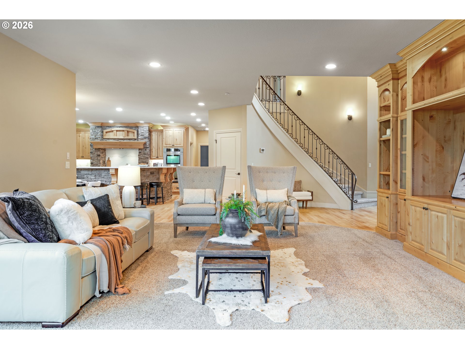 (503) 893-8874This stunning Ridgefield estate offers refined luxury on a 1-acre lot with fully fenced backyard, blending thoughtful design with high-end finishes throughout. The 5-bedroom, 3-bath home features an oversized executive office with custom built-ins, a main-level bedroom and full bath, a spacious laundry room, and an upstairs bonus room ideal for media or recreation. Every upstairs bedroom includes walk-in closets with full closet systems, while the primary suite impresses with a jetted tub, dual-head walk-in shower, dual vanity, and an expansive custom closet. The chef’s kitchen showcases an induction cooktop, quartz countertops, large pantry, stone detailing around the cooktop and island, and a striking stone fireplace anchoring the living space. Hardwood floors, custom woodwork, tile accents, triple-pane windows, and a new 2025 HVAC system elevate comfort and efficiency. Outdoor living shines with a 17-foot swim spa, composite deck, mature landscaping, irrigation system, blueberry bushes, and fruit-bearing apple trees. An exceptional garage setup with RV parking, 50-amp EV charging, extra-height third bay, and a dedicated shop with loft completes this rare offering—delivering luxury, flexibility, and lifestyle in one truly standout property.