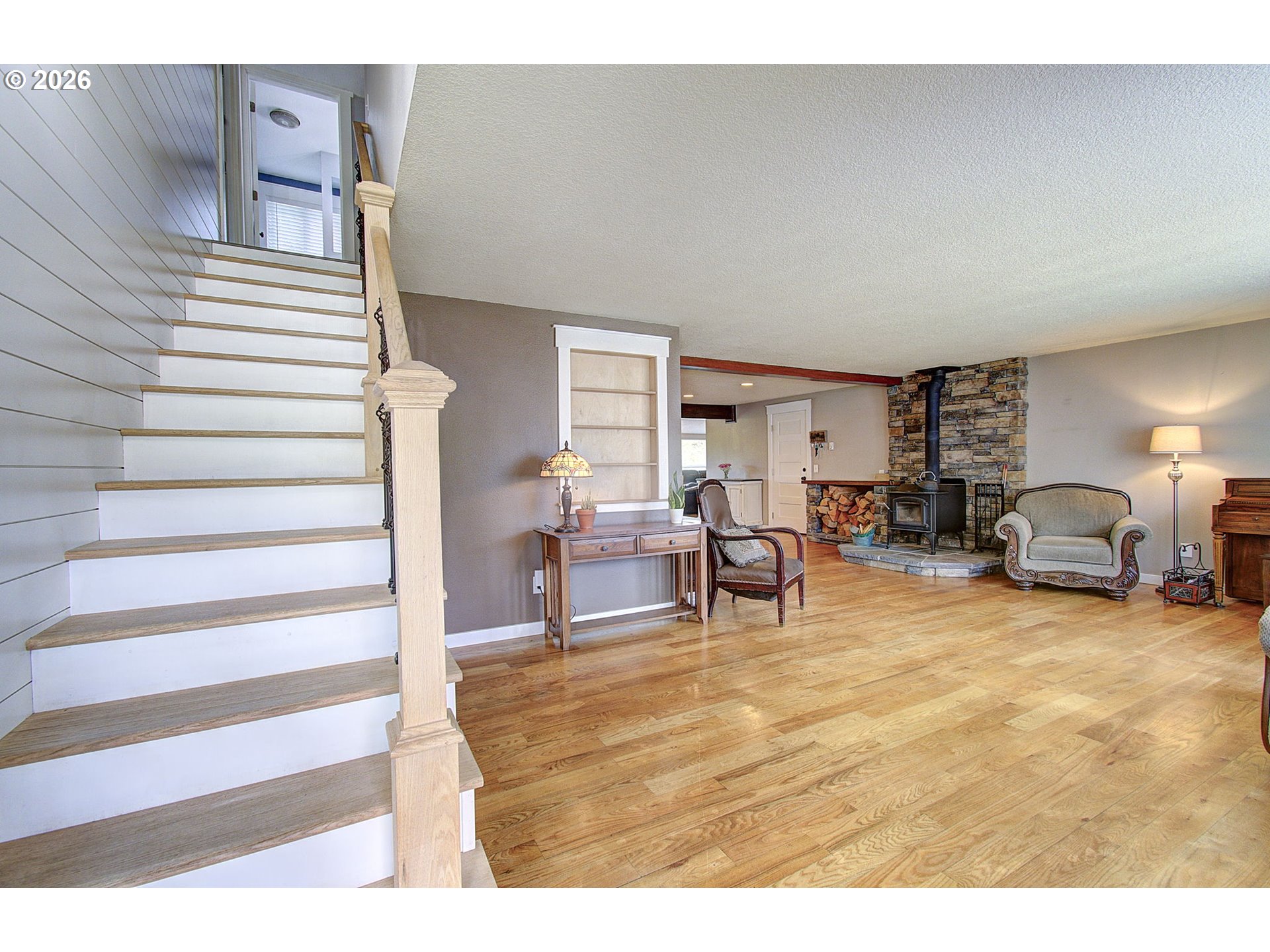 Don't let the size fool you. Impressively remodeled and added onto, this 3000+ SF home has it all! 5 bedrooms,2 1/2 baths, 2 living areas and large bonus room upstairs, all located on a cul-de-sac, greenbelt lot! The front living room boasts hardwood floors that continue into the open, remodeled and upgraded gourmet kitchen and eating area. Upgrades include new cabinets with soft close, pantry, quartz countertops, stainless steel appliances and stainless steel farmhouse sink. The new addition back living area has high vaulted ceilings & ductless heat pump. The main floor has 4 bedrooms and added jack & jill bathroom. Ascending the red oak stairs to the upper level, a primary suite awaits with double closets, ceiling fan and quaint alcove. Use the huge bonus room as flex space. The new additions still left space for a good-sized back yard that includes a woodshed, toolshed & chicken coop. Enjoy the peace and tranquility of the greenbelt lot while sitting under the covered patio. Check out all this house has to offer.