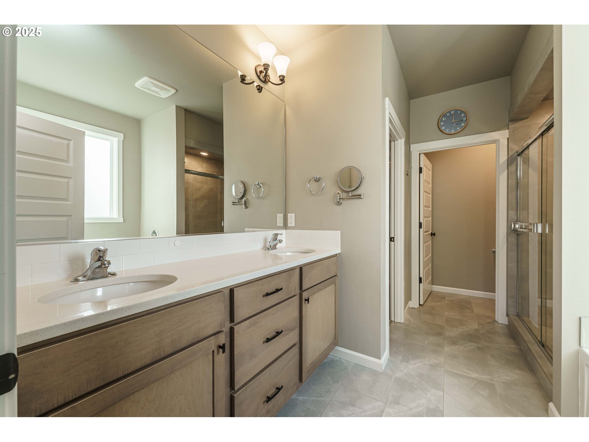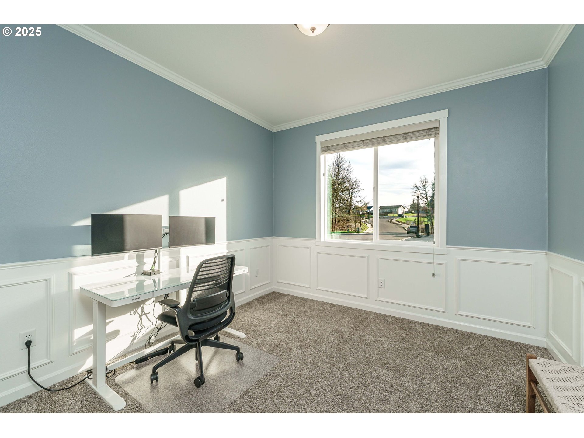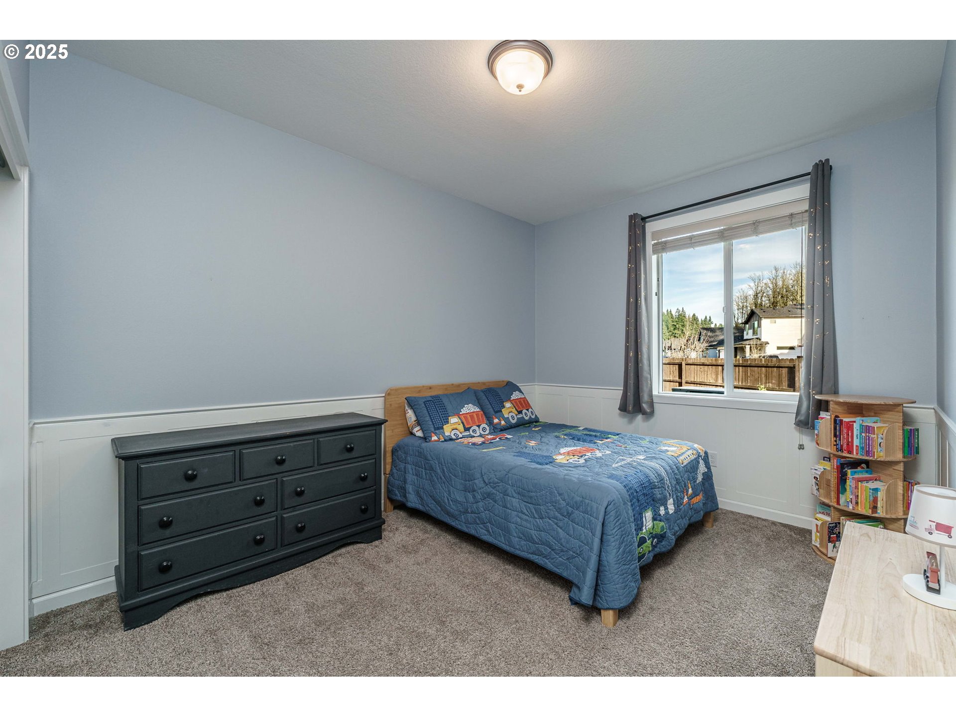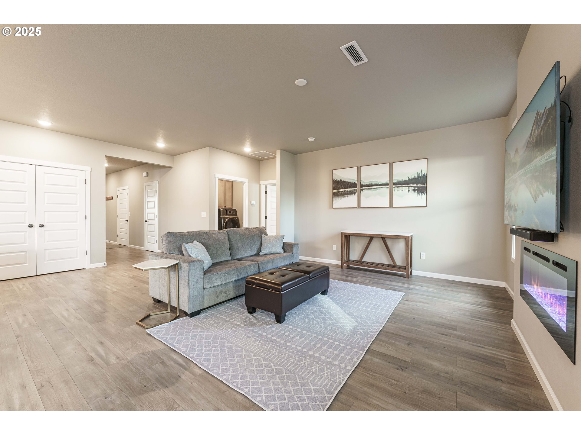 Welcome to this beautifully upgraded 4-bed, 2-bath former model home nestled on a quiet cul-de-sac corner lot. Built in 2022 and designed for single-level living, this home features custom paint, crown molding,and a spacious great-room concept filled with natural light.The gourmet kitchen offers quartz slab countertops, stained cabinetry, double ovens, stainless gas appliances, a full-height subway tile backsplash, under-cabinet & pendant lighting, and an oversized island perfect for entertaining. Enjoy the cozy linear electric fireplace in the great room and the convenience of wider doorways, 9 ft ceilings, and laminate plank flooring throughout the main living areas.The luxurious primary suite features tile bathroom floors and a walk-in tile shower. Additional highlights include a huge 24' x 10' covered patio, 80-gallon hybrid water heater, garden/tool shed, laundry room with cabinets & sink, full landscaping, fenced yard, EV charger circuit, and a massive backyard—with the play structure included!