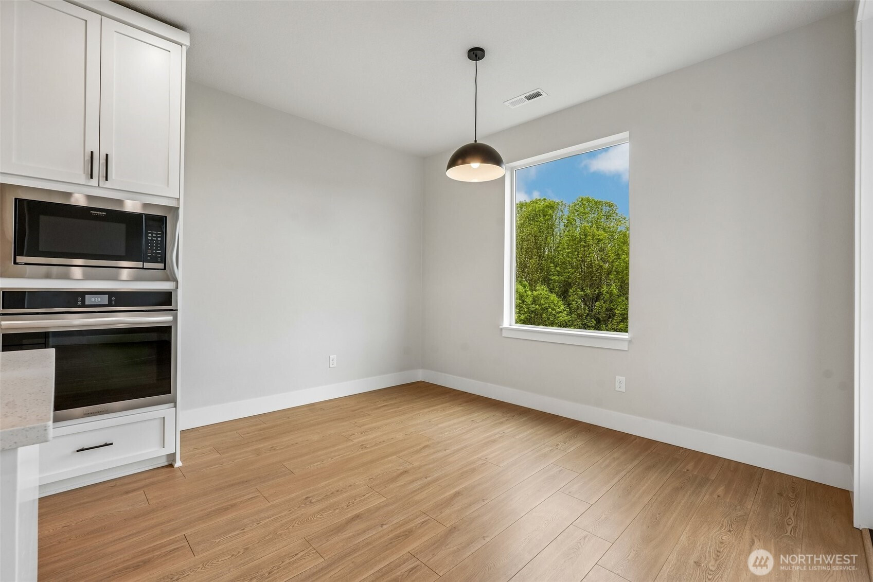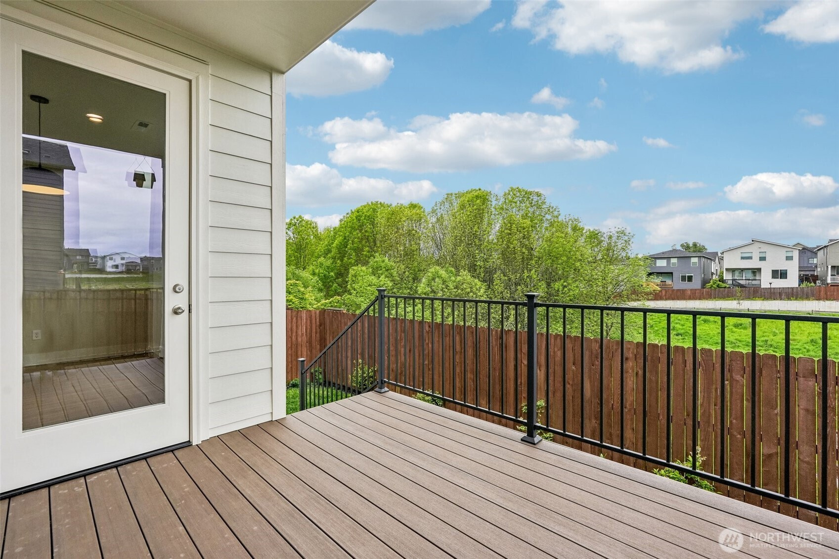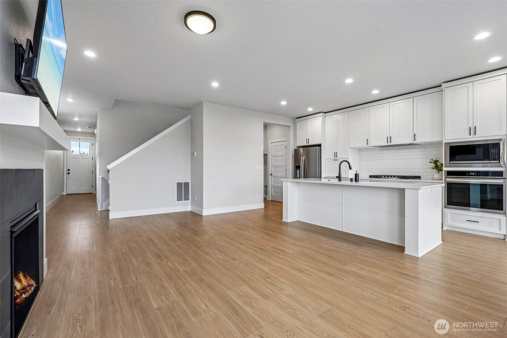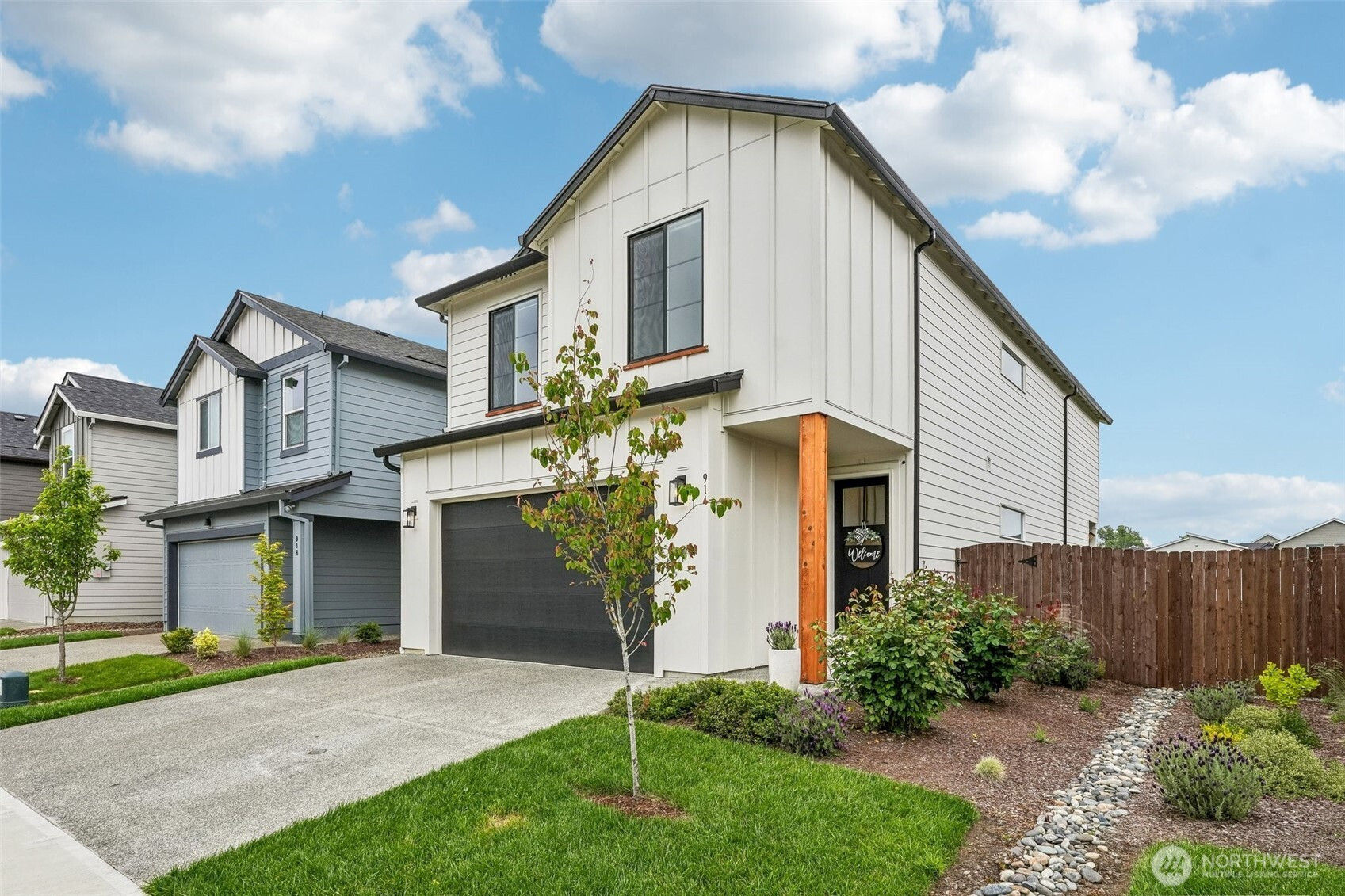 Set against a generous stretch of protected land, this North Haven Farmhouse offers both privacy and a serene outlook. Built in 2023, the home features a bright, open-concept layout with thoughtful finishes throughout, including white quartz surfaces, gas appliances, and tasteful wide-plank vinyl flooring. The main living area has a designated dining space and a French door leading out to a deck with direct access to the yard, while a practical mudroom conveniently connects to the garage. The primary suite on the upper level has a walk-in closet and a shower, positioned to take advantage of the peaceful natural backdrop. Two additional bedrooms share a Jack-and-Jill bath, and an upstairs loft presents the opportunity to be finished as a fourth bedroom or flex space. Impeccably maintained, the home also includes a dog bathing station, and all appliances are included. Located within a sought-after school district and offering easy access to local amenities and PDX. This home is move-in ready and better than new!