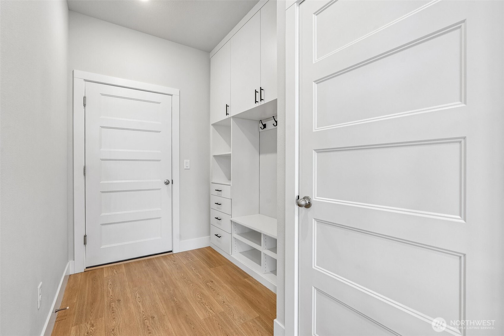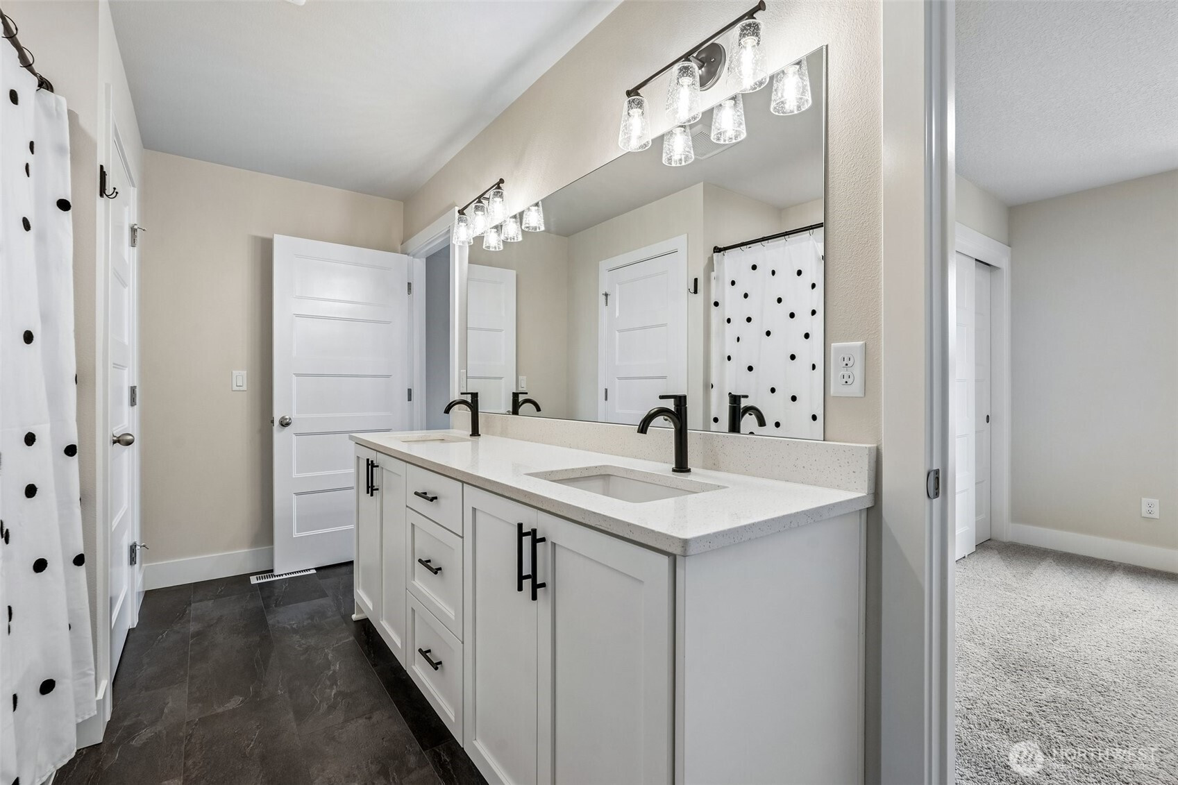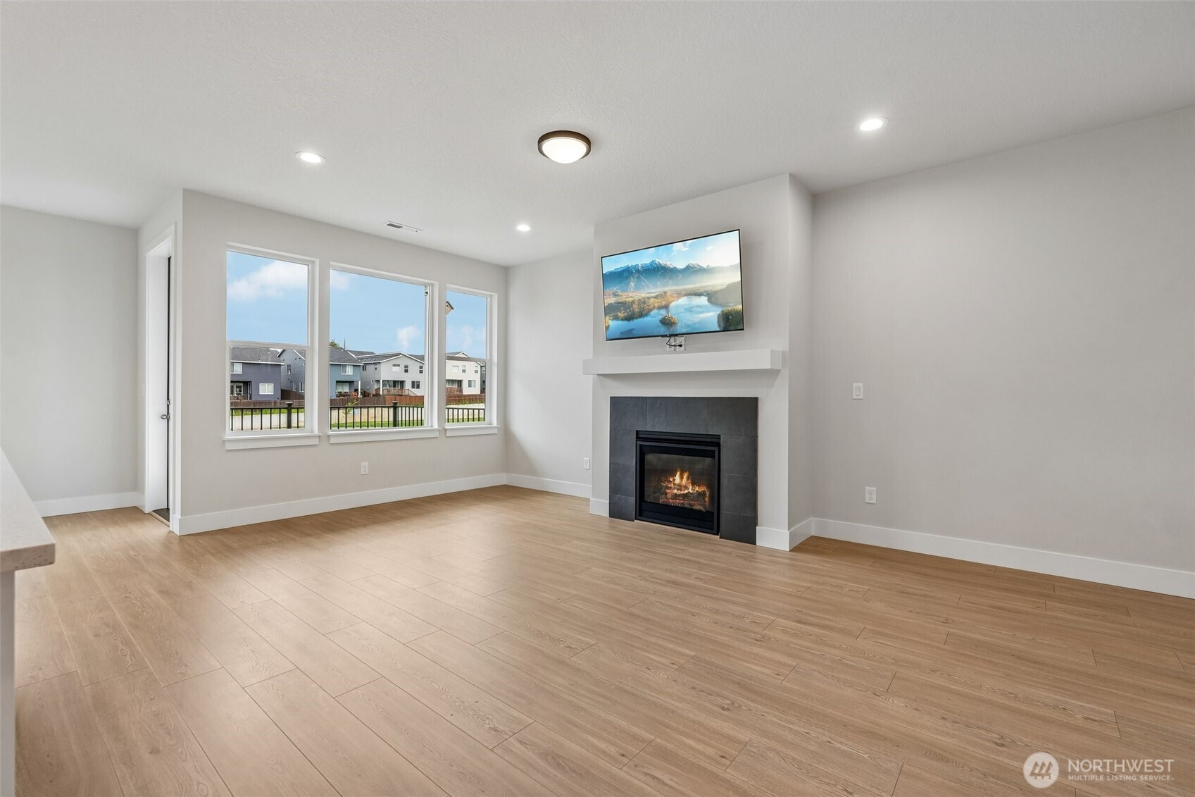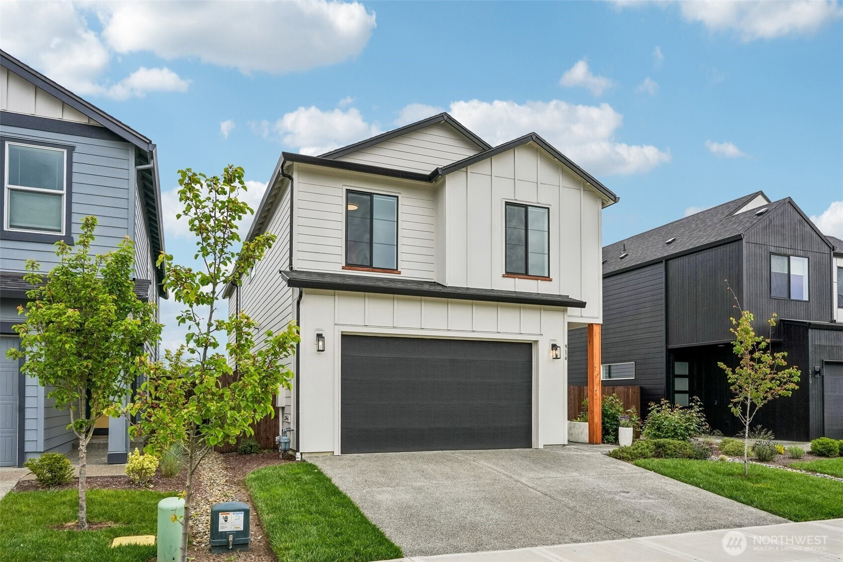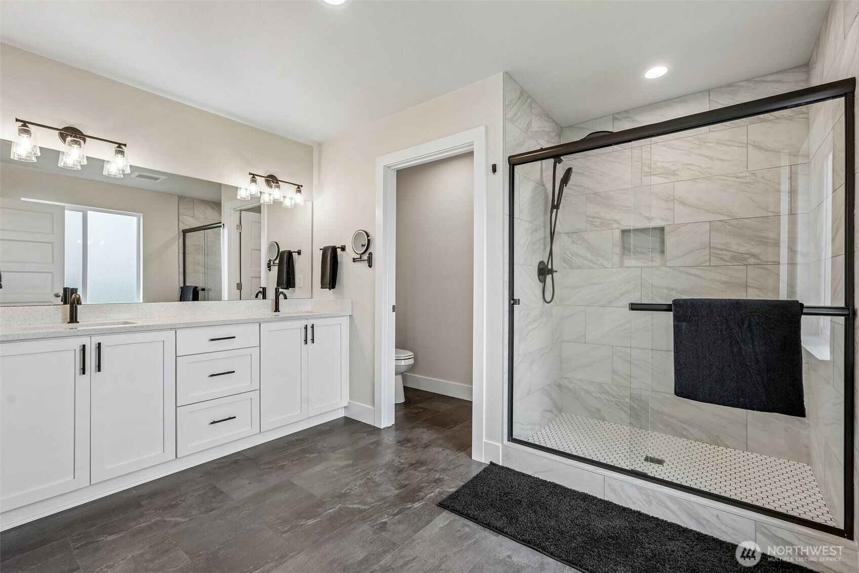 Set against a generous stretch of protected land, this North Haven Farmhouse offers both privacy and a serene outlook. Built in 2023, the home features a bright, open-concept layout with thoughtful finishes throughout, including white quartz surfaces, gas appliances, and tasteful wide-plank vinyl flooring. The main living area has a designated dining space and a French door leading out to a deck with direct access to the yard, while a practical mudroom conveniently connects to the garage. The primary suite on the upper level has a walk-in closet and a shower, positioned to take advantage of the peaceful natural backdrop. Two additional bedrooms share a Jack-and-Jill bath, and an upstairs loft presents the opportunity to be finished as a fourth bedroom or flex space. Impeccably maintained, the home also includes a dog bathing station, and all appliances are included. Located within a sought-after school district and offering easy access to local amenities and PDX. This home is move-in ready and better than new!
