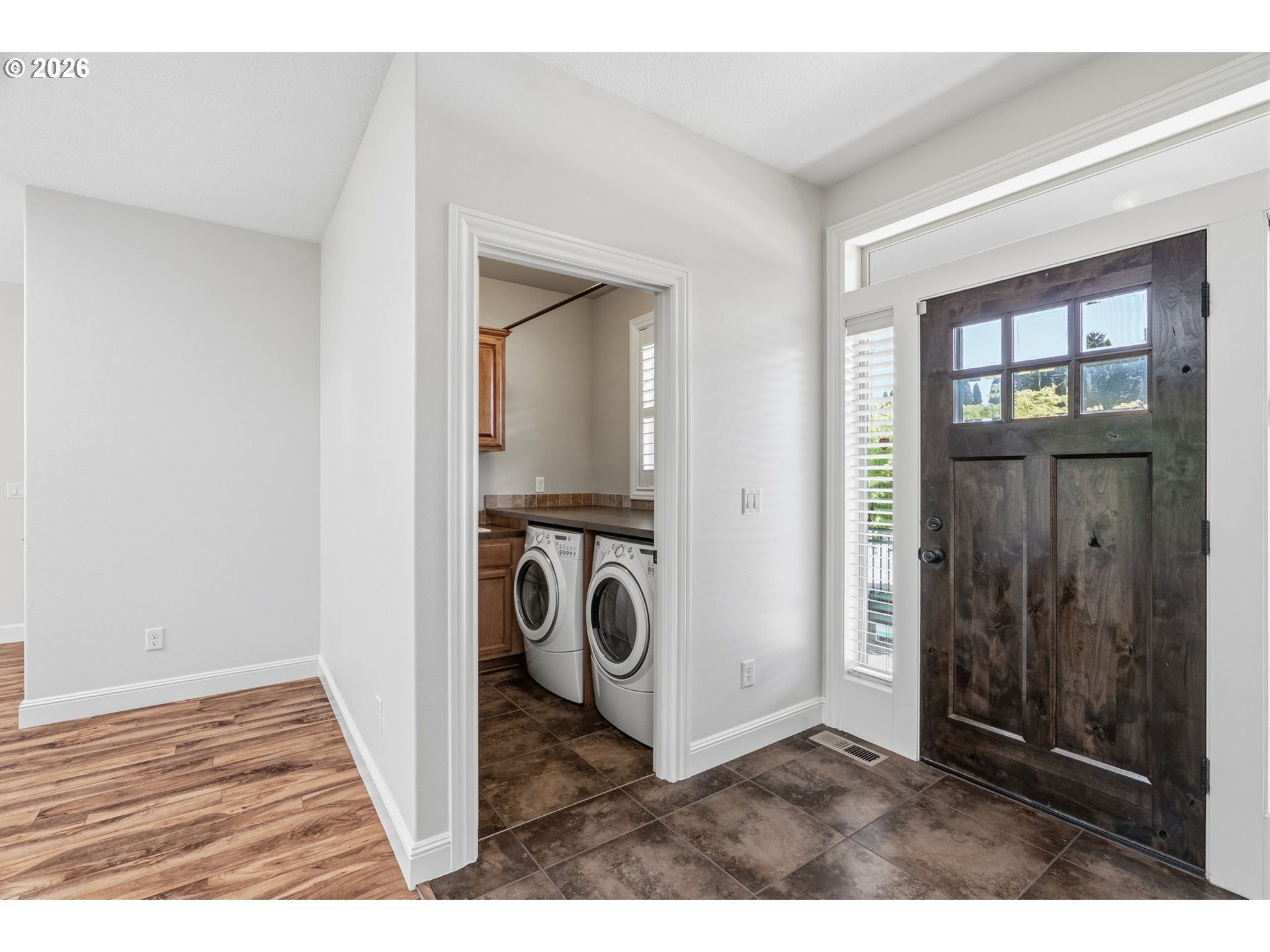 Step into this well cared-for ranch and feel everyday life become a little easier, a little brighter, and a lot more comfortable. Tucked into a quiet cul-de-sac in a NW Vancouver neighborhood, this home blends modern updates with warm inviting spaces creating a home that feels both practical and indulgent. You will be greeted by a neatly manicured, easy-care front yard and charming gated entry. Step through the front door and into a welcoming great room where natural light pours in through skylights. Soft daylight seamlessly connects living, dining, and kitchen spaces—ideal for both relaxed evenings at home and effortless entertaining. The great room has a sense of openness and flow that makes the home feel larger than its footprint. The kitchen is both beautiful and functional, anchored by sleek quartz counter and custom cabinets. This home’s three bedrooms offer flexibility for your lifestyle. The primary suite provides a restful retreat that will not disappoint. The two additional bedrooms can serve as guest spaces, home offices, hobby rooms, or kids’ rooms—adaptable spaces that can grow and change with your needs. Both bathrooms are designed for convenience and comfort, with an easy, one-level layout that feels intuitive and accessible. The dedicated laundry room keeps everyday tasks contained, offering space to sort, fold, and store essentials out of sight yet within easy reach. One of the subtle but significant features of this home is the air-cleaning system, working quietly in the background to help keep the indoor air fresh. The yard’s scale feels just right—enough space to garden play or entertain. Whether you’re welcoming guests of all ages, planning to age in place, or simply prefer the comfort and practicality of a ranch-style home, this floor plan delivers.