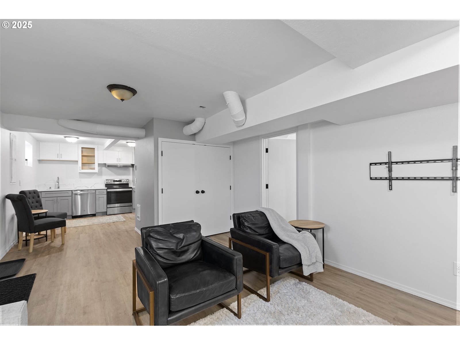 Assumable Mortgage. Two is better than one—especially in this beautifully updated Craftsman home offering two distinct and completely separate living spaces within walking distance to downtown Camas, Washington. Zoned mixed-use commercial/residential, this charming home is ideal for multi-generational living, rental income, or future development. The main level features soaring ceilings, a bright kitchen, spacious living and dining areas, two bedrooms, and a full bathroom. Refinished original hardwood floors and Vertical picture windows add timeless character and warmth. The lower-level living space has its own exterior entrance, two additional bedrooms, a bathroom, updated electrical, and a kitchen with new custom shaker cabinetry and pantry—perfect for guests, tenants, or extended family.The upstairs can be sold fully furnished for a turnkey Airbnb setup, offering immediate income potential. Upgrades include: new garage and repoured foundation (2014), full basement electrical/plumbing/framing (2014), attic insulation (2020), landscaping and hardscaping (2021), garage subpanel + 3" drain and RV septic hookup (2021), upstairs kitchen remodel (2023), and basement kitchen/flooring (2025). Roof restoration (2025) comes with a transferrable 3-year warranty. Fresh interior paint (2024) and exterior paint (2025), plus updated electrical outlets, add peace of mind. No front parcel setbacks and unlimited vertical build limit—City of Camas confirms one-bed/one-bath ADU allowed above garage (buyer to verify all uses). Just blocks from downtown Camas, Lacamas Lake, trails, and top-rated Camas schools. Whether you're looking for a duplex, an income-producing property, or a forever home with flexible space—this one checks all the boxes.