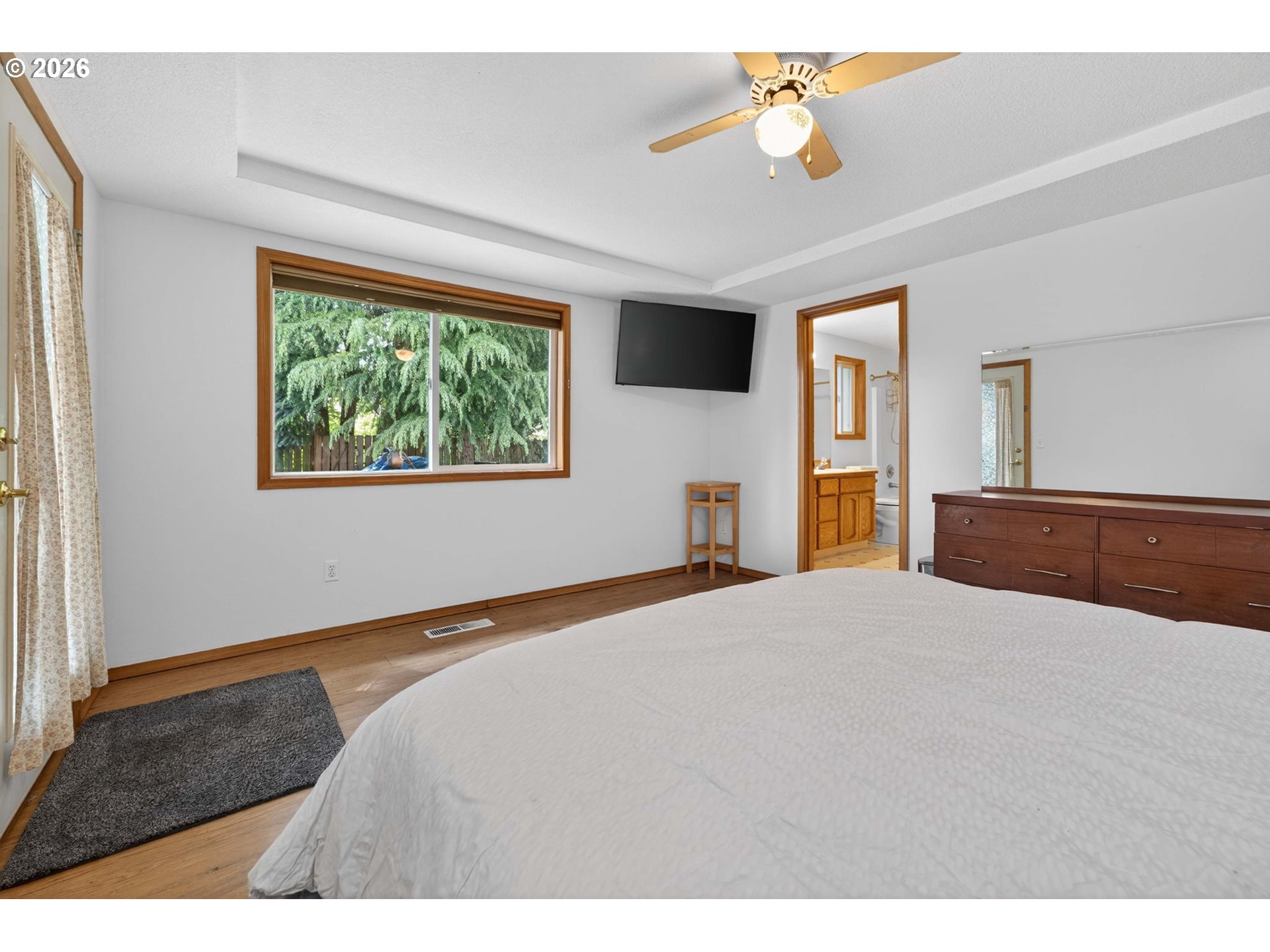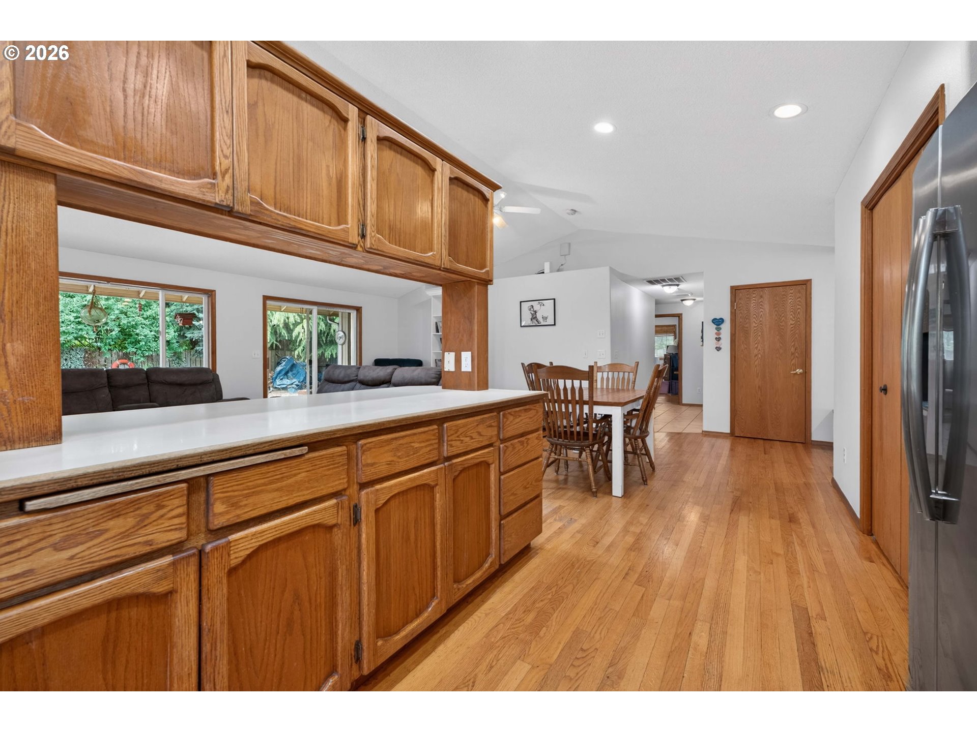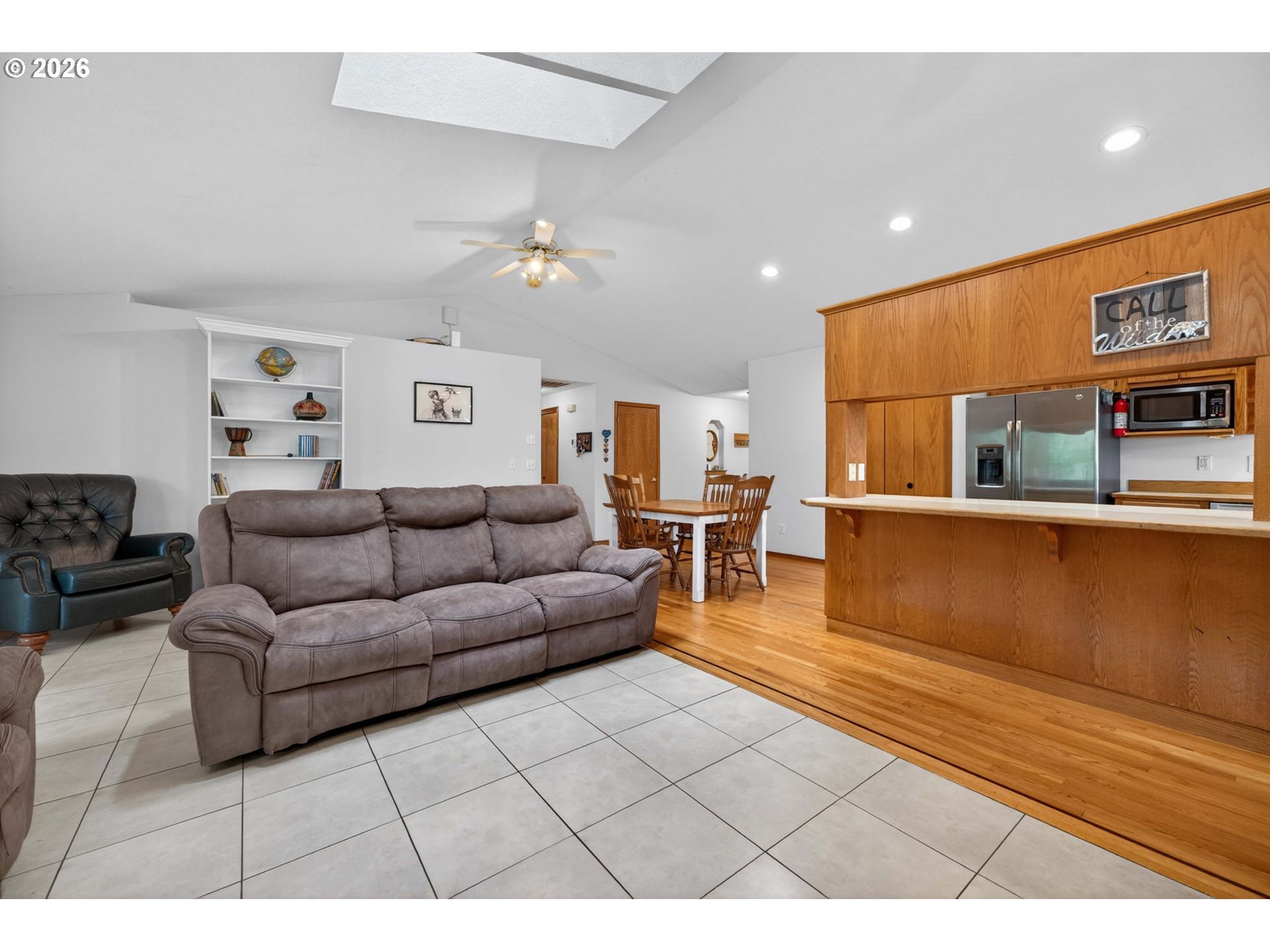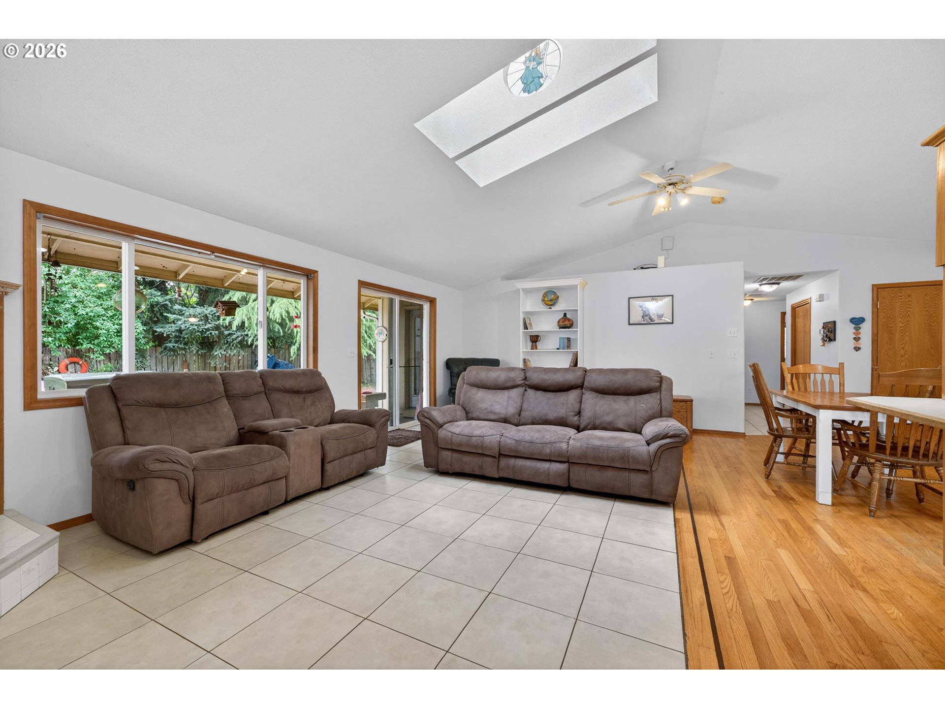 Spacious 3-bedroom + office/den, 2-bath ranch home offering 1,786 sq ft of comfortable living space, tucked away in a cul-de-sac! Vaulted ceilings and skylights fill the home with natural light, while the great room features a cozy wood-burning fireplace. Interior laundry room adds everyday convenience. A newer metal roof offers peace of mind and long-lasting durability.Private primary suite includes its own exterior door to the covered back patio, double sinks, tub/shower combo, and a nicely sized walk-in closet.Enjoy the fenced backyard with covered patio, outdoor firepit, mature trees for privacy, raised garden beds, and fruit trees. Apple, Fig, Cherry, Pear, and Blueberry Bushes. A wonderful blend of comfort, charm, and outdoor living!