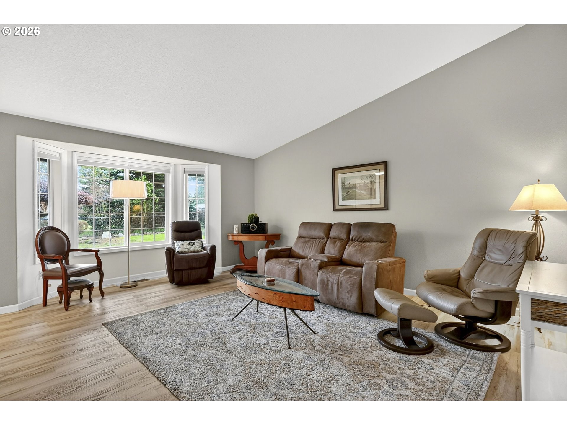 Welcome to a beautifully elevated, conveniently located single-level home that seamlessly blends style, functionality, and gracious living spaces. This residence has been thoughtfully refreshed with more than $50,000 in recent modern improvements including new cabinetry, quartz countertops, a stylish backsplash, and durable luxury vinyl plank flooring throughout, along with a new furnace and A/C, LeafGuard gutters, new garage door, fresh interior and exterior paint. Inside, vaulted ceilings and a light, neutral palette create an open, airy atmosphere filled with natural light. The kitchen flows effortlessly into the dining area and is well suited for both everyday living and entertaining, featuring stainless steel appliances, ample storage, and a charming coffee nook. Set back on a private flag lot off a quiet cul-de-sac, the home offers a welcome sense of privacy while remaining conveniently close to I-205 and Padden Parkway, with easy access to shopping, dining, and nearby parks.