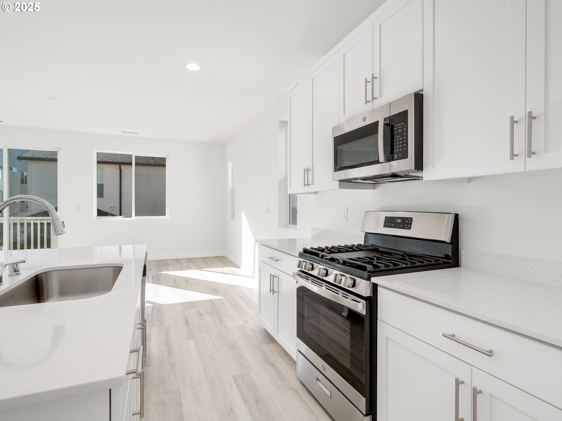 Dishwasher, Disposal, FreeStandingGasRange, Island, Microwave, Pantry, PlumbedForIceMaker, Quartz, Stainless