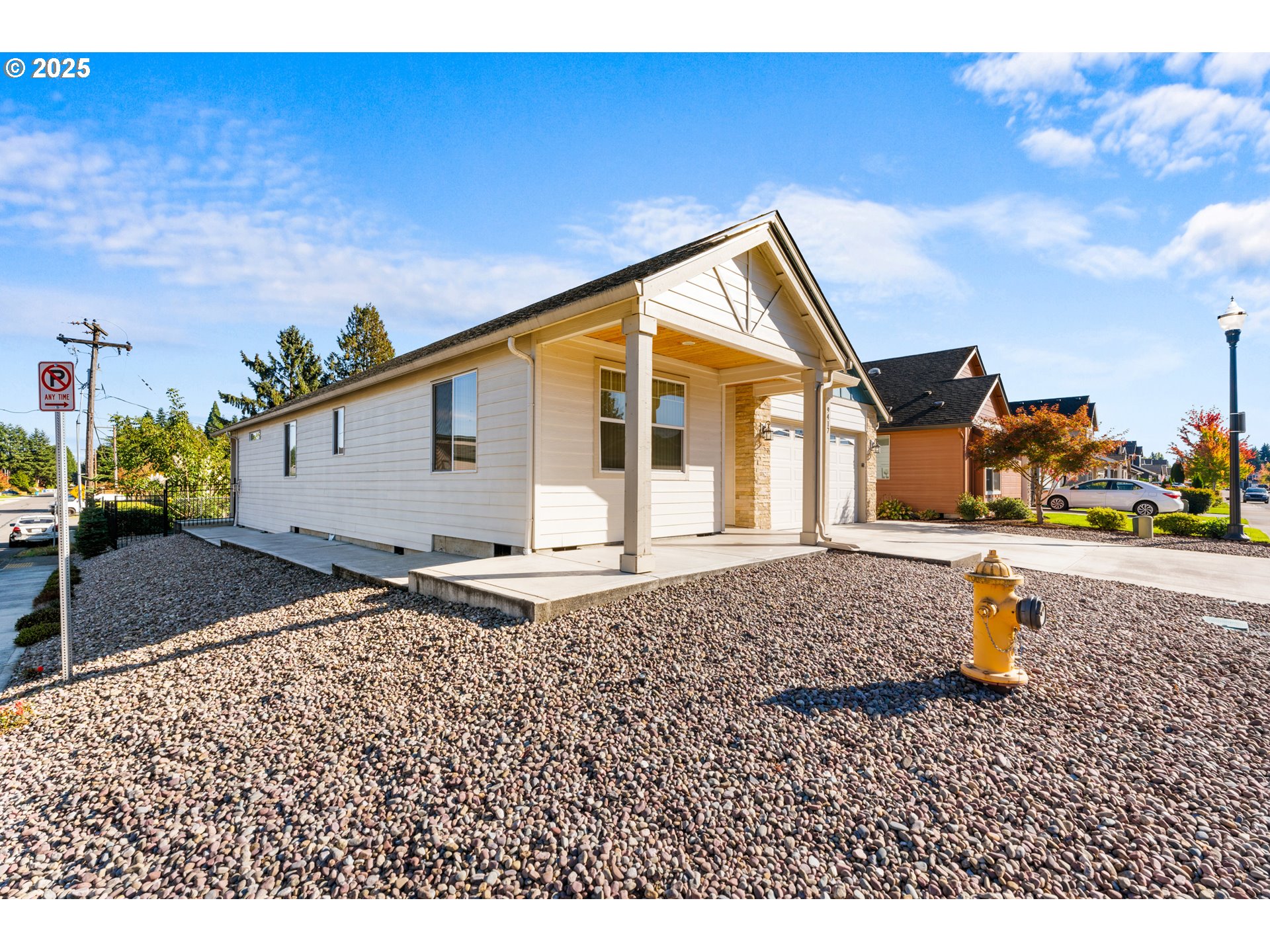 Welcome to this beautifully maintained one-level home on a desirable corner lot!Built in 2016, this 3-bedroom, 2-bathroom home offers 1,778 sq. ft. of comfortable living space. Enjoy REAL hardwood flooring throughout, a spacious family room with vaulted ceilings, and a cozy gas fireplace. The open-concept kitchen features stainless steel appliances and plenty of counter space, perfect for cooking and entertaining. The primary suite includes a luxurious ensuite bath with heated tile floors for year-round comfort. Step outside to a fully fenced, low-maintenance backyard with a large covered patio, ideal for entertaining. Conveniently located just minutes from shopping and dining. Only a 15-minute drive to PDX International Airport. No HOA and rentals are allowed!