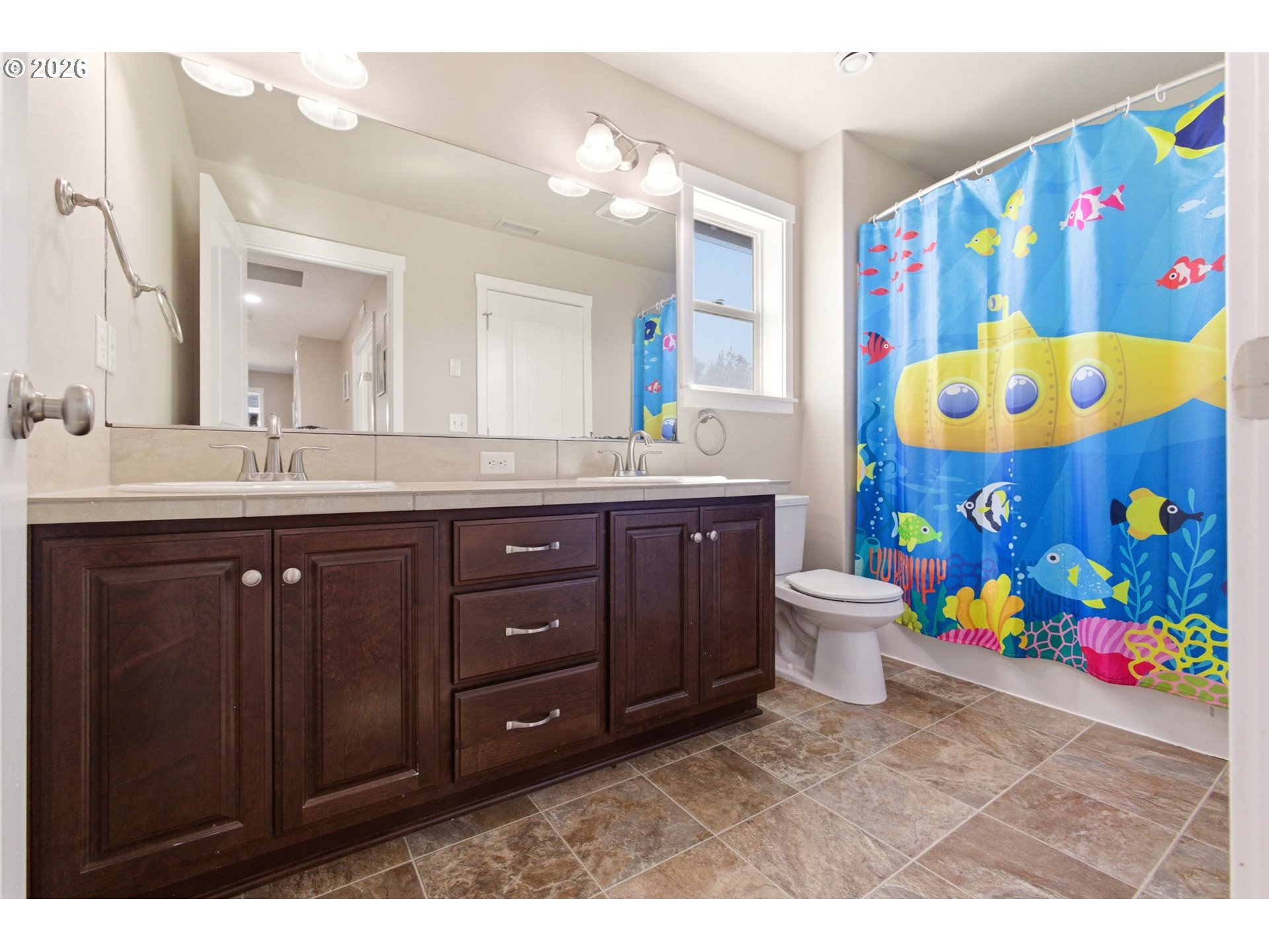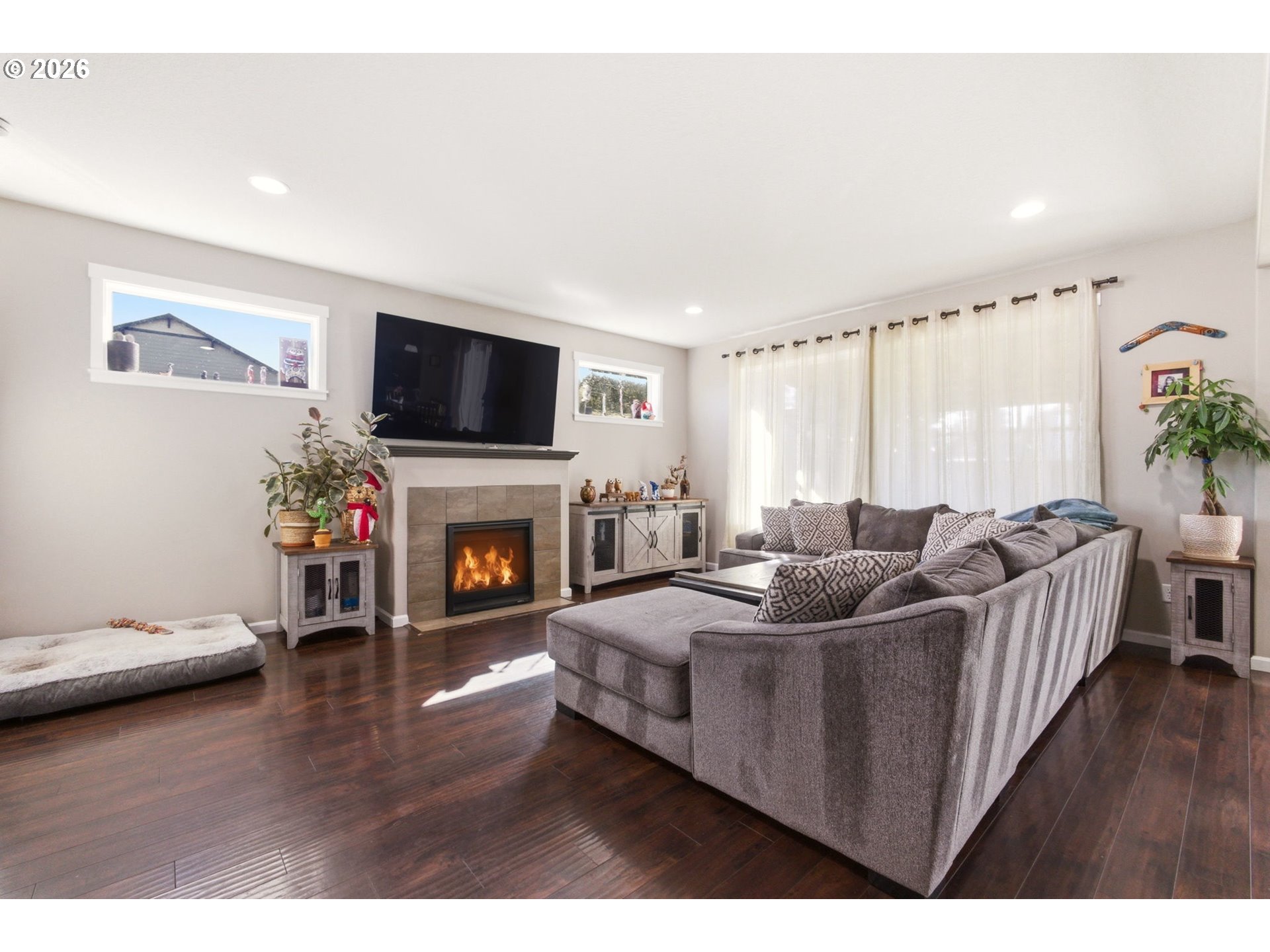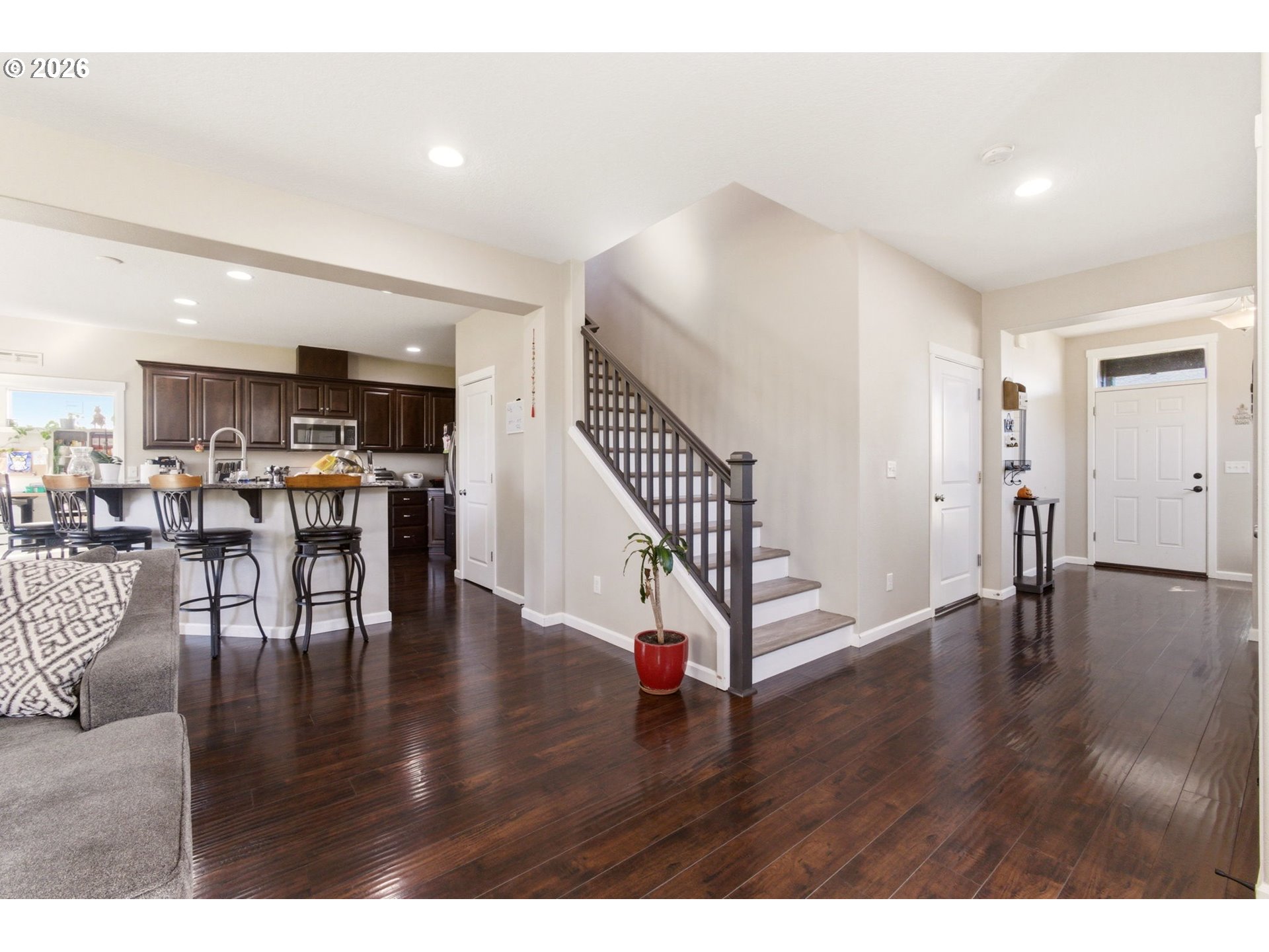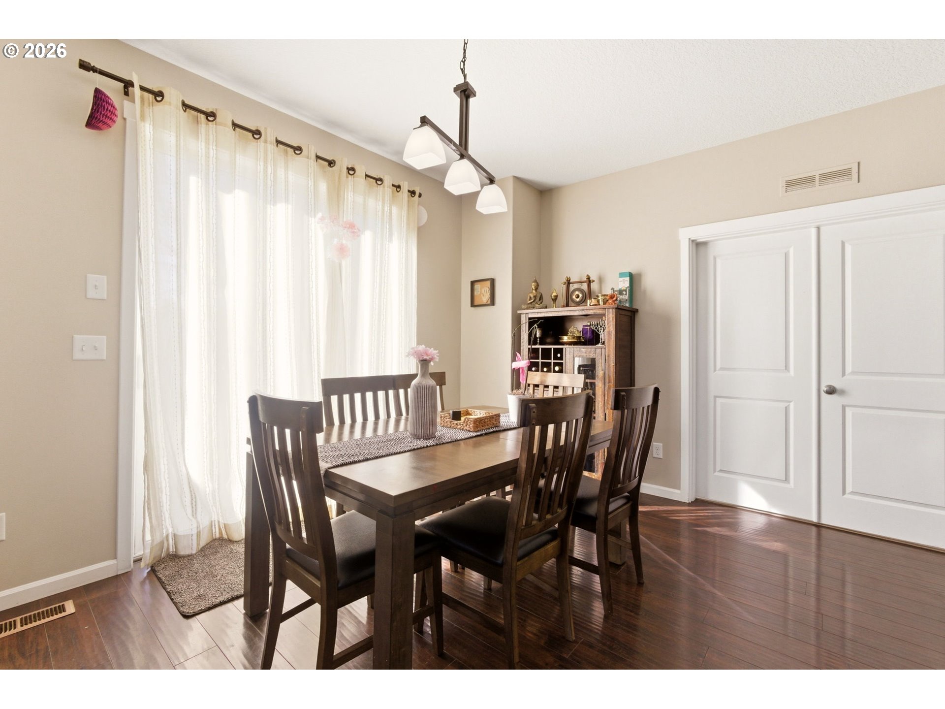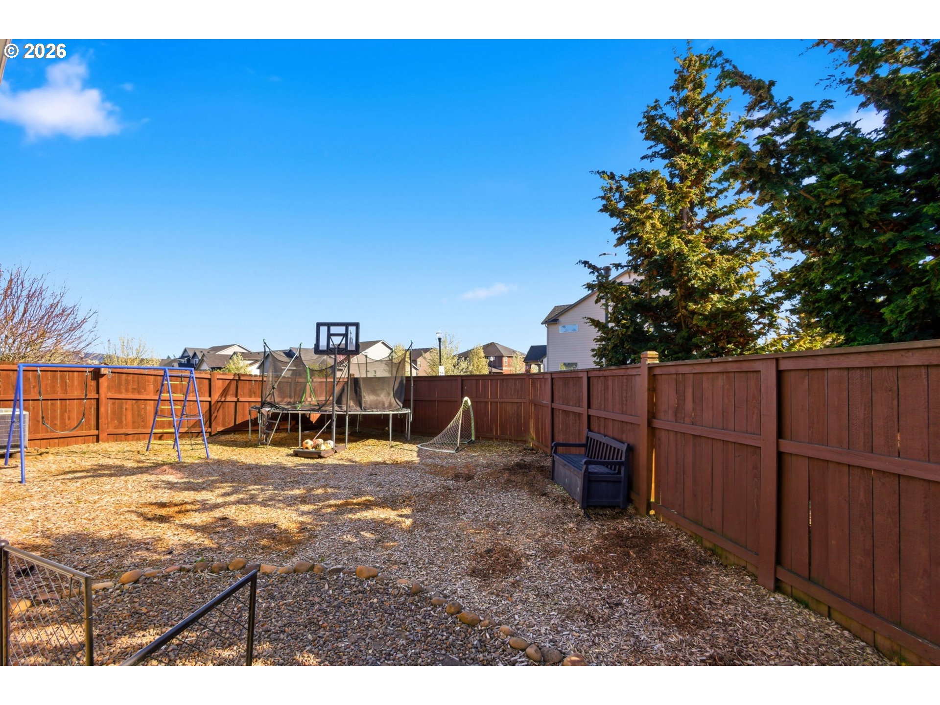 Tucked on a desirable corner lot with only one shared property line, this home offers a rare sense of privacy with a fully fenced backyard made for everyday living and entertaining. Step inside to a warm and inviting living room with a cozy fireplace that flows intop the kitchen, featuring stainless steel appliances and a convenient eat bar. The dining area sits just off the kitchen, with sliding doors that open to a partially covered patio for easy indoor/outdoor living. The main level also includes a versatile office/bonus room with its own attached bathroom, ideal for guests, working from home, or multi generational living. Upstairs, you will find four bedrooms, including a spacious primary suite with double sinks and a large soaking tub. With newer luxury vinyl plank flooring and fresh paint throughout, this move in ready home combines comfort and style. A three-car garage and a location with convenient access to parks, schools, shopping, and commuter routes make it as practical as it is inviting. Schedule your showing today!