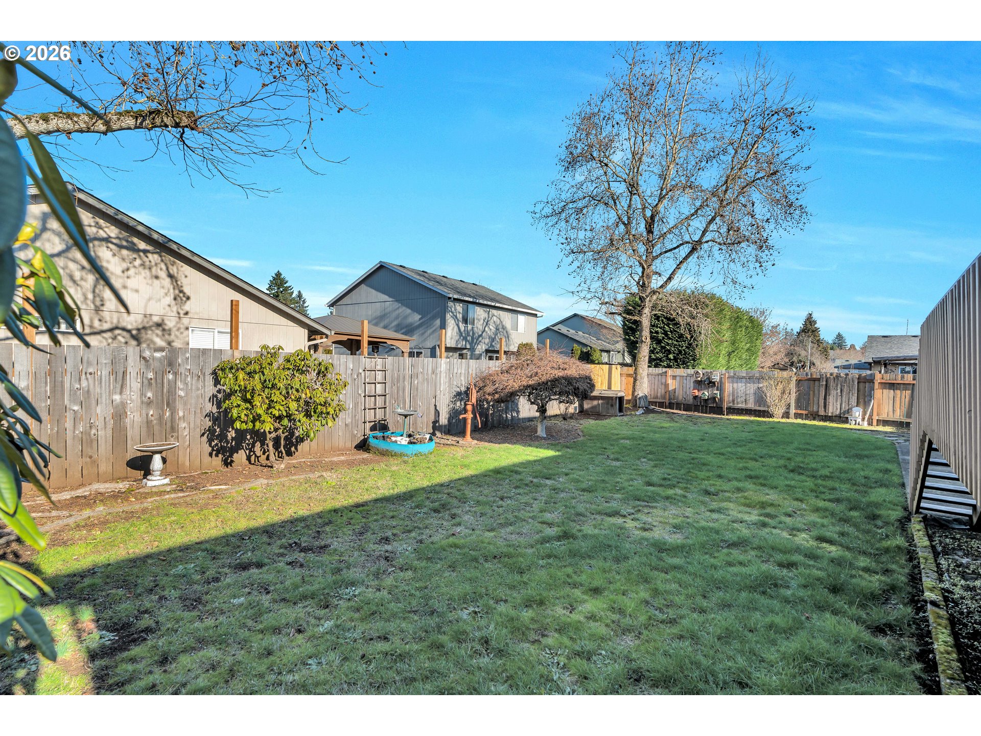 (503) 893-8874Open house has been canceled. Received multiple offers reviewing at 12 PM.Spacious three-level home with minimal steps, offering 4 bedrooms and 3 full baths with a flexible layout ideal for today’s living. Laminate flooring runs through the main living areas, where soaring vaulted ceilings and an open-concept design create a bright, airy feel. The main level features a welcoming living room with a fireplace and bay window, seamlessly connected to the kitchen and dining area.The expansive kitchen includes an island with eat bar and abundant counter space, opening directly to the dining room with French doors that lead to a generously sized back deck—perfect for entertaining or outdoor dining.Upstairs, you’ll find three bedrooms with wall-to-wall carpet, including one with an ensuite bath and another extra-spacious bedroom featuring French doors. A full laundry room adds everyday convenience.The lower level offers an additional carpeted room with sliding glass doors to the back patio and backyard, ideal for a guest suite, home office, or bonus living space. Outside, enjoy a large, fully fenced backyard with plenty of room to relax, play, or garden.