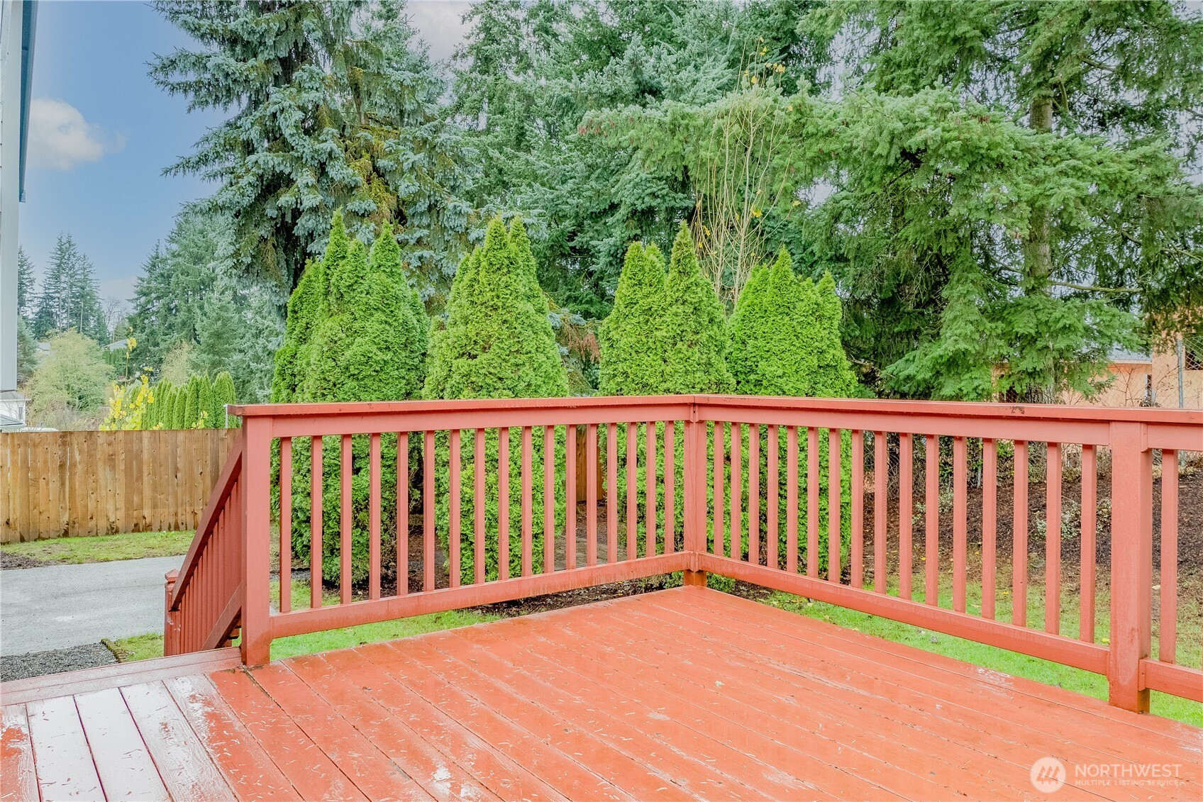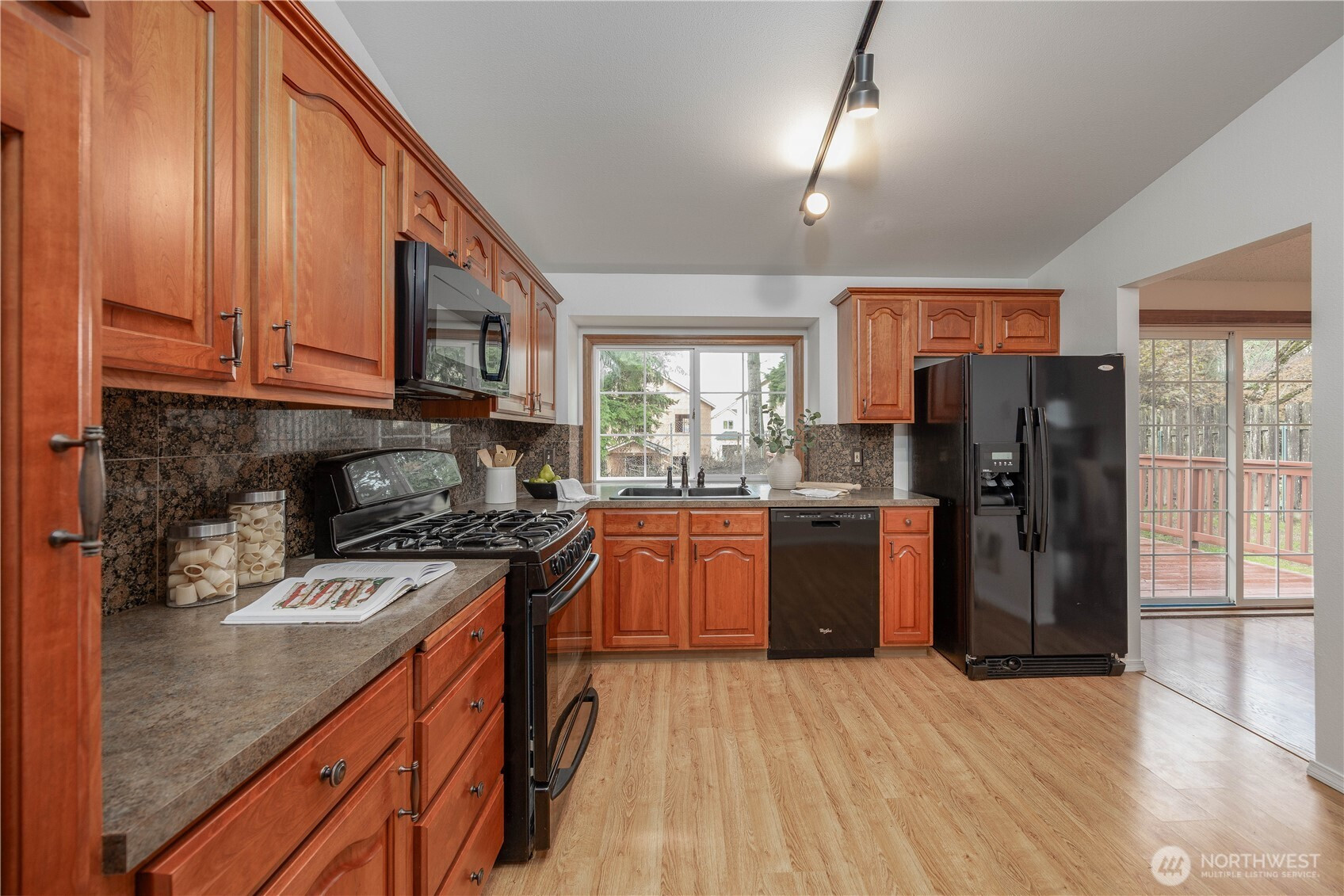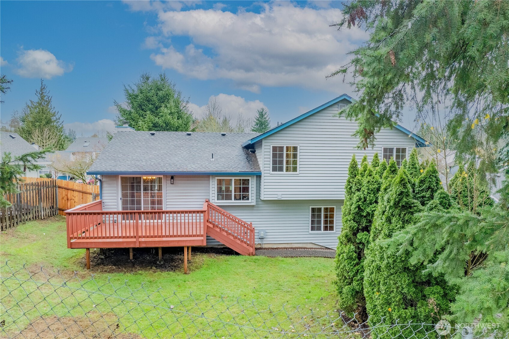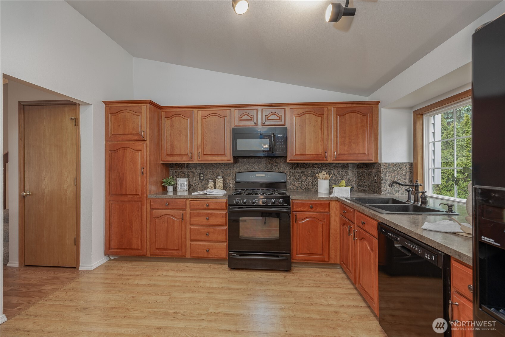 Fresh updates and move-in ready! This well-cared for home is nestled on a cul-de-sac in an established, tree-lined neighborhood. With vaulted ceilings and generous sized windows, natural light fills the main level. Gorgeous laminate flooring flows throughout the main level. The kitchen offers modern convenience with gas cooktop and all appliances included. A dedicated dining area is perfect for hosting. Vaulted primary suite with walk-in closet and private bath. Daylight basement provides flex space for work, play, or guests. Outside a large fenced yard complete with a deck, garden area, and storage shed. Recent major system updates to the HVAC (2024), roof cleaned (2025), fresh paint & new carpet (2025). Turn key & ready to call home.