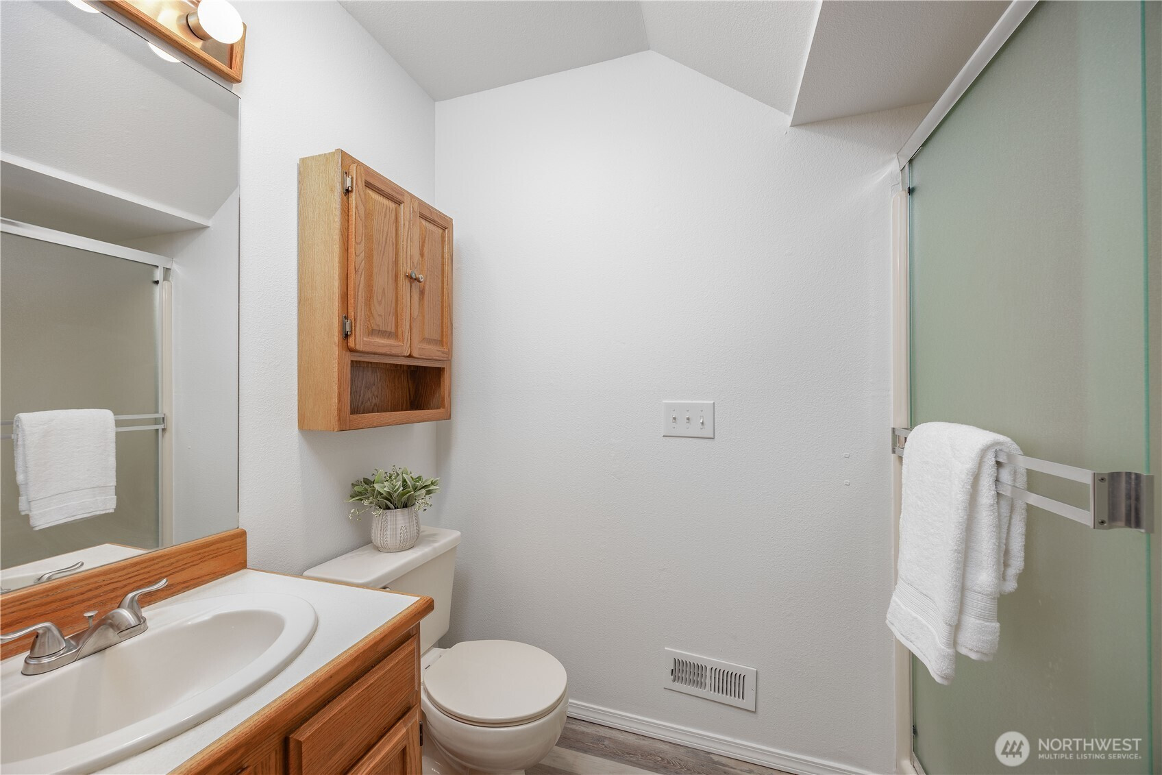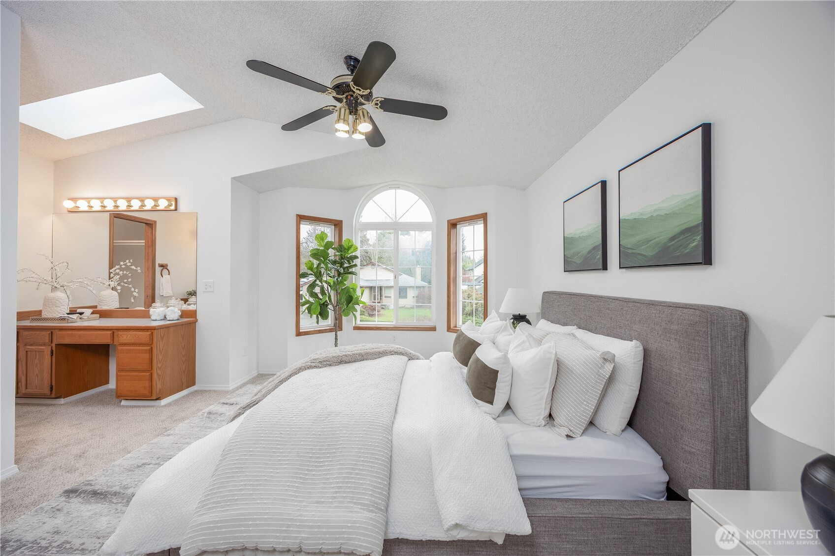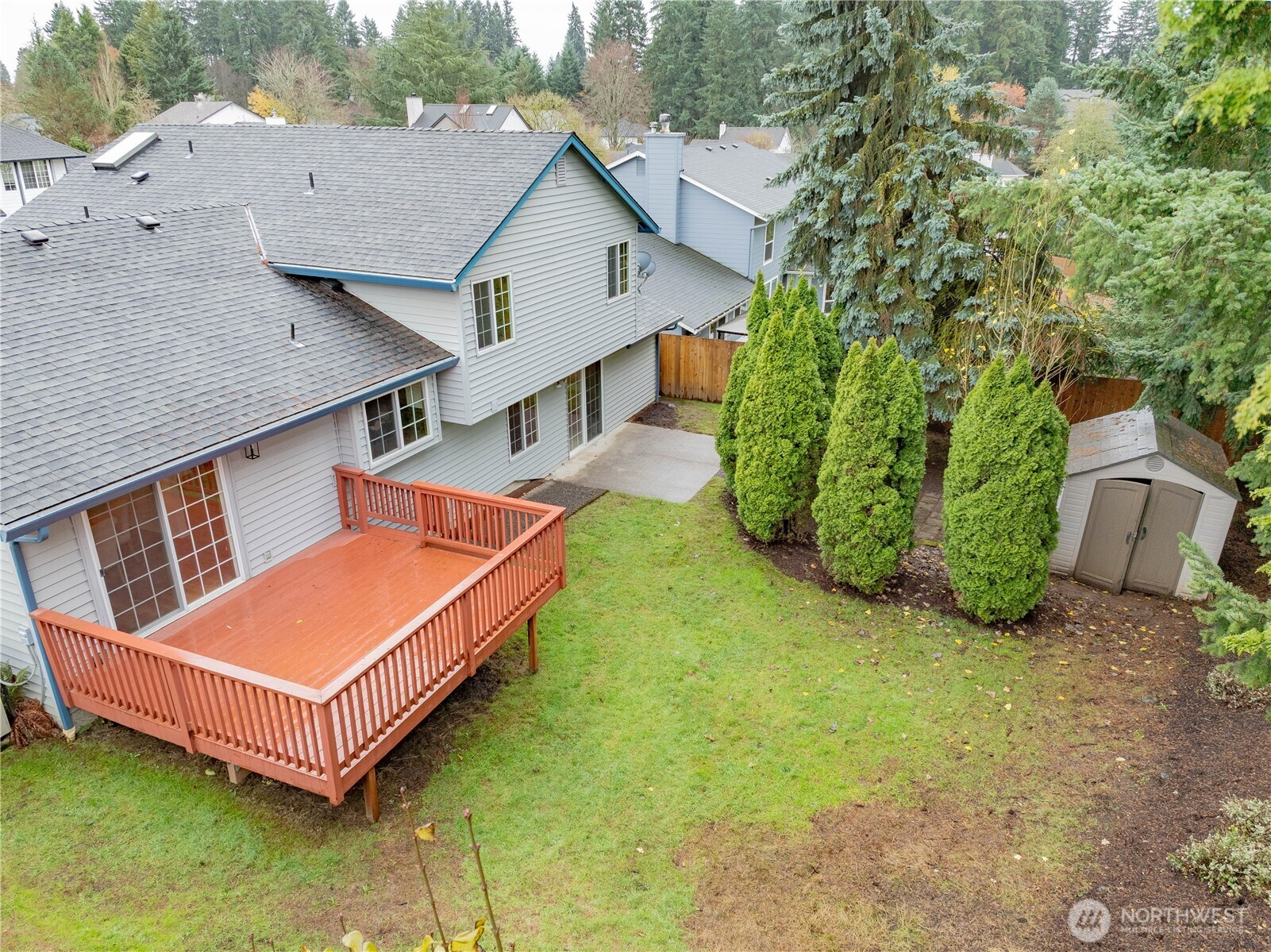 Fresh updates and move-in ready! This well-cared for home is nestled on a cul-de-sac in an established, tree-lined neighborhood. With vaulted ceilings and generous sized windows, natural light fills the main level. Gorgeous laminate flooring flows throughout the main level. The kitchen offers modern convenience with gas cooktop and all appliances included. A dedicated dining area is perfect for hosting. Vaulted primary suite with walk-in closet and private bath. Daylight basement provides flex space for work, play, or guests. Outside a large fenced yard complete with a deck, garden area, and storage shed. Recent major system updates to the HVAC (2024), roof cleaned (2025), fresh paint & new carpet (2025). Turn key & ready to call home.