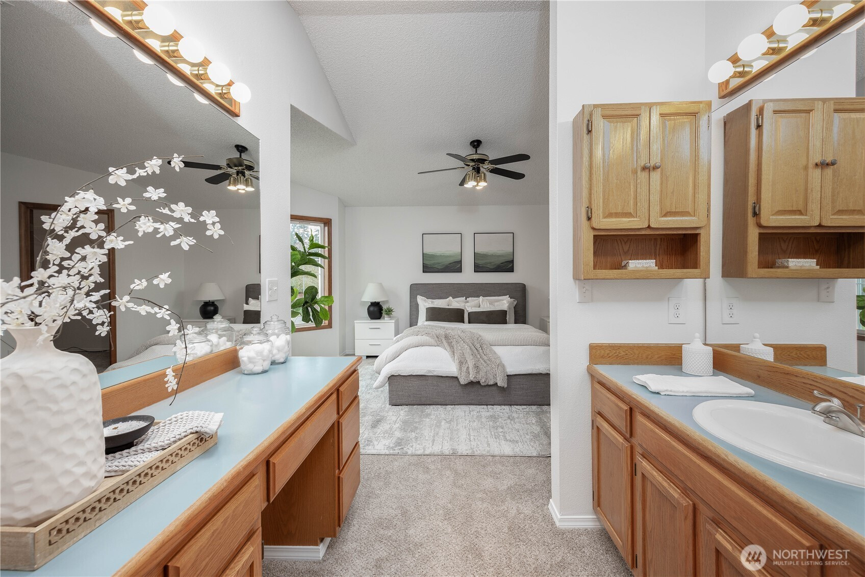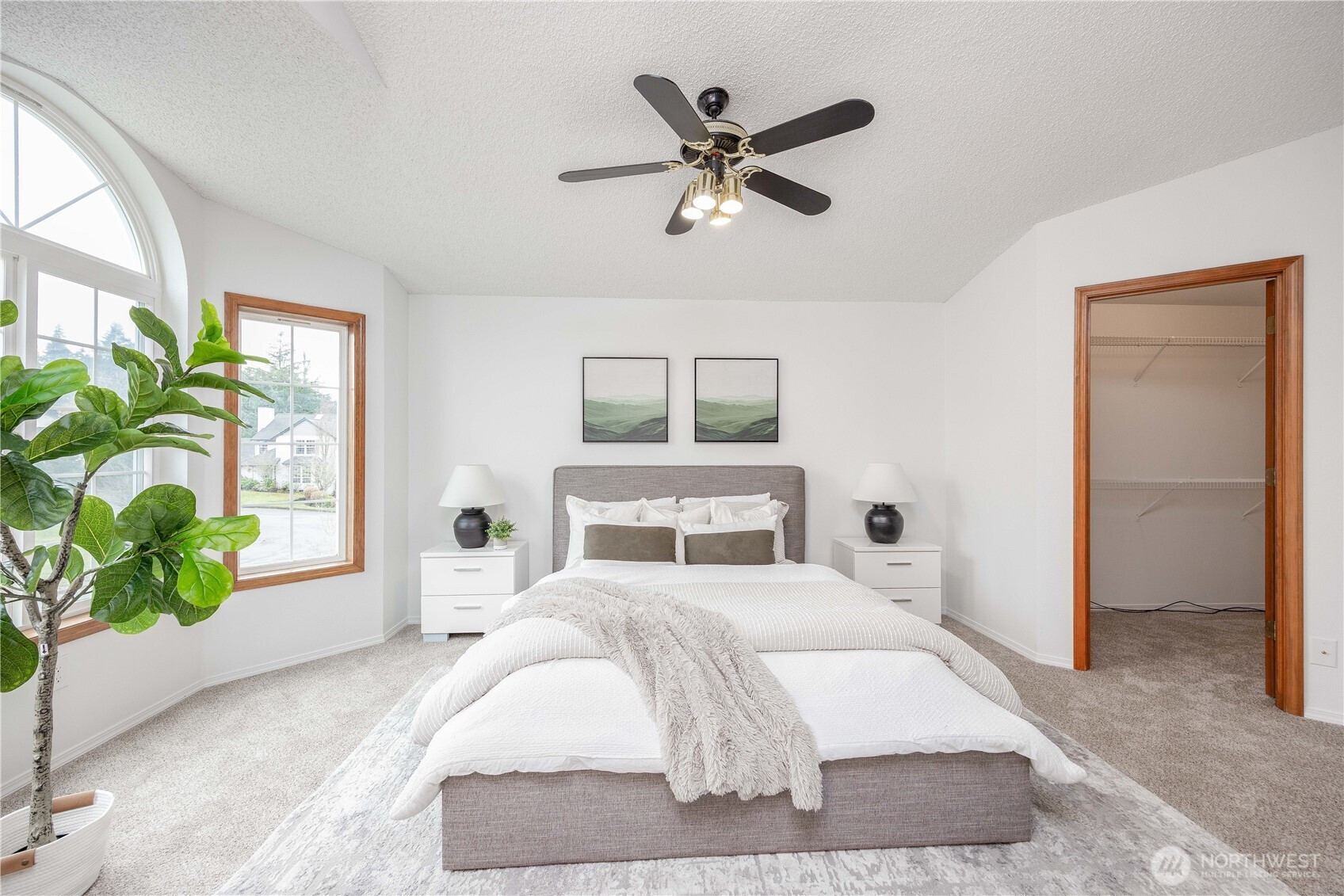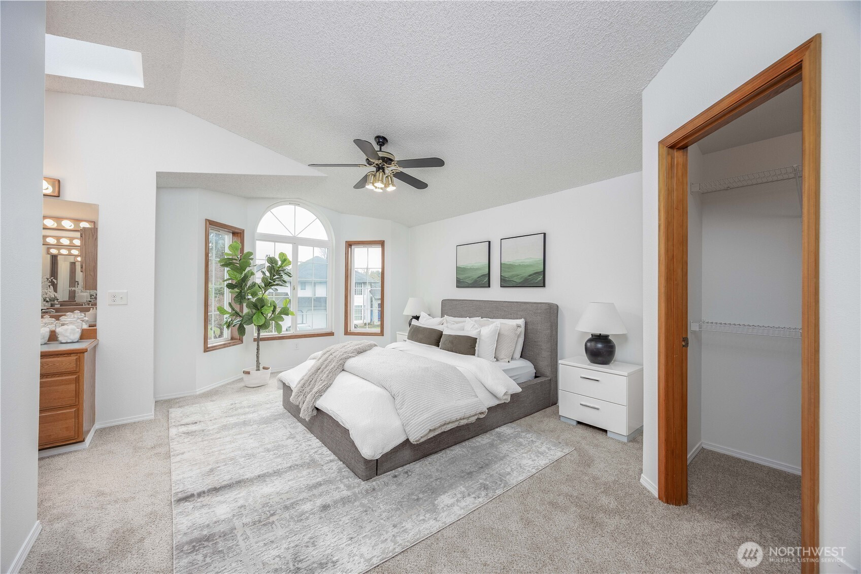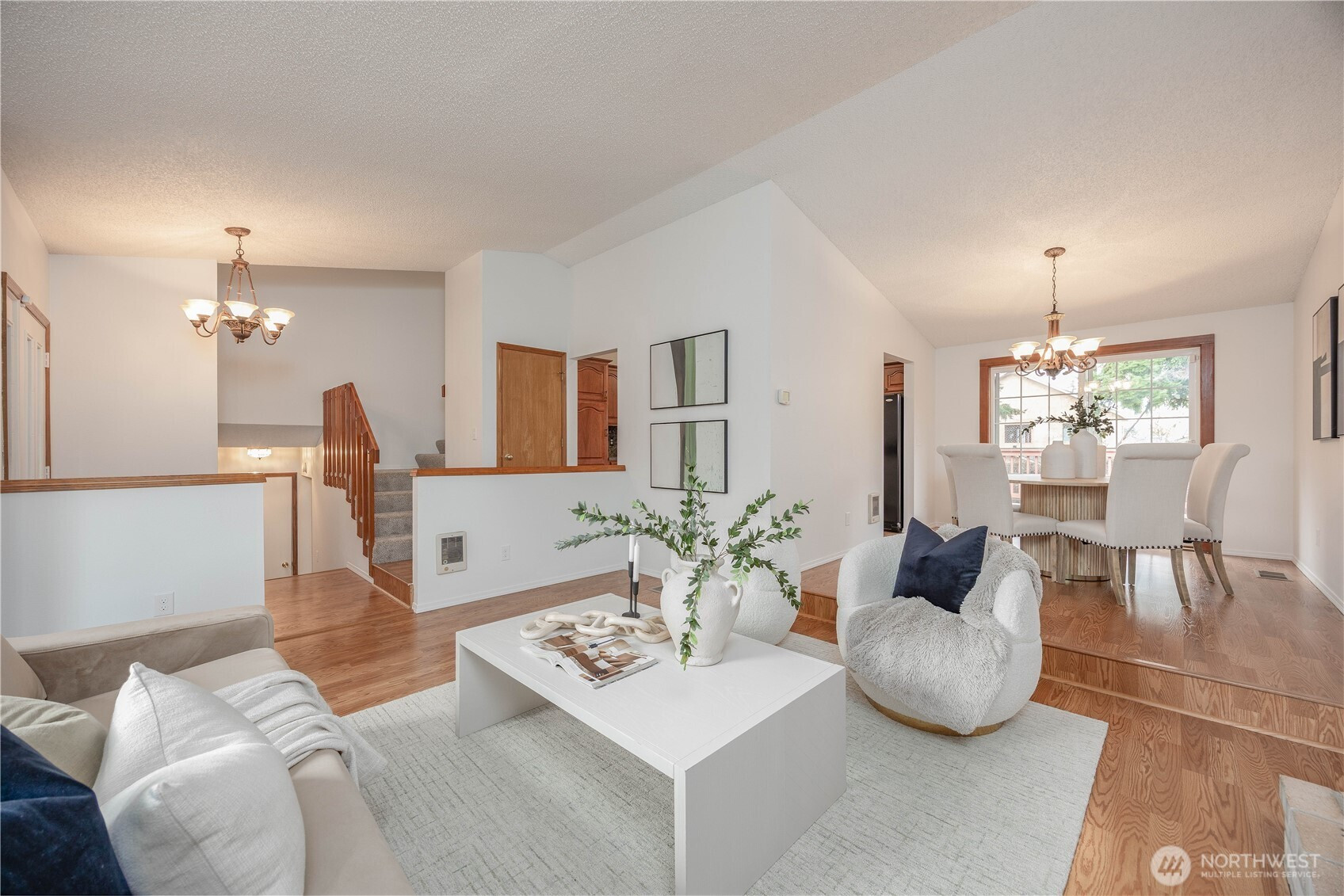 Fresh updates and move-in ready! This well-cared for home is nestled on a cul-de-sac in an established, tree-lined neighborhood. With vaulted ceilings and generous sized windows, natural light fills the main level. Gorgeous laminate flooring flows throughout the main level. The kitchen offers modern convenience with gas cooktop and all appliances included. A dedicated dining area is perfect for hosting. Vaulted primary suite with walk-in closet and private bath. Daylight basement provides flex space for work, play, or guests. Outside a large fenced yard complete with a deck, garden area, and storage shed. Recent major system updates to the HVAC (2024), roof cleaned (2025), fresh paint & new carpet (2025). Turn key & ready to call home.