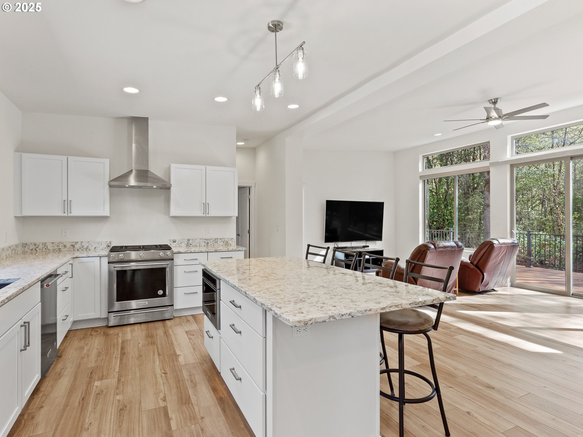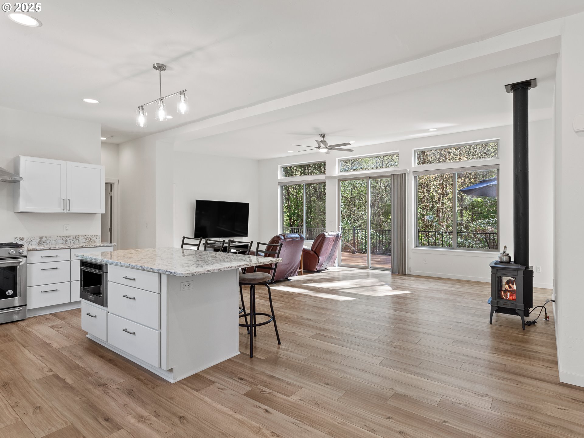 (503) 893-8874A true must see! This ADA accessible one level home sits on 9.11 acres just minutes from downtown Battle Ground! Enjoy cleared horse trails, upscale finishes, and a chef’s kitchen with microwave drawer, gas stove, and premium appliances. The living room features a propane fireplace, and luxury laminate flooring flows throughout the entire home. A separate laundry room adds convenience. Out back, a large deck with sleek steel railings spans the length of the home—perfect for entertaining or soaking in the views. Don't miss the Drone/Video Tour!