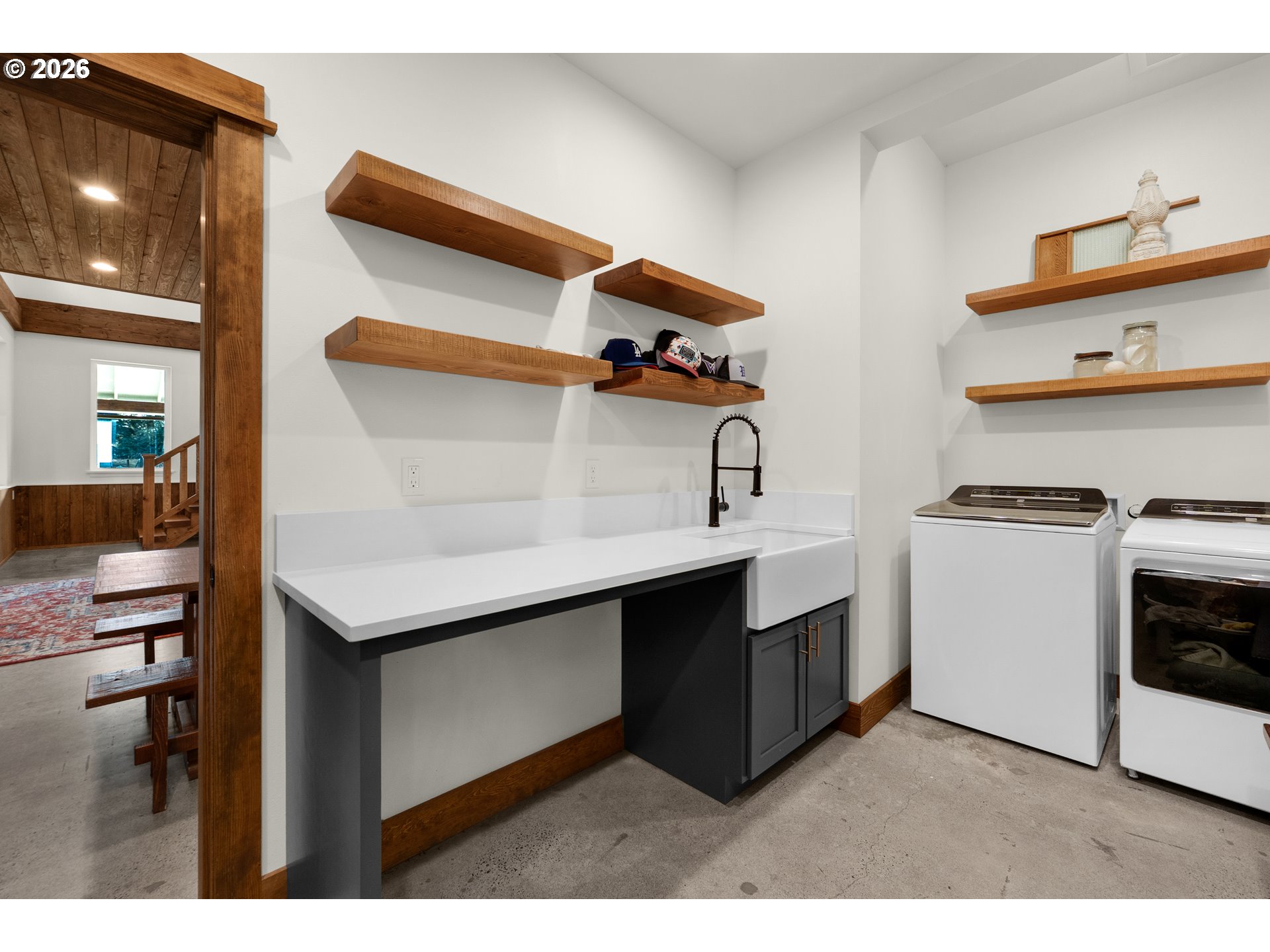 CeilingFan, ConcreteFloor, HighCeilings, Laundry, Quartz, SoakingTub, TileFloor, WalltoWallCarpet, WasherDry