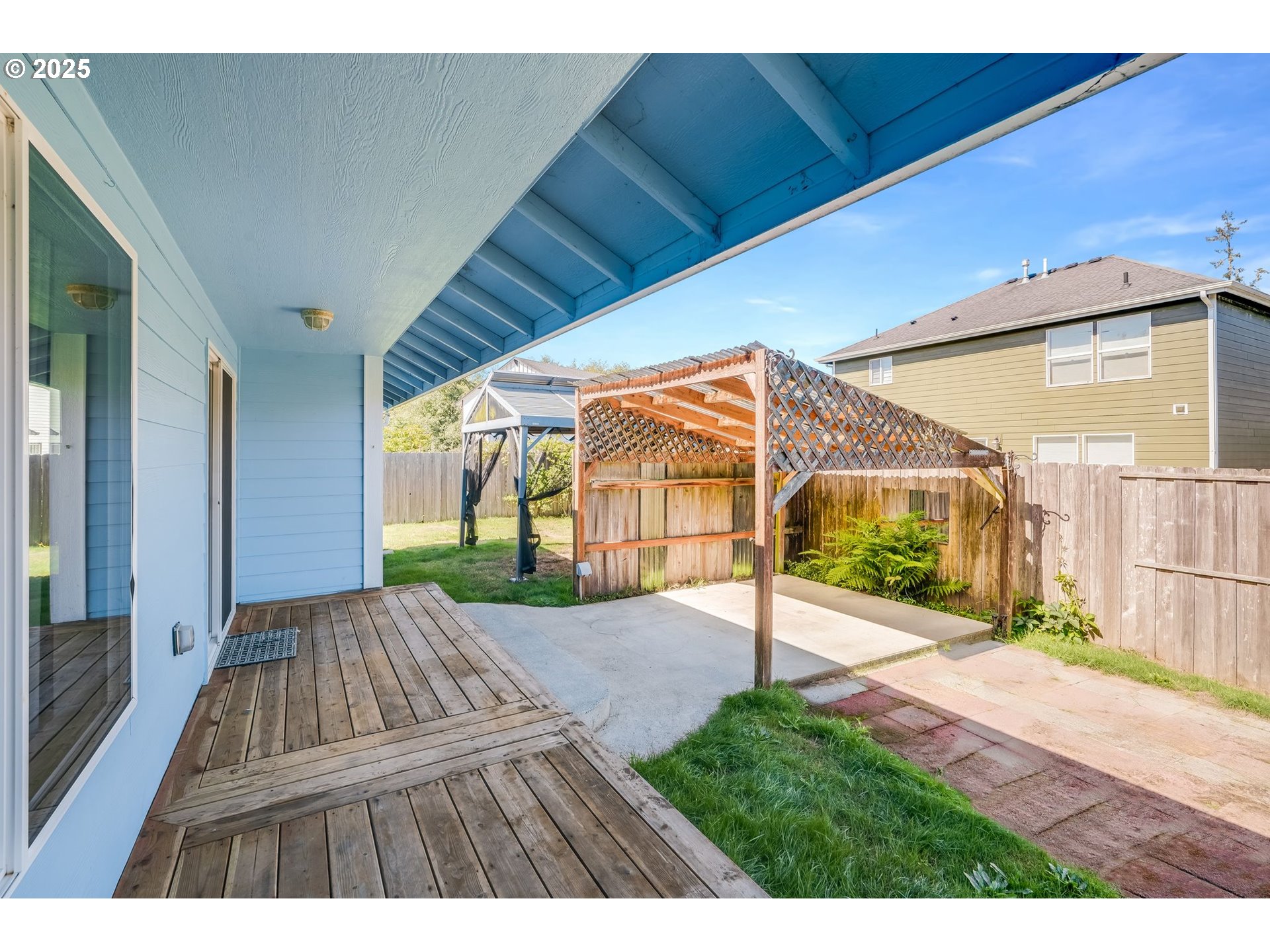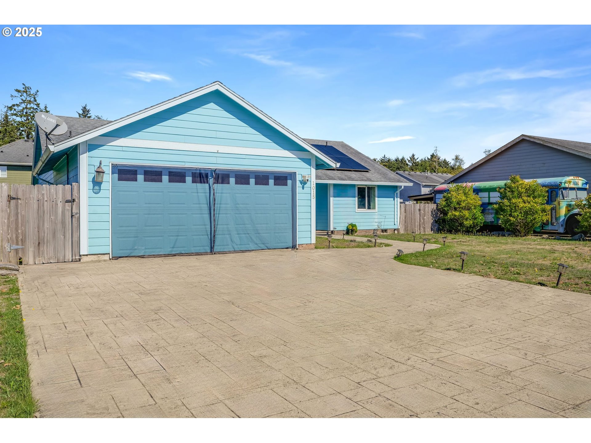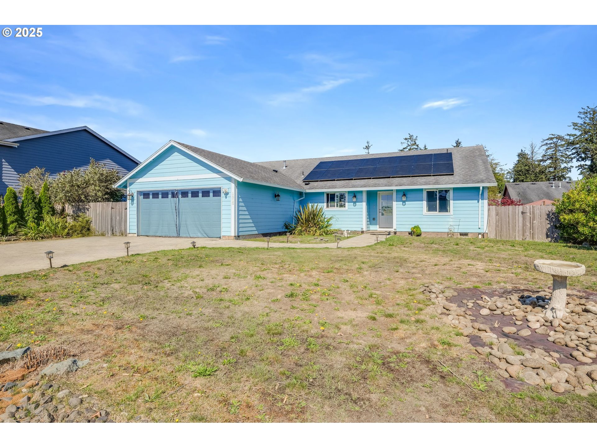 This updated single-level home built in 2012 offers an incredible value with an assumable 2.5% FHA or VA loan and a fully owned solar system! Contact Broker for full loan details.This home is perfectly positioned in the sought-after Candy Park subdivision, providing easy access to the best of the Oregon Coast. You're just a short drive from the rugged beauty of Fort Stevens State Park, miles of serene ocean beaches, and all the conveniences of Warrenton’s shopping, diverse restaurants, and cozy coffee shops.Step inside and be greeted by an inviting open-concept great room, where a stunning, renovated kitchen takes center stage. The expansive island with an eat-bar is perfect for entertaining, complemented by sleek stainless steel appliances. The flow from the kitchen to the living and dining areas is seamless, featuring laminate floors and modern designer lighting that create a warm, contemporary feel. The home's layout is thoughtfully designed for privacy, with the tranquil primary suite—complete with a full bath with dual sinks and a walk-in closet—on one side and two additional guest bedrooms and a full bath on the other. A convenient laundry room with a utility sink and included washer and dryer is located just off the double-car garage, making for a perfect mudroom after a day at the beach.The outdoor space is a true highlight for both relaxation and entertaining. A covered back deck and two additional covered pergolas provide ample space for summer barbecues and evening gatherings, all within a fully fenced backyard that offers privacy and security.