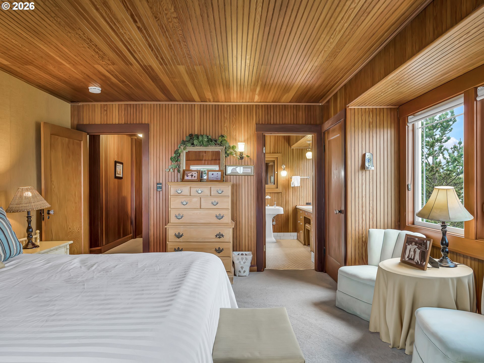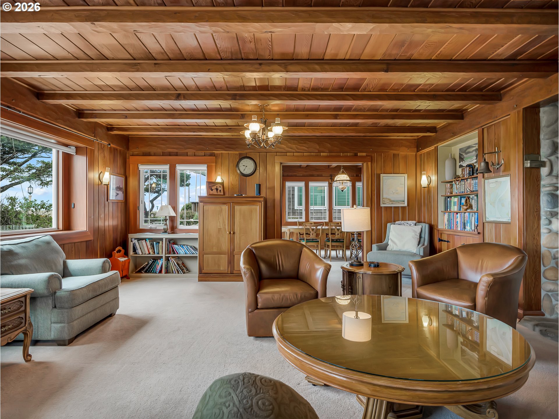 (503) 893-8874Steeped in history and craftsmanship, The Reunion House is a rare offering on Seaside’s Historic Promenade. Designed in 1926 by noted Portland architect O. M. Akers for Thomas Autzen, the pioneering industrialist and namesake of Autzen Stadium, this remarkable Arts and Crafts residence spans two lots extending from the Promenade to Beach Street. The home was thoughtfully positioned to capture sweeping views of the Pacific Ocean and Tillamook Head, with generous spaces designed for large, week-long coastal gatherings.The wood lined interior showcases remarkable period craftsmanship throughout. Hand hewn beams, a cobblestone fireplace with stone hearth and wood mantel, wrought iron spade hinges, and original built-ins reflect an era when homes were constructed with artistry and intention. The formal dining room overlooks the ocean and features corner display cabinetry, antique light fixtures, and pocket doors.The kitchen retains original cabinetry, arched doorways, stainless appliances, and a breakfast nook with built in cabinets and charming tole painted doors. A spacious main-level bedroom and hallway bath provide convenience and flexibility. Upstairs are four additional bedrooms, including a primary suite with panoramic ocean and headland views. The vintage bath features white hex tile, a pedestal sink, and built in vanity.The fourth level offers a vaulted family room with gas fireplace, sweeping coastal views, and an east facing bedroom. The basement includes vintage shower stalls, laundry, storage, and exterior access.Outside, a large concrete pebble stone patio offers a private retreat just steps from the Promenade. The east lot features a detached game pavilion with sauna and outdoor shower, along with a gazebo and hot tub. Located just four blocks from downtown and moments from the sand, this fully fenced and gated property is a true Oregon Coast legacy. The home is offered turnkey furnished and is currently managed by Seaside Vacation Homes.
