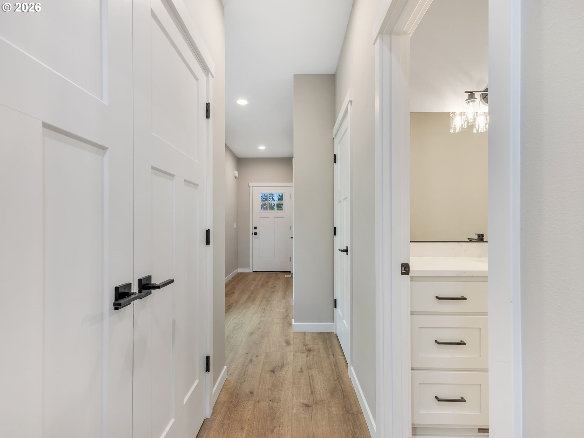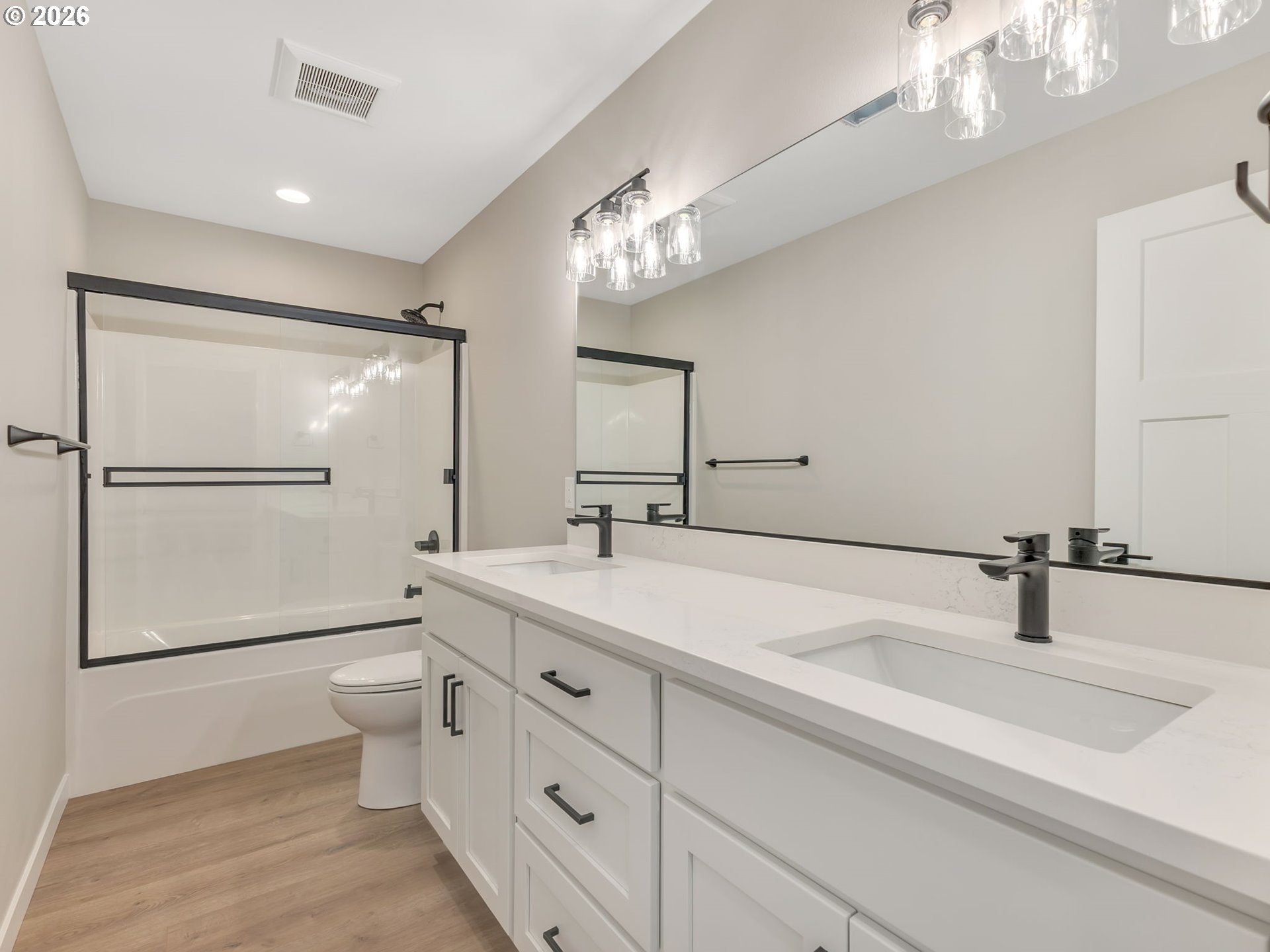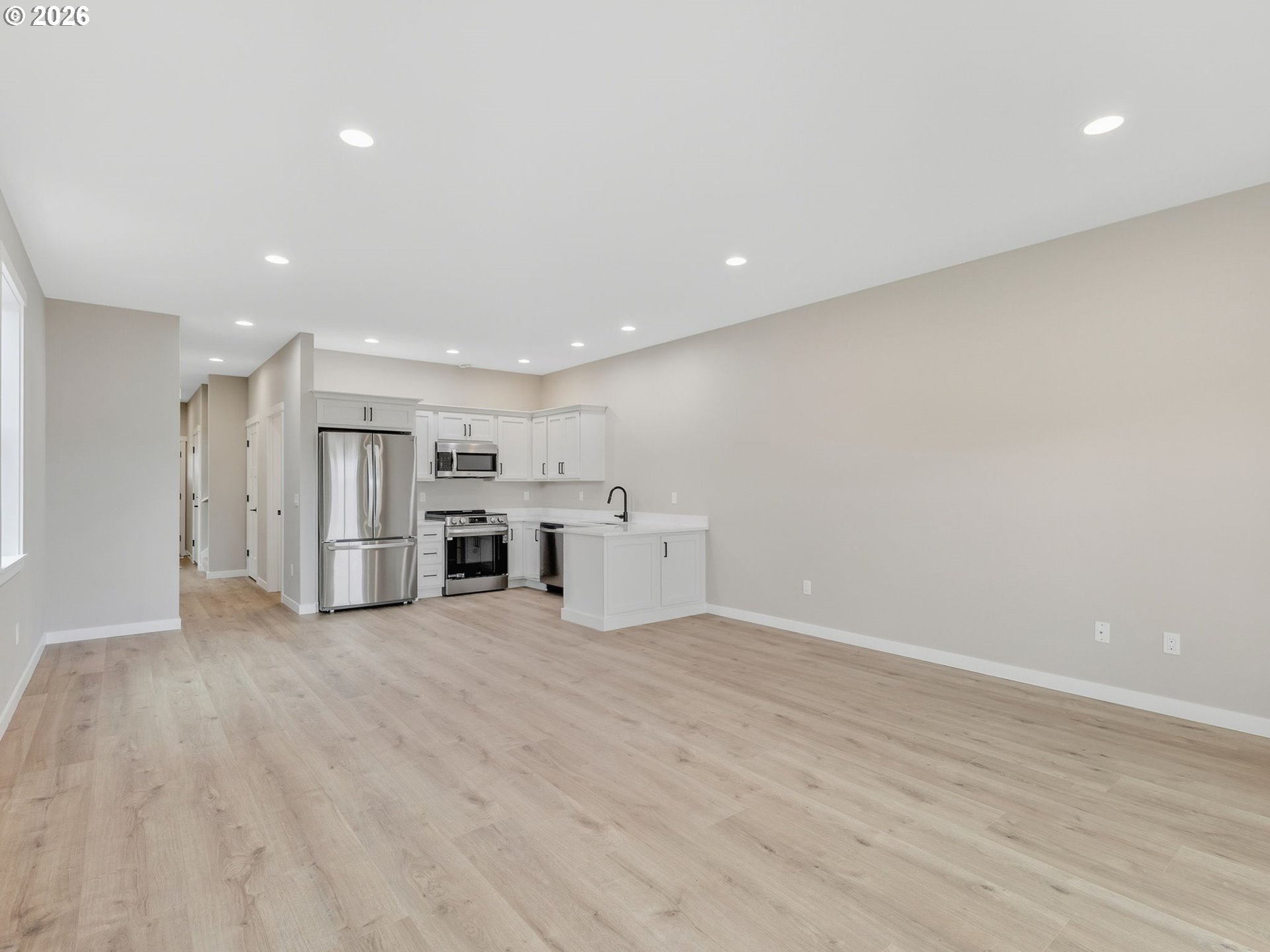 Just completed and move-in ready in Warrenton - walkable to downtown shops and dining! This brand-new 1,650 sq ft townhome offers 3 bedrooms and 2.5 baths with a bright great room floor plan and modern finishes throughout. The kitchen features white shaker cabinetry, quartz countertops, matte black hardware, a pantry, and LG stainless steel appliances. Easy-care wood-look flooring and recessed lighting keep the main level fresh and functional, with a sliding glass door that opens to a private fenced yard and concrete patio - perfect for grilling, pets, or easy outdoor living. Upstairs includes a primary suite with its own bath, plus two additional bedrooms and a full bathroom. Attached single-car garage for parking and storage.