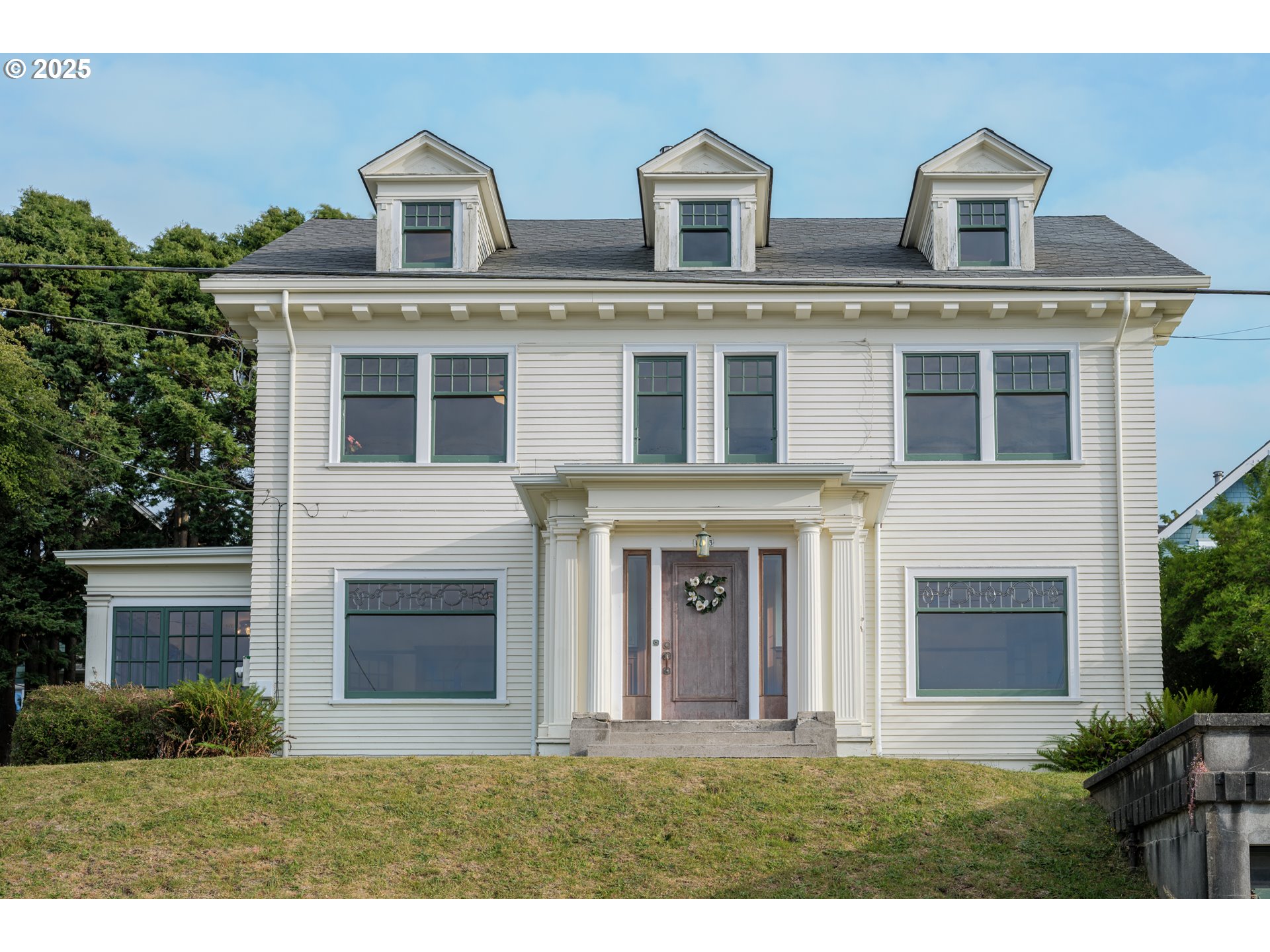 (503) 893-8874Presenting 1343 Jerome Avenue, a stunning 1916 Colonial Revival masterpiece designed by renowned architect John E. Wicks. Six bedrooms and four baths spread across three generous floors, plus full basement and connected garage. Original inlaid hardwood floors gleam throughout, while coffered plaster ceilings and picture rails showcase the era's craftsmanship. Two… yes… two solariums capture southern light year-round. A grand wood-burning fireplace anchors the living space, complemented by glass pocket doors, leaded glass windows, and built-in cabinetry in the formal dining room. Three bedrooms open to riverview balconies—imagine watching the ships roll by on the Columbia River. Period details shine: original light fixtures, art deco hardware & radiant heaters. Tucked up on a quiet residential street amongst other beautifully restored historic homes, yet just blocks from Astoria's vibrant downtown shops and riverwalk.