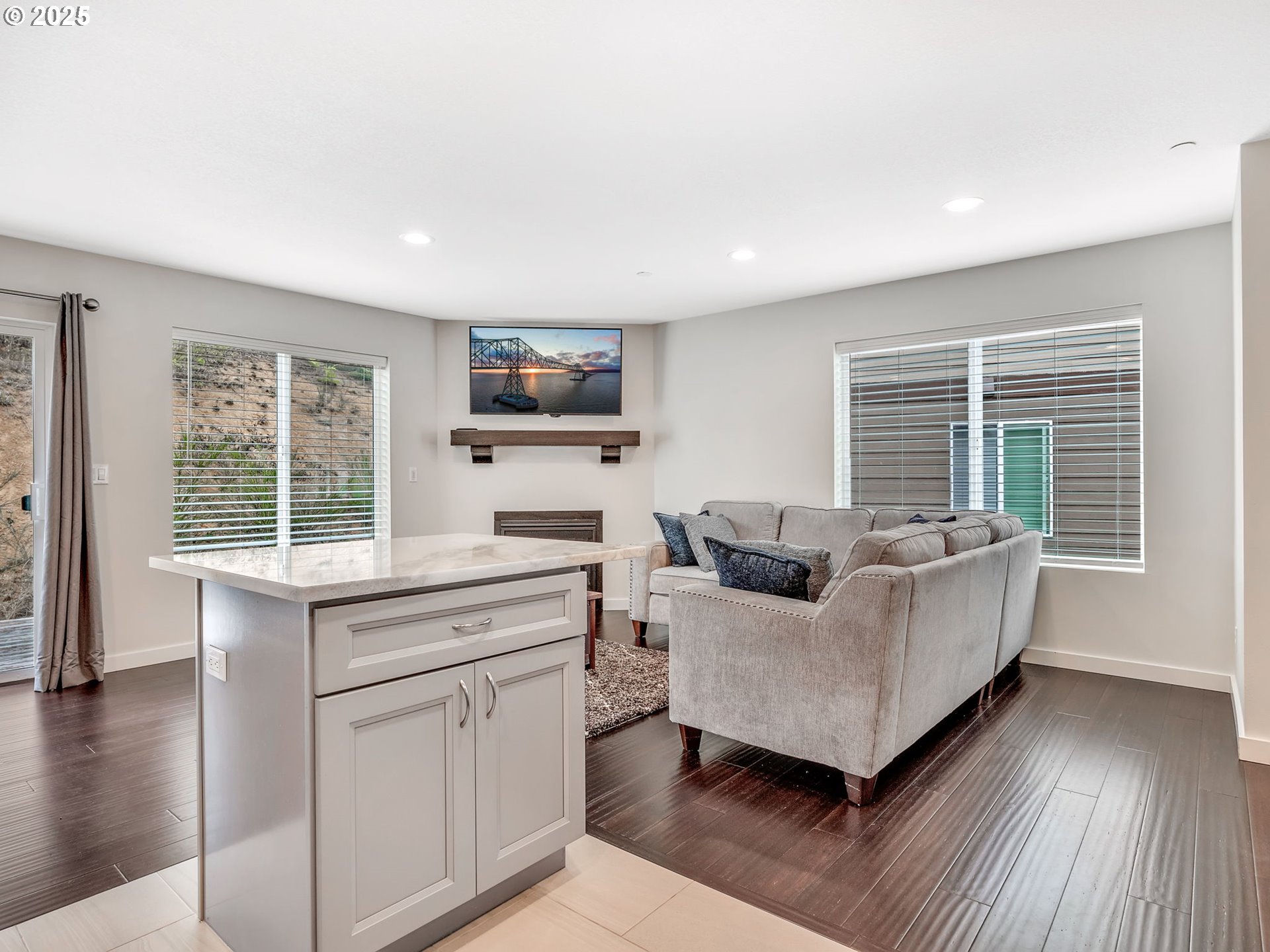 Low-Maintenance Living in a Convenient Location! Built in 2019 and very lightly lived in, this modern townhome offers the perfect blend of comfort and convenience. The main floor features an open-concept layout with a stylish kitchen complete with quartz countertops, stainless-steel appliances, and a gas range. The adjoining dining and living areas flow seamlessly together, highlighted by a cozy gas fireplace and hardwood floors throughout. A half bath completes the main level. Upstairs, the spacious primary suite includes a full bathroom with quartz counters and walk-in closet. Two additional bedrooms and another full bathroom provide plenty of room for family, guests, or a home office. The attached garage accommodates one car and also houses the hot water heater and furnace. Designed for low-maintenance living, this home is move-in ready and ideally located close to shopping, dining, and outdoor recreation!