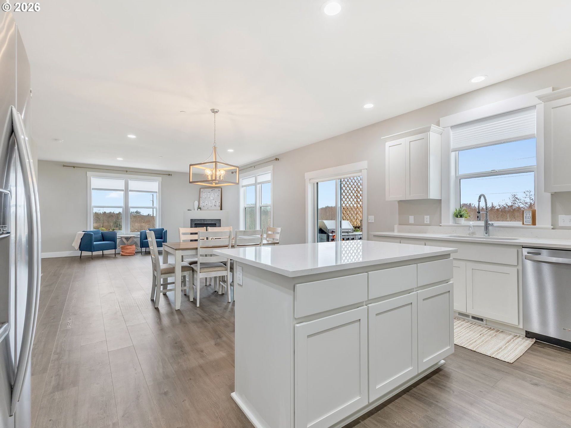 (503) 893-8874Live your best beach life in the desirable Thompson Falls neighborhood of Seaside. This immaculate 3-bedroom, 2.5-bath home features a crowd-pleasing interior palette with luxury vinyl plank flooring, quartz countertops, and a cozy gas fireplace in the living room. The light-filled kitchen offers quartz counters, stainless steel appliances, a gas range, and a generous pantry—ideal for everyday living and entertaining. Upstairs, the spacious primary suite includes a walk-in closet and full bath with double vanity, alongside two additional bedrooms, a shared full bath, and a large laundry room. Epoxy garage floors, a fully fenced yard for pets, and a peaceful view complete this exceptional home.