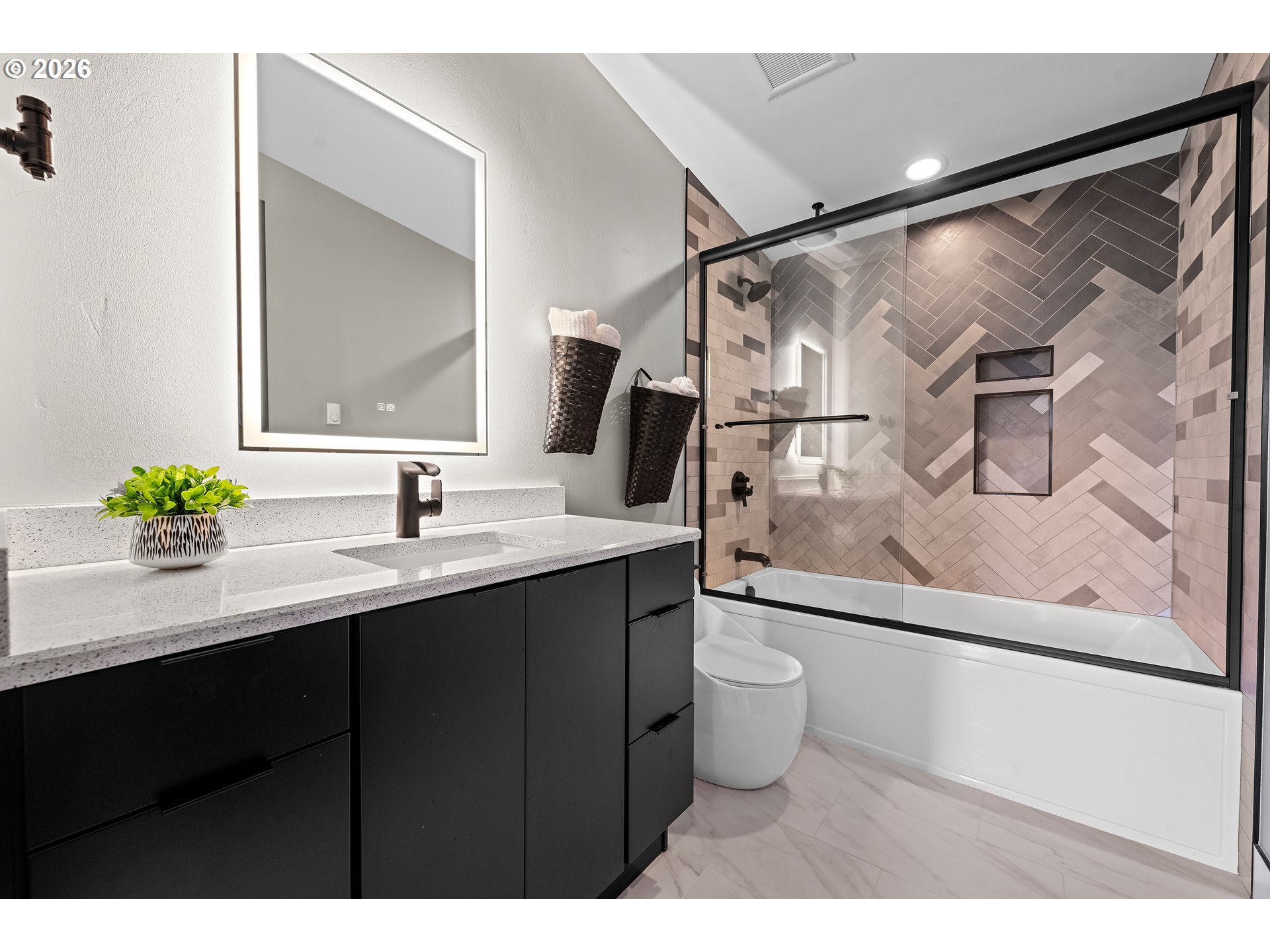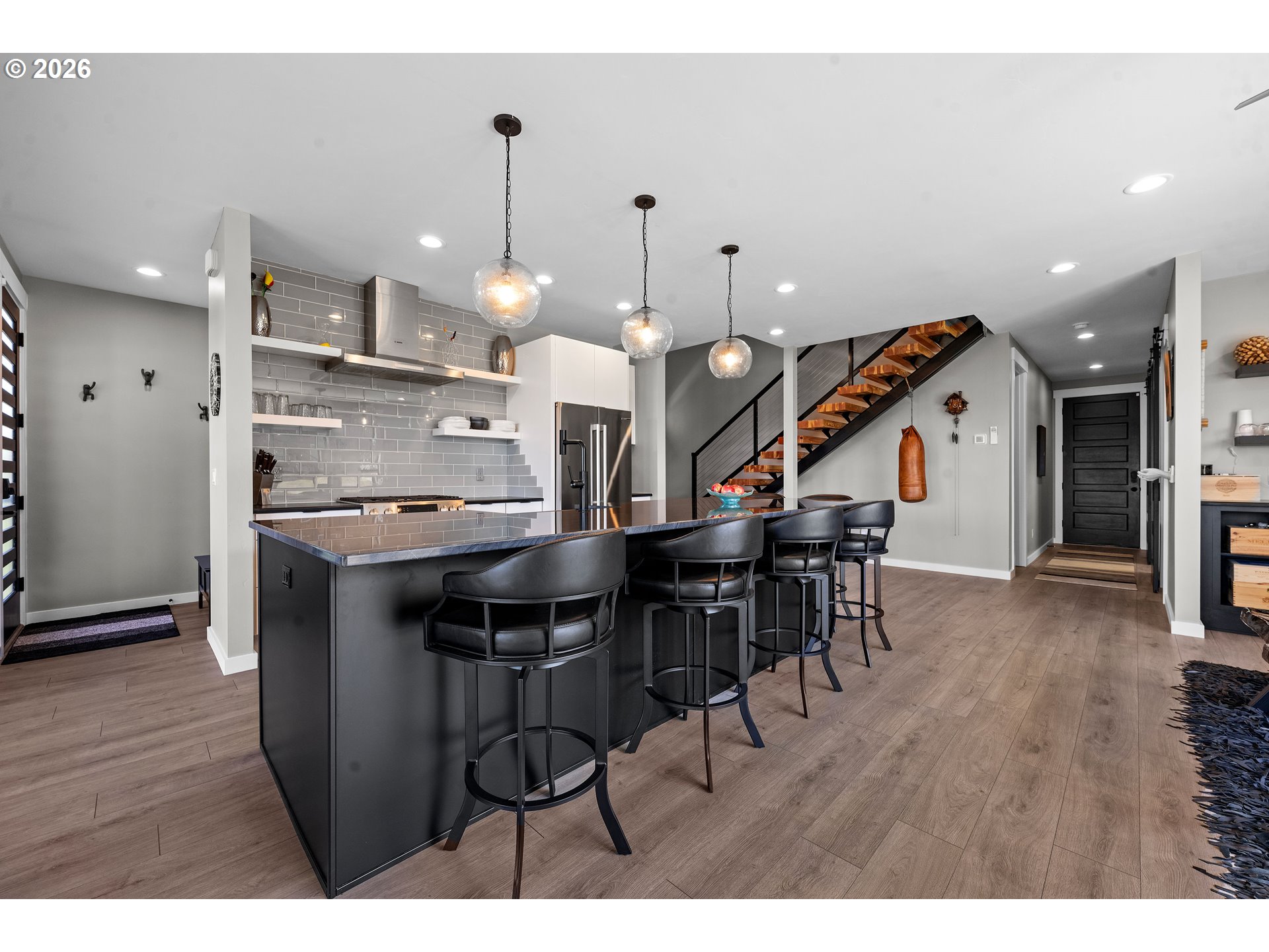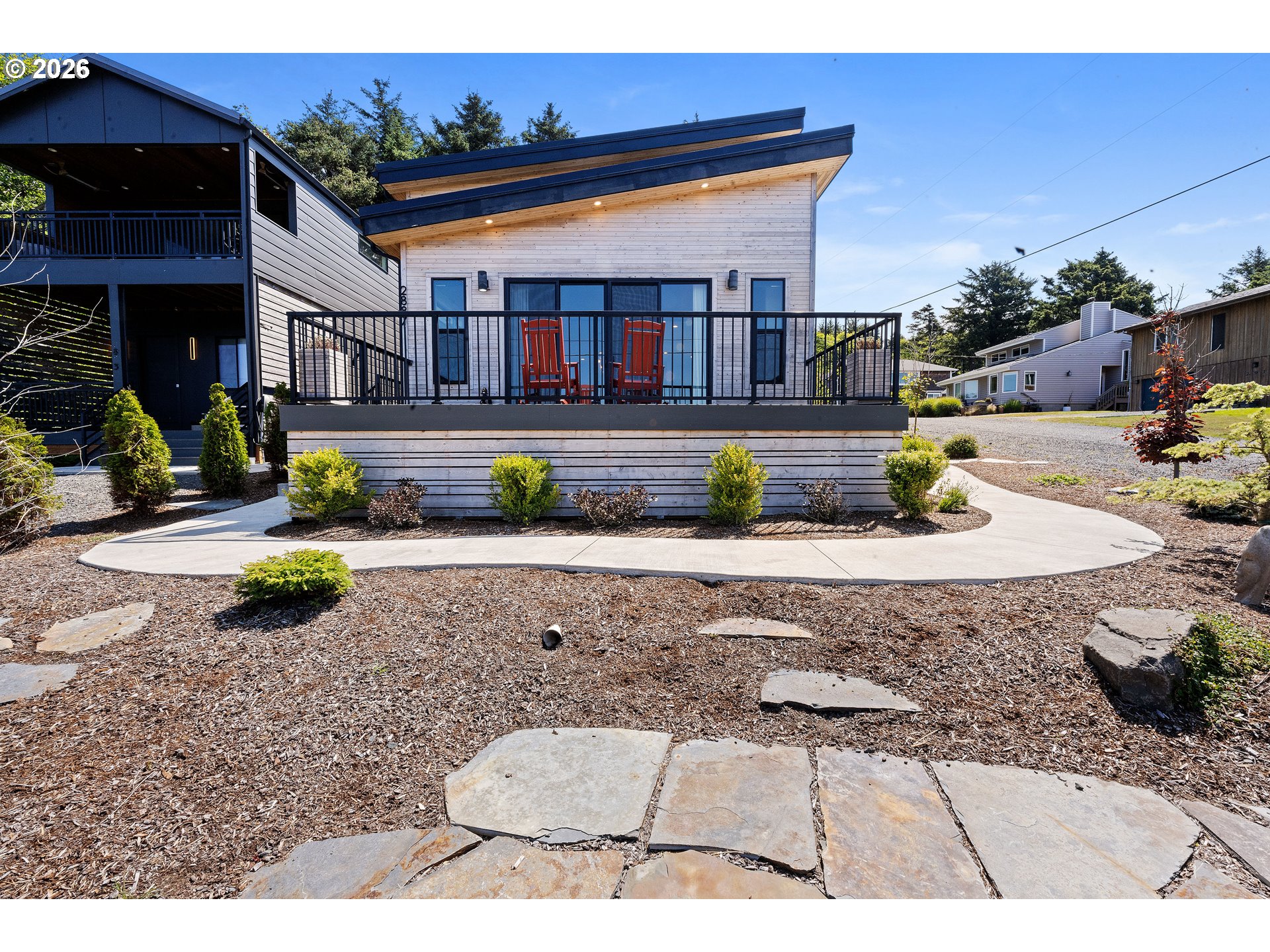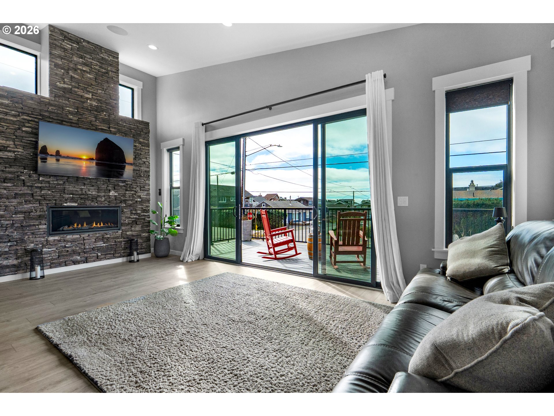(503) 893-8874Experience modern coastal elegance in this stunning 2,498 square foot home just one block from the beach in beautiful Cannon Beach. Situated on a desirable corner lot with ocean views, this contemporary retreat blends superior amenities with custom finishes throughout. Designed with both style and functionality in mind, the home features soaring high ceilings, 8-foot solid doors, engineered wood floors, and expansive windows that flood the space with natural light. Smart home features and a built-in Sonos sound system create seamless comfort and entertainment. The chef’s kitchen is a true showpiece, highlighted by a striking quartzite island, Bosch stainless steel appliances, sleek cabinetry, and refined modern finishes—perfect for gathering and entertaining. The open-concept design flows effortlessly into the living and dining areas, ideal for relaxed coastal living. Offering 3 bedrooms, 3 full baths, and a versatile loft space, there is room for guests, work, or play. The spa-inspired primary bath is a luxurious retreat featuring stunning black flagstone, a rain shower, and designer finishes that evoke a private resort experience. An EV charging station adds modern convenience, while the low-maintenance yard allows more time to enjoy the beach lifestyle. Sophisticated, modern-chic design meets prime location — luxury living just steps from the sand!