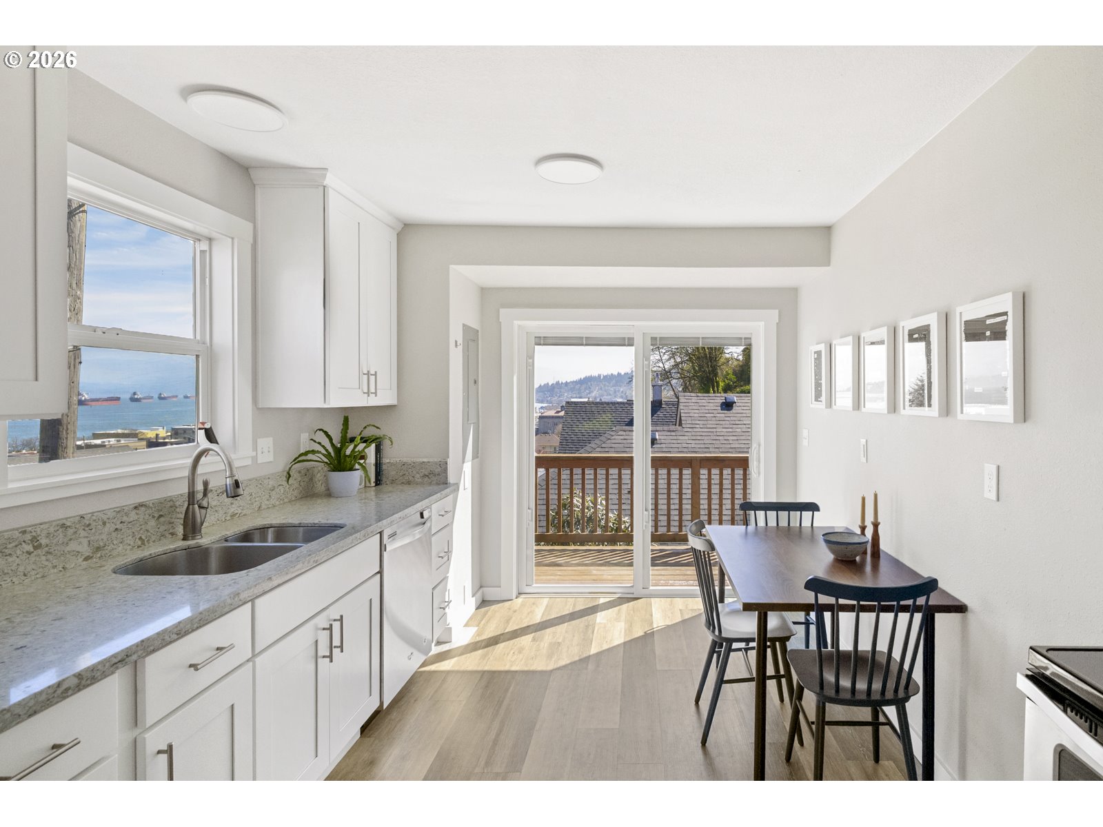 Location and views—this is the Astoria gem you’ve been waiting for! This charming ranch has stunning river views from almost every room and is only 5 short blocks from downtown and the Riverwalk. Three bedrooms, one bath. Spotless and move-in ready, the kitchen and bath are both updated and fresh. Gorgeous sunny deck for watching the ships pass by over morning coffee or sunset happy hour, and a separate fenced backyard keeps furry friends safe. Home has a newer minisplit for efficient heating and cooling. The piece de resistance may be the incredibly rare detached two car garage with plumbing and electrical for hobbies, gear, and vehicles. Sellers were told they could build above the garage but never got around to it. Enjoy the finest in single-level living, or build your dream primary suite, ADU, studio, or roofdeck above the garage. Buyer to verify all development potential directly with respective building authorities. Don't miss this incredible unique Astoria home!”