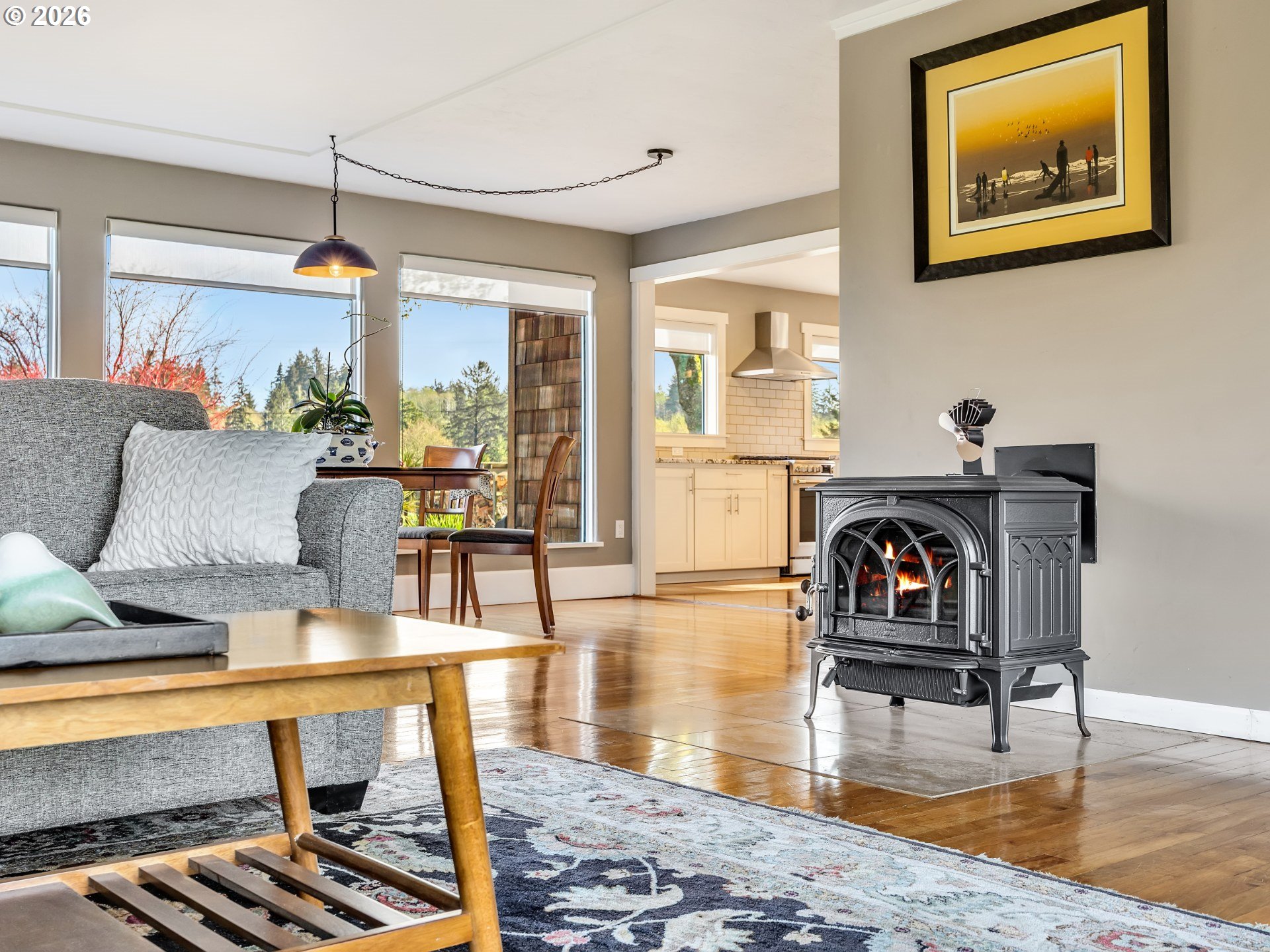 *OPEN HOUSE SUN April 19 from 12-2* Single-level living on 2.01 level, usable acres with two primary bedroom suites and the Oregon Coast lifestyle you’ve been waiting for. This 3 bed, 2.5 bath home features a spacious open living and dining area with hardwood floors, a wood stove, and expansive picture windows showcasing beautiful pastoral views. Both primary suites include ensuite baths, with one offering a walk-in closet and the other private access to the fenced backyard. The remodeled kitchen features granite countertops, custom cabinetry, island seating, and stainless steel appliances, with a mudroom, laundry area, and generous pantry space nearby. Mini splits provide efficient heating and cooling throughout. Outside, enjoy a fully insulated oversized 2-car garage with shop space, roll-up door, and covered outdoor kitchen with plumbing. A newer 12' x 18' detached accessory structure adds flexible finished space ideal for a home office, creative space, or garden retreat. The property includes a fenced backyard, deck, patio, sprinkler system, fruit trees, and mature blueberry bushes. Manageable acreage with room to live, work, and enjoy.