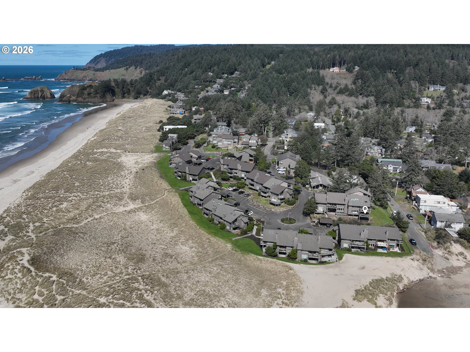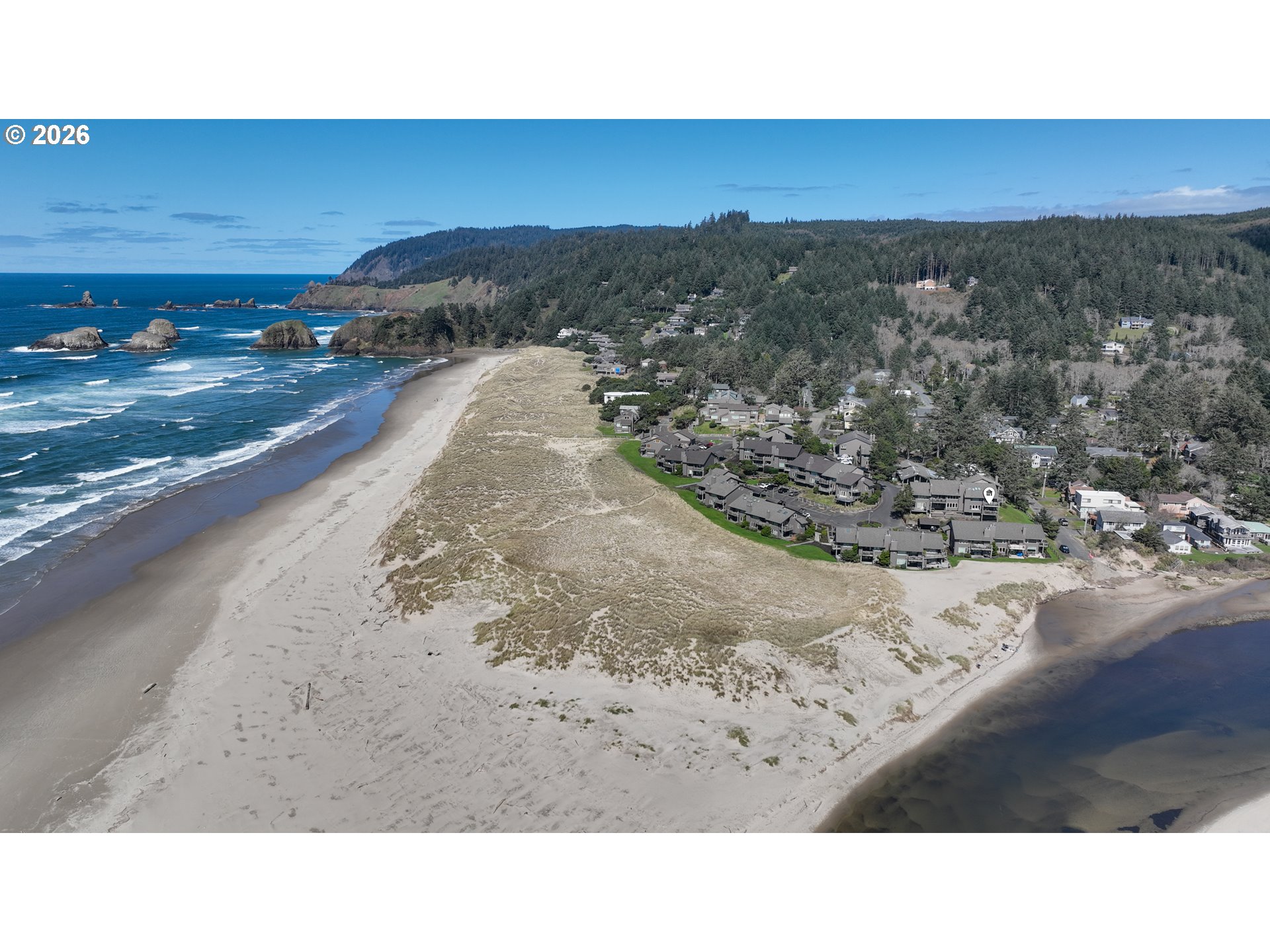 Breaker's Point Condominium in the coveted village of Cannon Beach. This is an oceanfront community that will exceed all your expectations! Steps to the sand & ocean. Ecola Creek is an added bonus for lazy river fun & quiet beach time. Views showcase the ocean, creek & mountain range. Maintenance free for you to enjoy all that this North Coast community offers! Hiking, beachcombing, surfing, biking, galleries, boutiques, coffee shops & eateries. Leave your car & forget about it! This unit is on the main level offering a light filled living area w/ walls of windows, 2 bed/2 baths +spacious deck to enjoy amazing sunrises & twilight skies! Stainless steel kitchen appliances. Amenities include year round enjoyment with indoor tennis/pickleball/basketball, pool, sauna & outdoor hot tub. video
