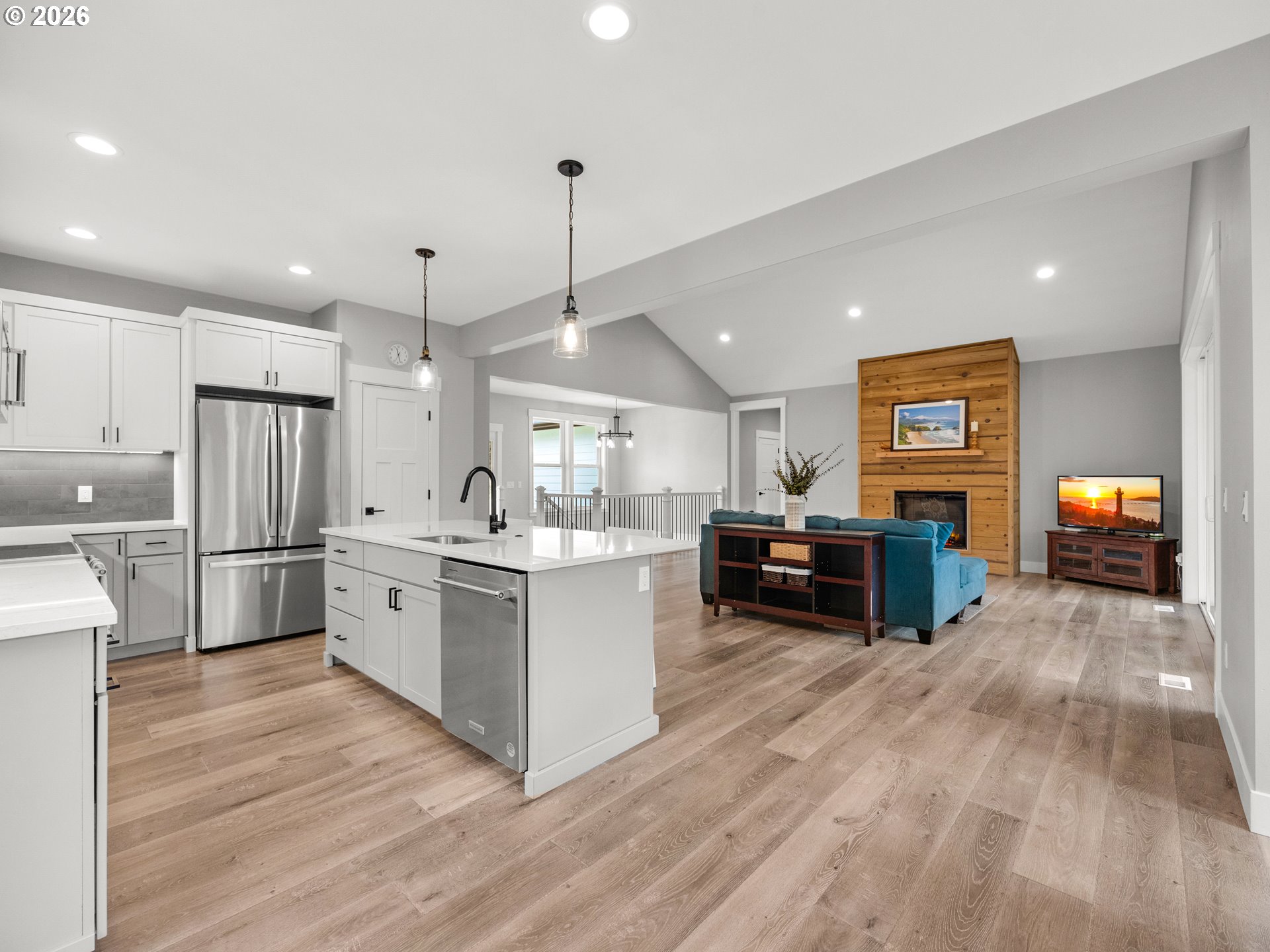Just 15 minutes from Astoria, this beautifully crafted home offers peaceful country living on 2 private acres. Vaulted ceilings and an open layout fill the main level with natural light, highlighting quartz countertops, stainless steel appliances, and a cozy fireplace. A covered deck overlooks the grounds, with fenced cedar garden beds ready to grow. Downstairs features a spacious second living area, two bedrooms, a full bath, and a versatile bonus room. The primary suite includes a walk-in closet, dual vanities, a tiled shower, and private deck access. Room to add a shop or create your ideal outdoor retreat—schedule your showing today!