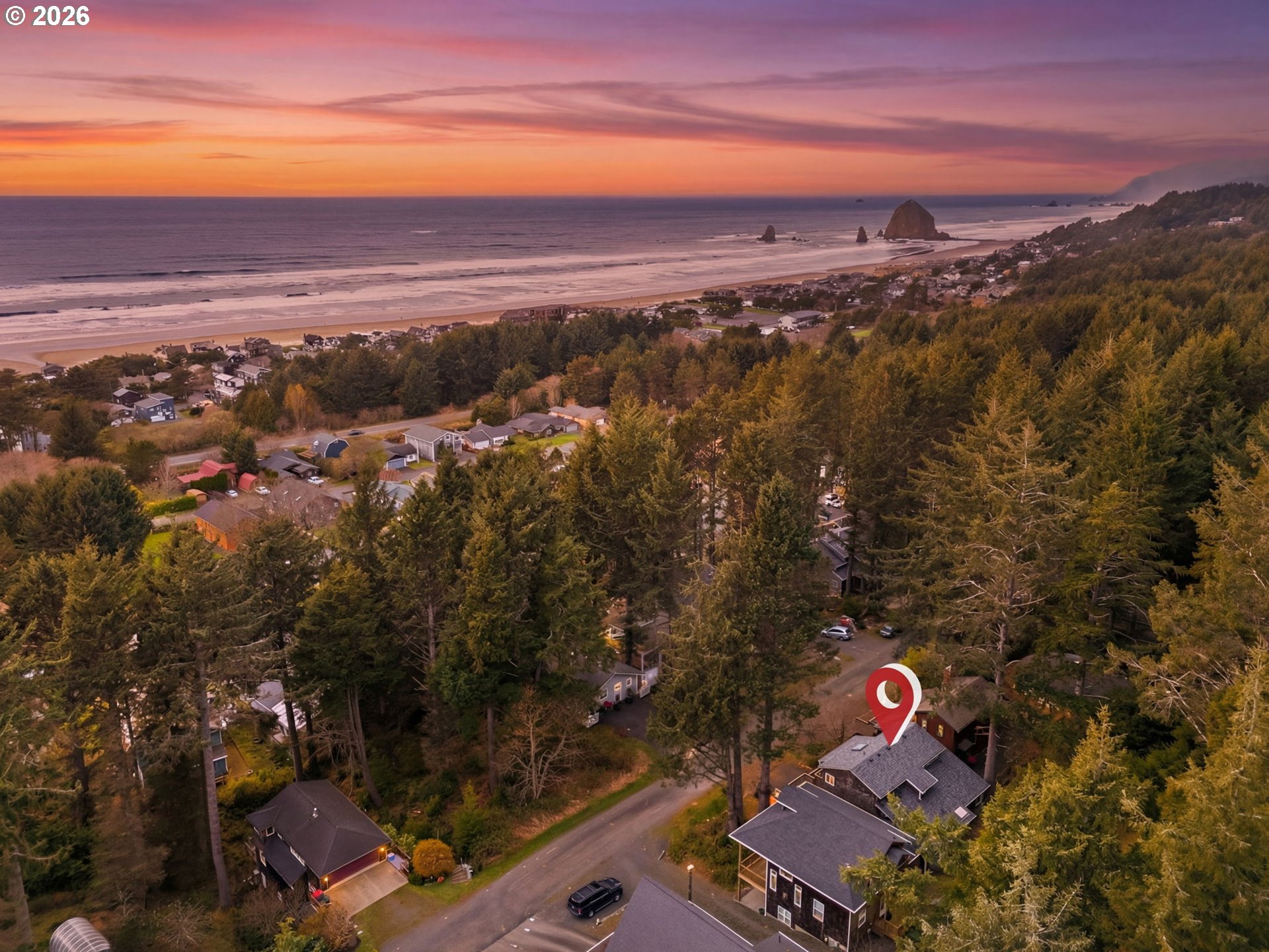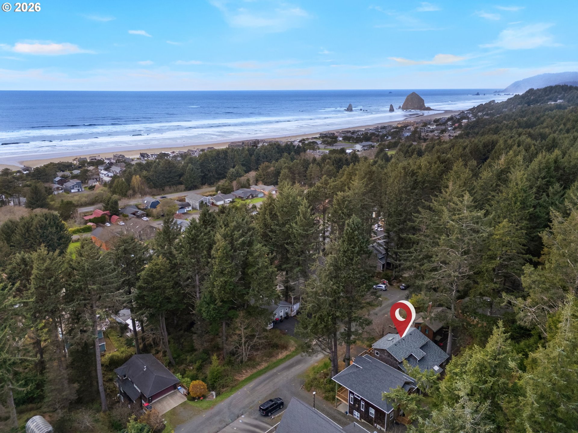 (503) 893-8874Privately set among the evergreens in coveted Haystack Heights, this refined Cannon Beach retreat captures the essence of elevated coastal living. Perched above town, the home enjoys filtered ocean views from the light-filled living room, where vaulted ceilings, warm wood detailing, and a sleek wood-burning stove create a space that feels both sophisticated and effortlessly relaxed.Expansive windows frame a serene coastal forest backdrop, inviting natural light to pour in while maintaining a sense of seclusion. The open-concept living area flows seamlessly onto a generous deck—perfect for morning coffee, evening wine, or quiet moments surrounded by nature with the sound of the ocean in the distance.Thoughtfully designed with both comfort and function in mind, the home features multiple levels of living, ideal for hosting guests or creating private retreats within the home. The elevated setting offers a rare blend of privacy and proximity—just minutes from the beach, Haystack Rock, and the boutiques and dining of downtown Cannon Beach.A spacious garage, ample parking, and low-maintenance coastal landscaping enhance everyday ease, while the surrounding natural beauty provides a timeless Pacific Northwest backdrop.Whether envisioned as a full-time residence or an elevated coastal getaway, this Haystack Heights home offers a rare opportunity to own a peaceful, view-oriented escape in one of the Oregon Coast’s most iconic communities.