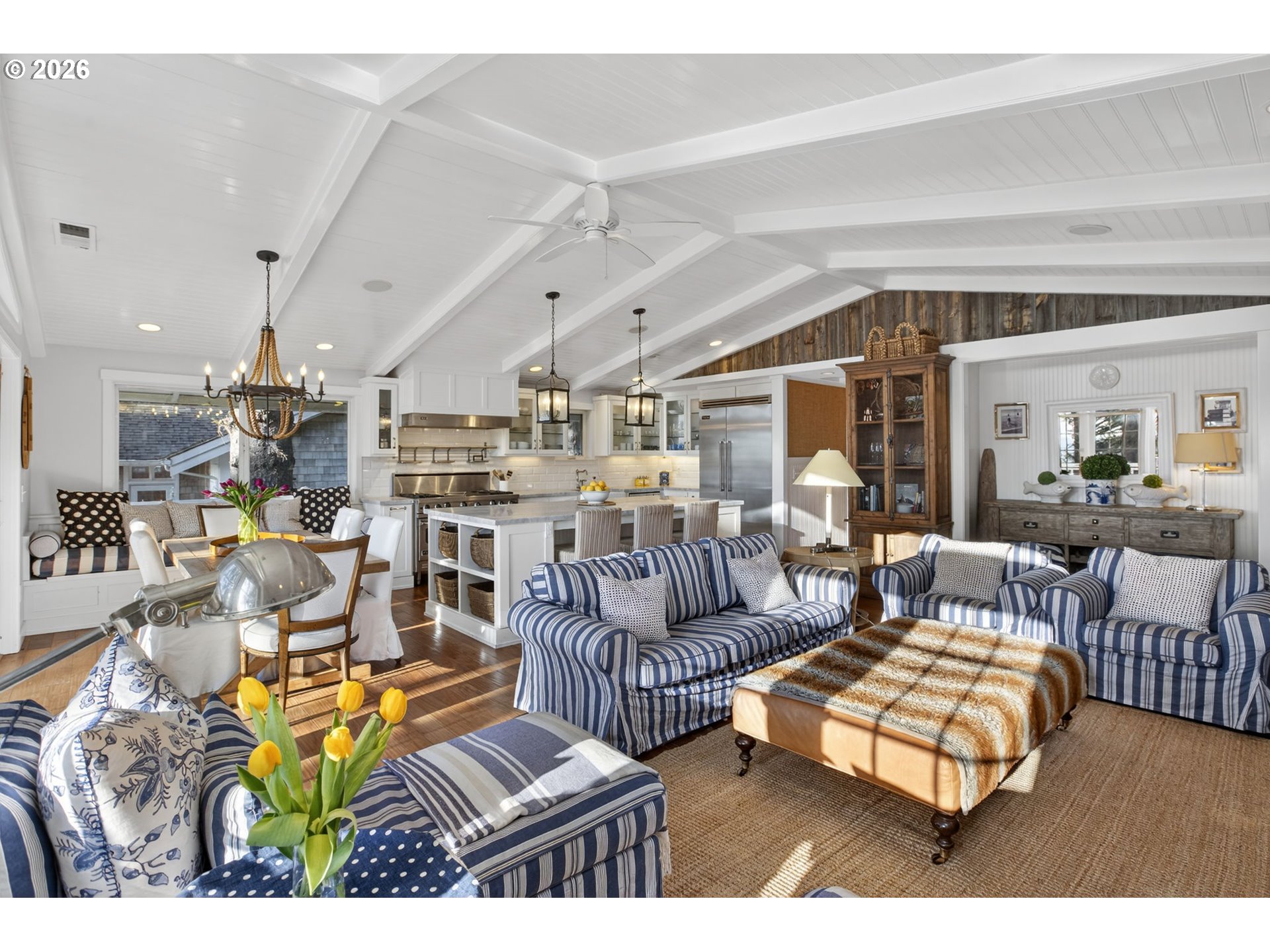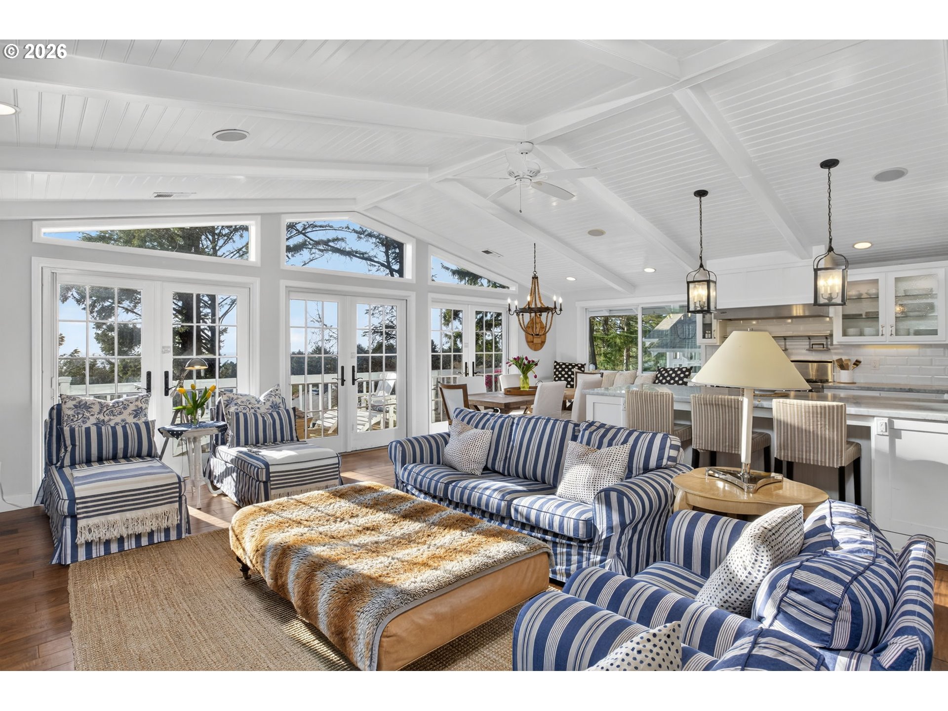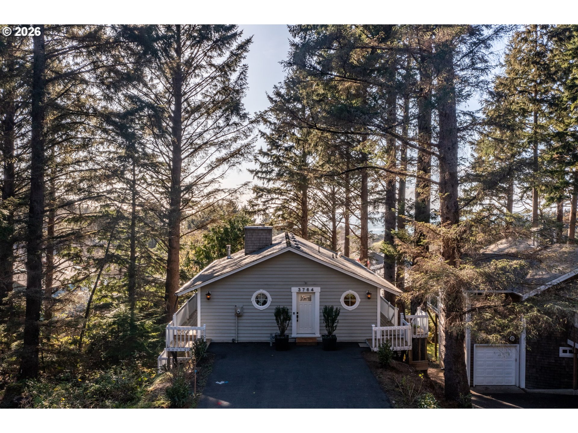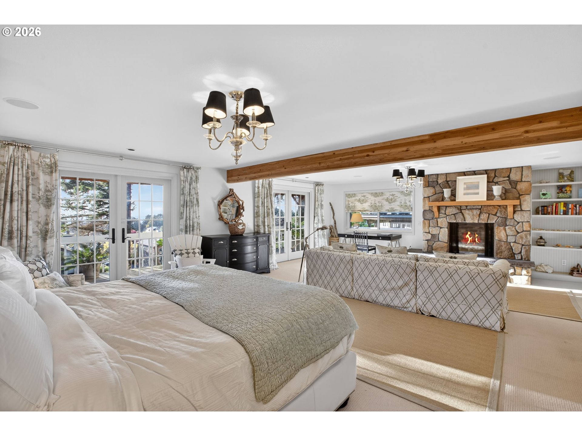 Fully furnished & thoughtfully curated, coastal retreat, blending East Coast elegance with Oregon Coast serenity in Tolovana Beach. Inspired by 'Something's Gotta Give', this 3 level home features vaulted ceilings & expansive west facing windows with distant ocean views. The great room offers a dramatic stone fireplace, custom built-ins, and triple French doors opening to a spacious deck. Gourmet kitchen with industrial gas range, griddle, grill, double ovens, wine cooler, Carrara marble, & custom cabinetry. Luxurious primary suite with fireplace, sitting area, private deck, steam shower, & soaking tub. Three additional bedrooms are thoughtfully designed with custom finishes. Multiple living spaces provide flexibility, including a lower-level game room. Located on a dead-end street, surrounded by forest, the home is approximately half a mile from beach access, minutes to downtown Cannon Beach & Ecola State Park, this property combines privacy, proximity, and lifestyle appeal. Contact your broker to schedule a private showing or to receive the full feature sheet.