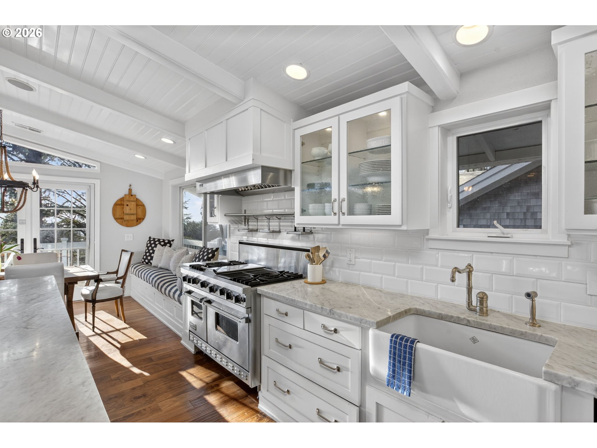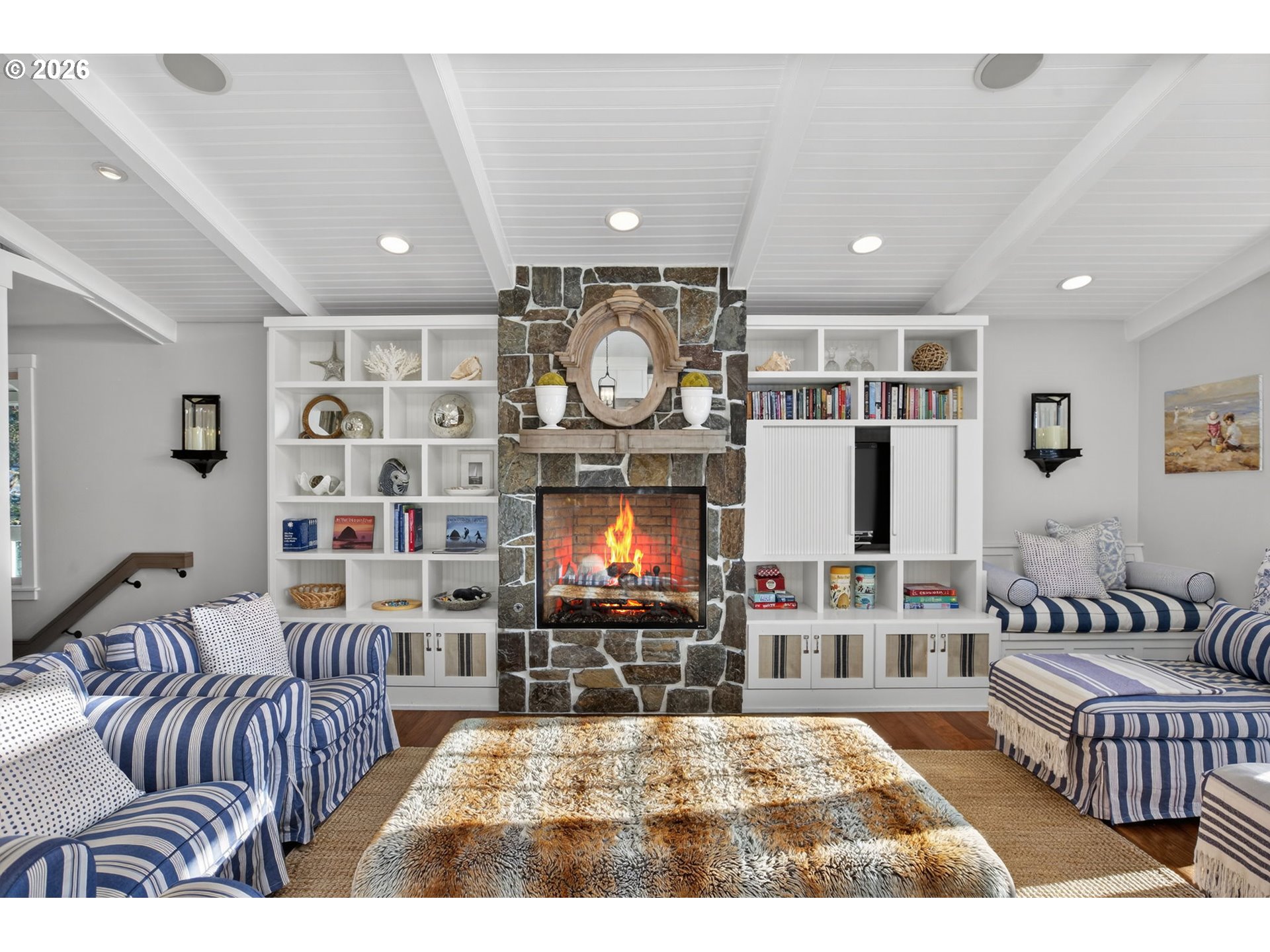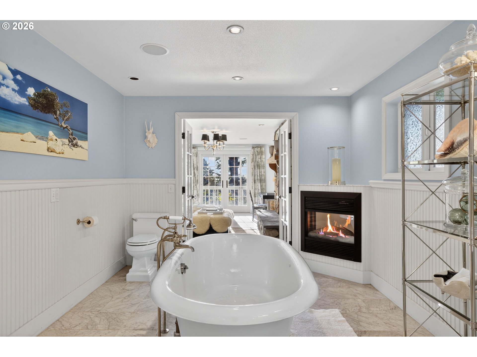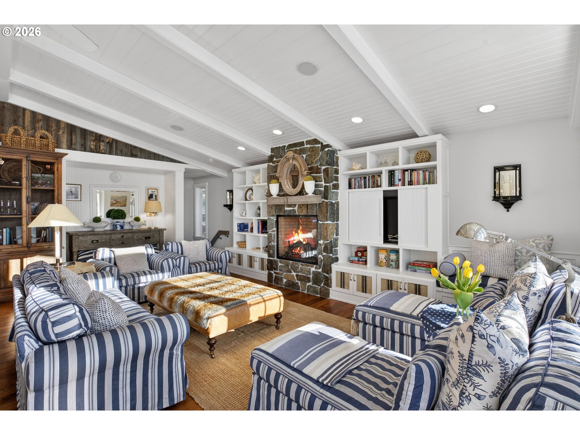 Fully furnished & thoughtfully curated, coastal retreat, blending East Coast elegance with Oregon Coast serenity in Tolovana Beach. Inspired by 'Something's Gotta Give', this 3 level home features vaulted ceilings & expansive west facing windows with distant ocean views. The great room offers a dramatic stone fireplace, custom built-ins, and triple French doors opening to a spacious deck. Gourmet kitchen with industrial gas range, griddle, grill, double ovens, wine cooler, Carrara marble, & custom cabinetry. Luxurious primary suite with fireplace, sitting area, private deck, steam shower, & soaking tub. Three additional bedrooms are thoughtfully designed with custom finishes. Multiple living spaces provide flexibility, including a lower-level game room. Located on a dead-end street, surrounded by forest, the home is approximately half a mile from beach access, minutes to downtown Cannon Beach & Ecola State Park, this property combines privacy, proximity, and lifestyle appeal. Contact your broker to schedule a private showing or to receive the full feature sheet.